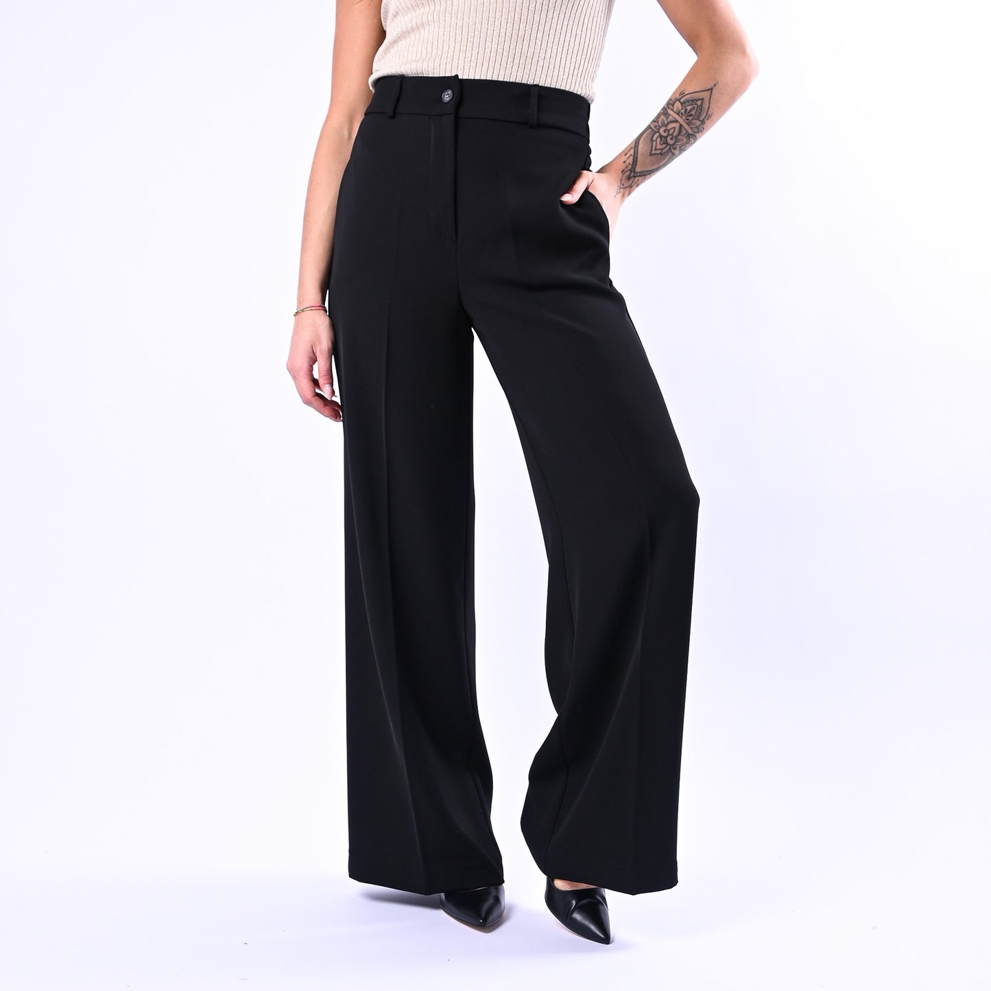 GOLD - PANTALONE PALAZZO EASY FLUIDO ART.17312/4724 - NERO