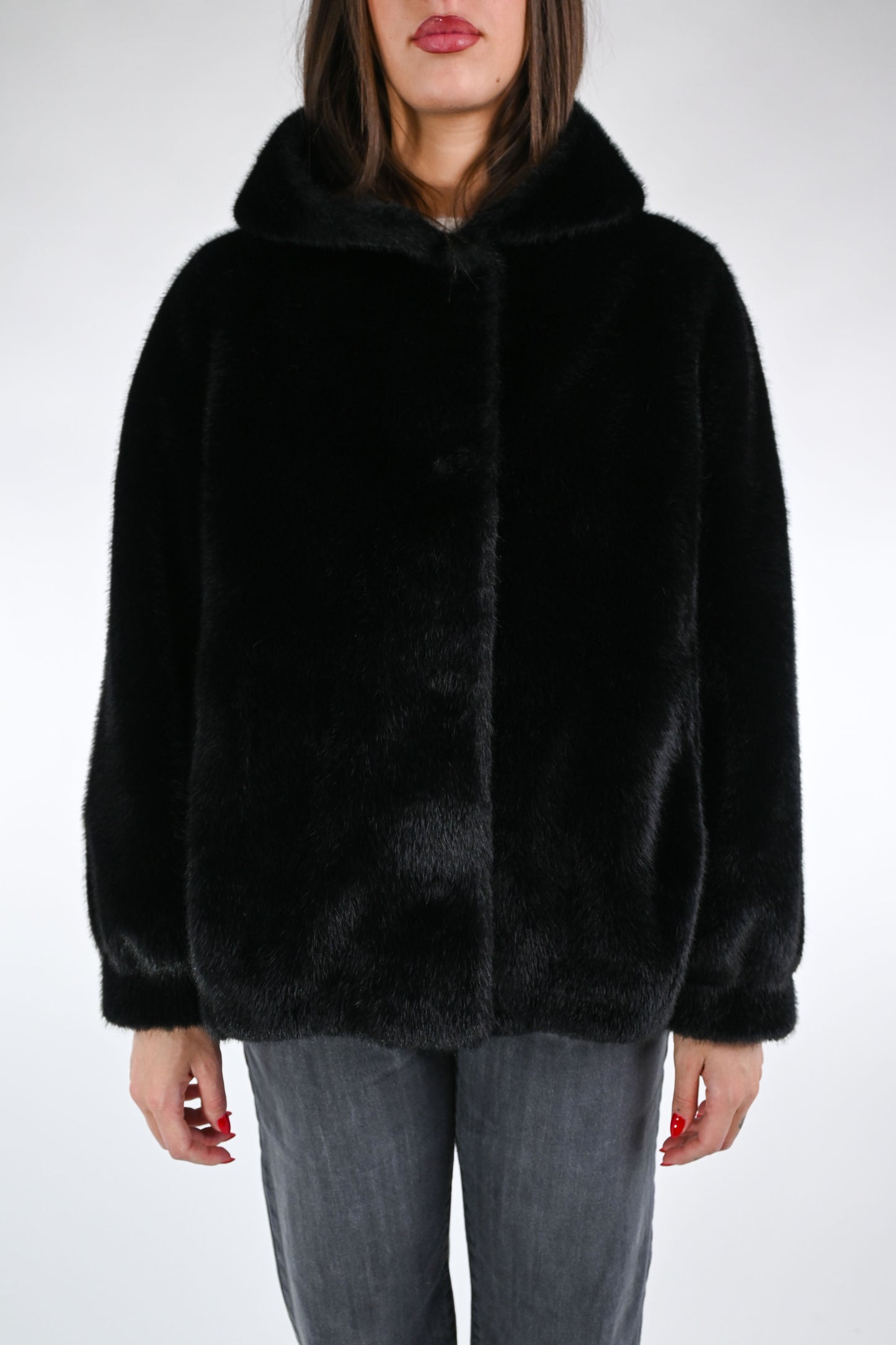 HAVEONE - BOMBER ECOPELLICCIA CON CAPPUCCIO ART.KDY-P034 - NERO