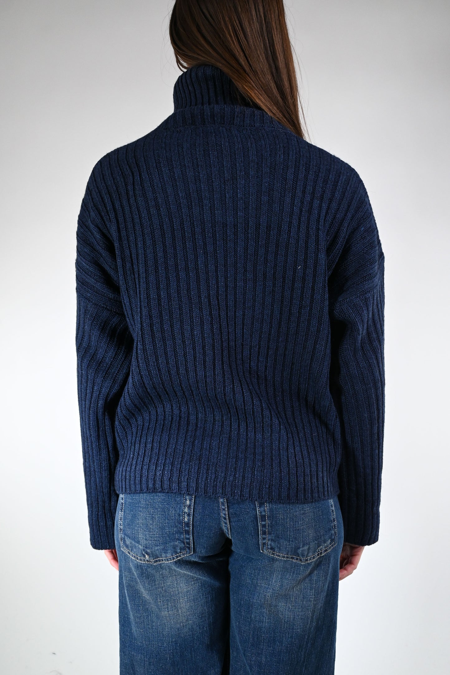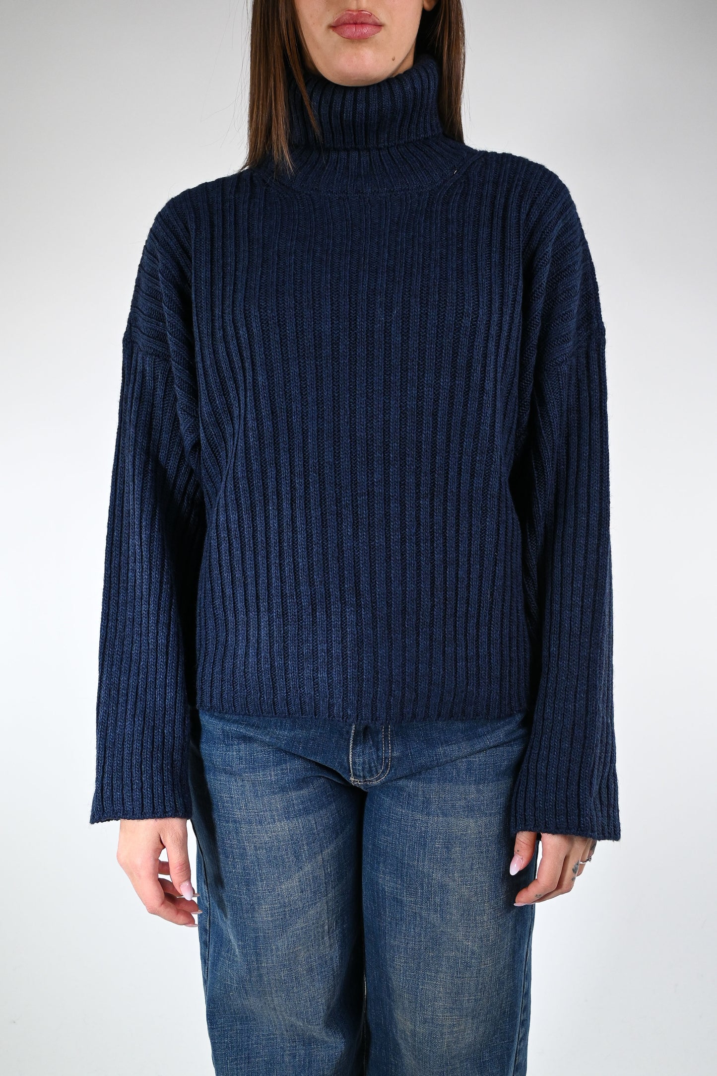 Prezzo normale €39,50Dolcevita over costa inglese, a scatola, spalla scesa, colore blu