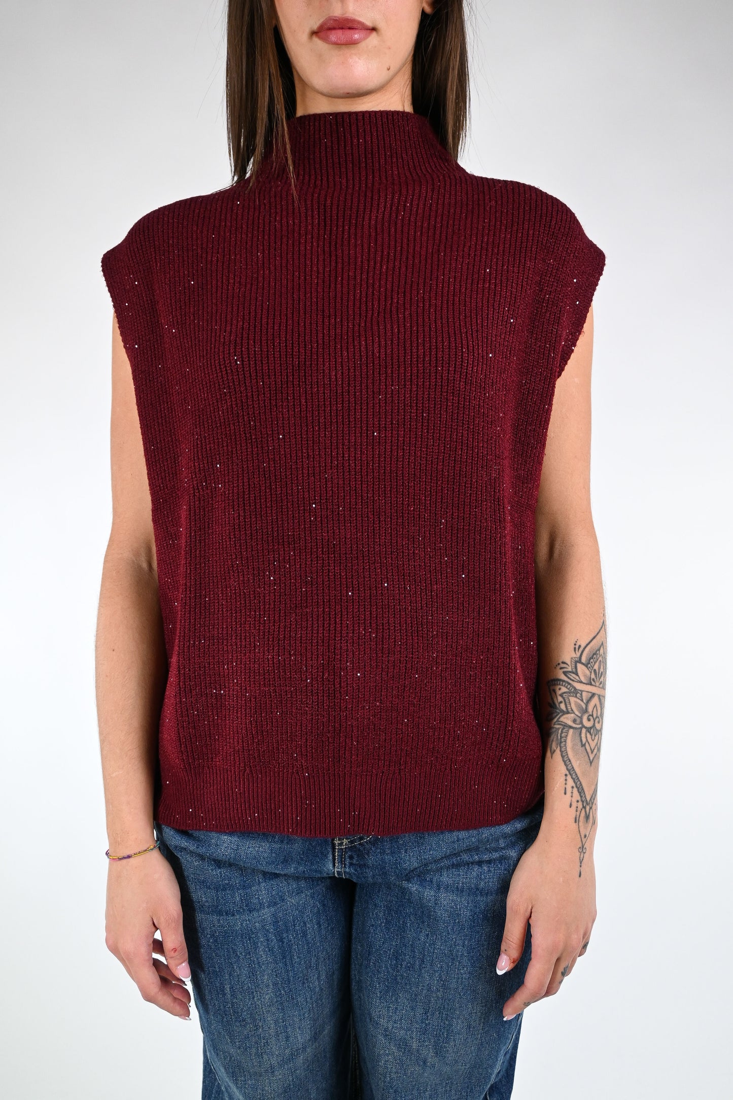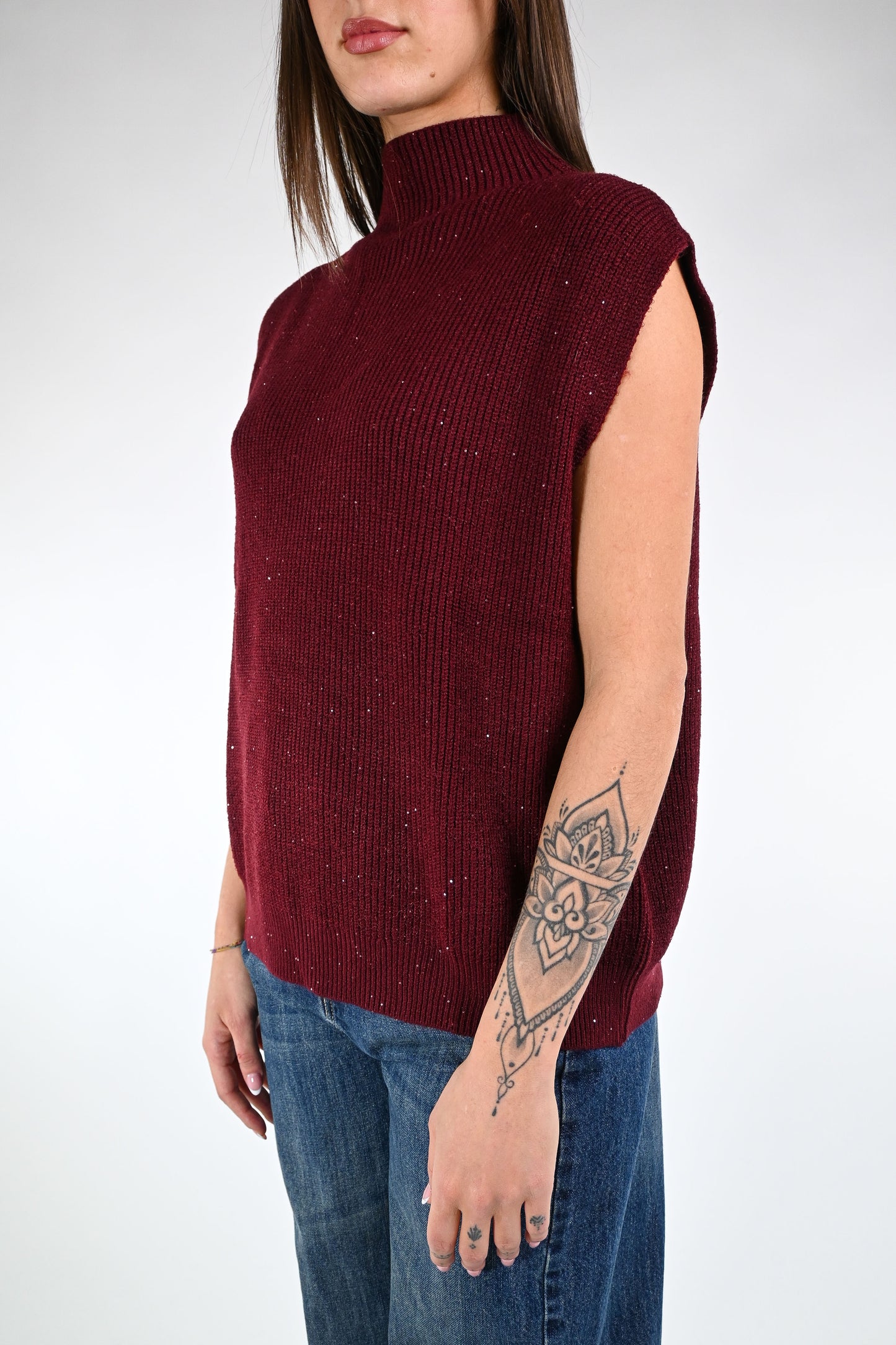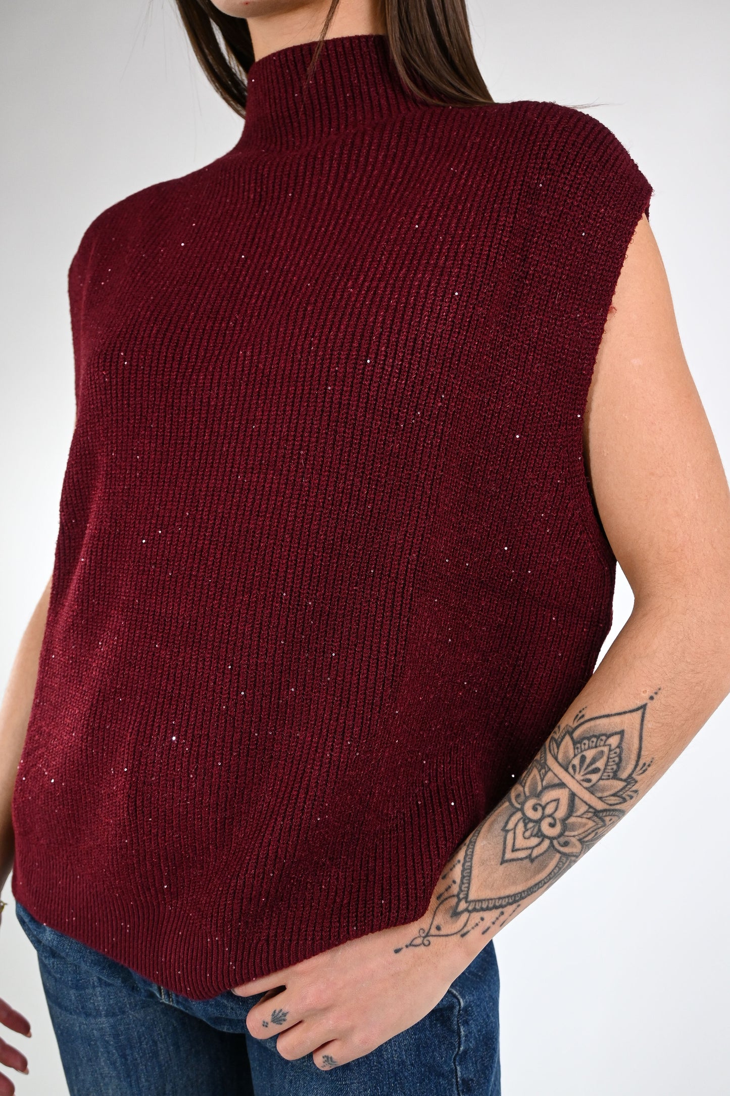 HAVEONE - GILET COLLO CRATERE PAILLETTES ART.LNC-P001 - BORDEAUX