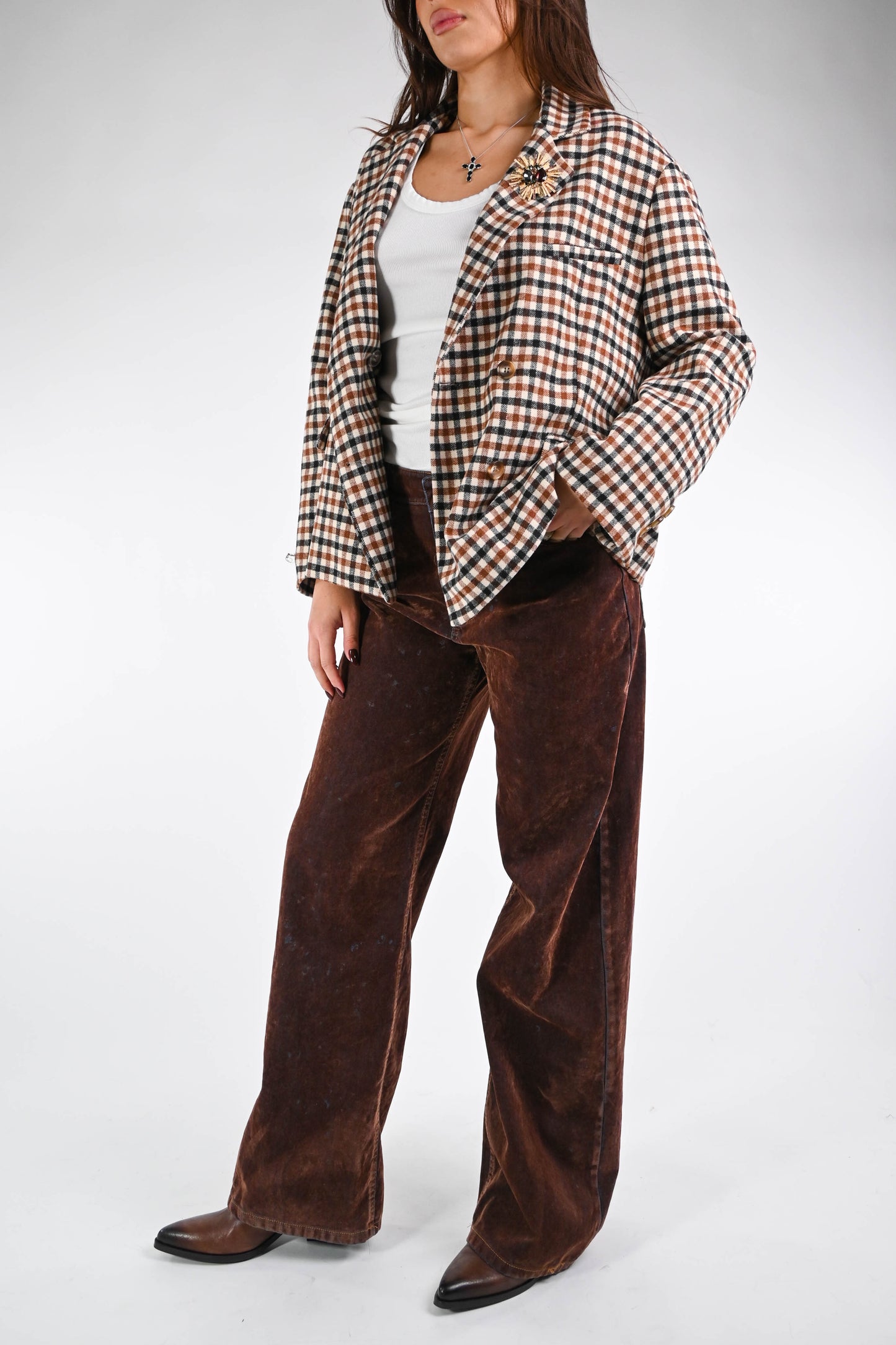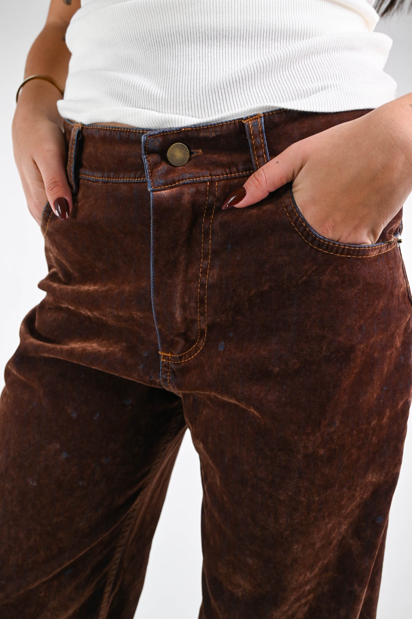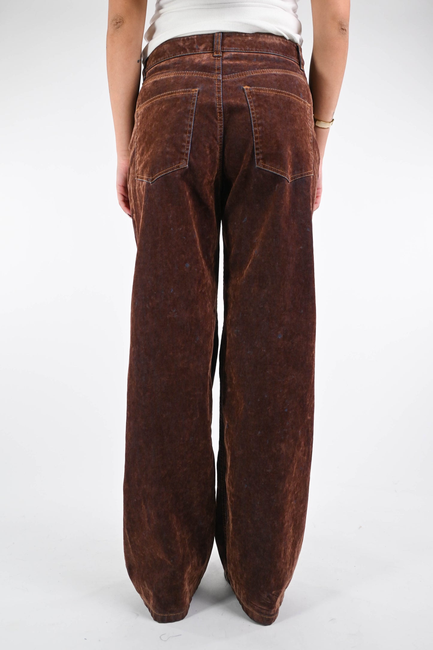 Jeans dritto in velluto floccato,5 tasche, elasticizzato, colore moro