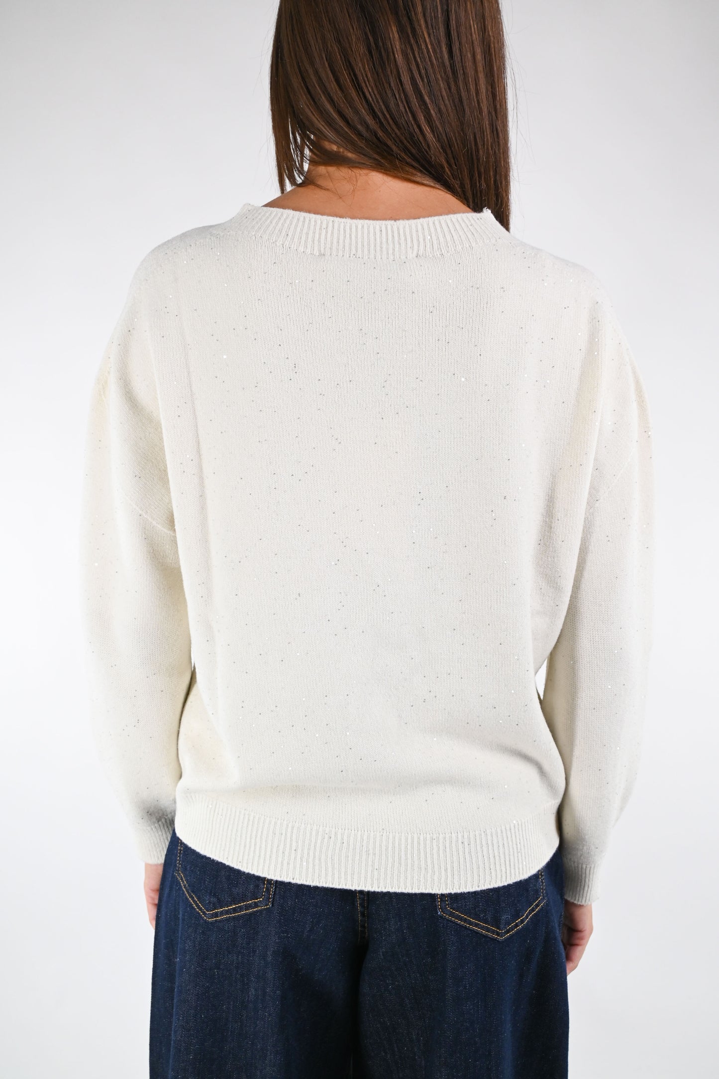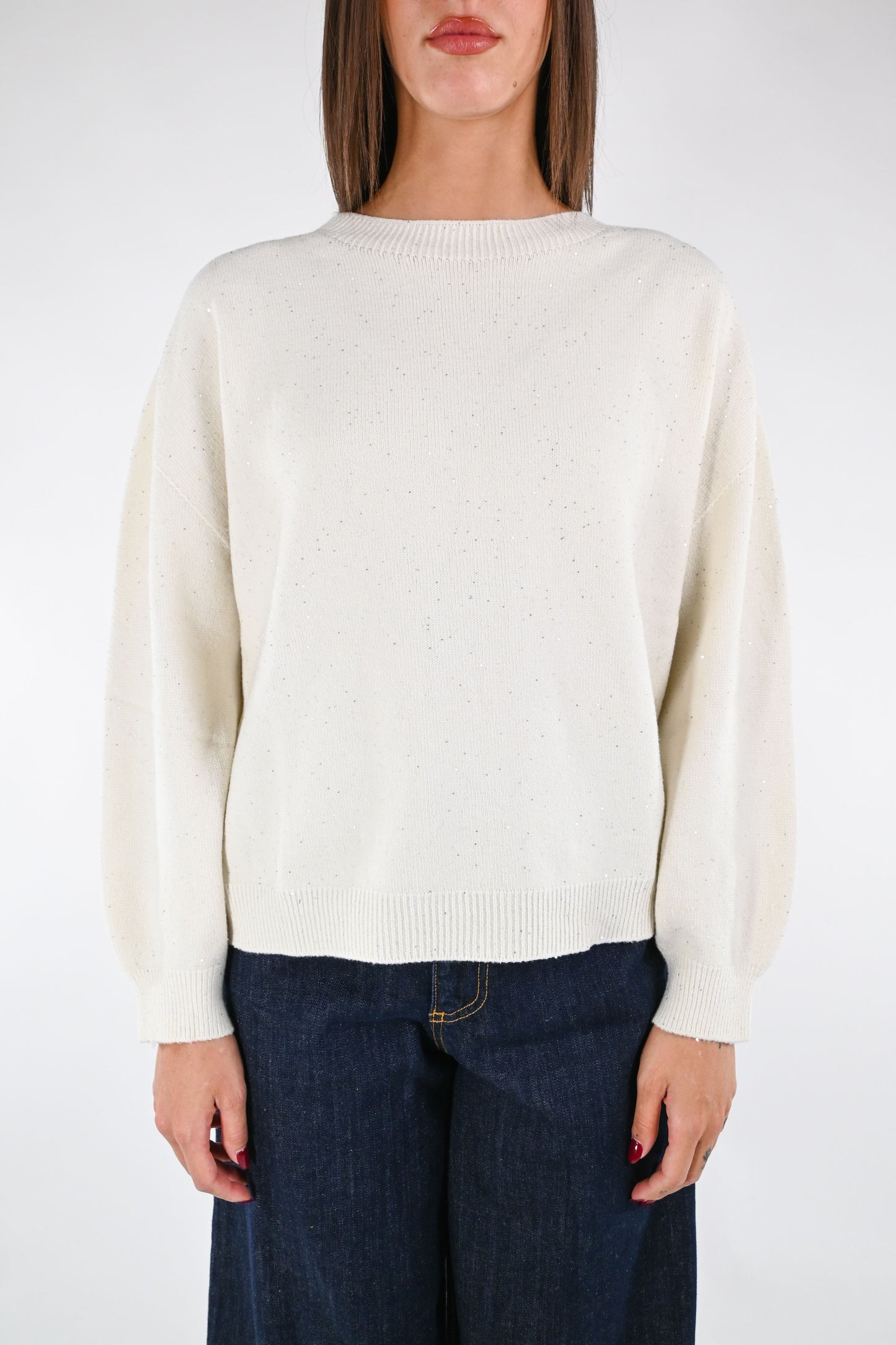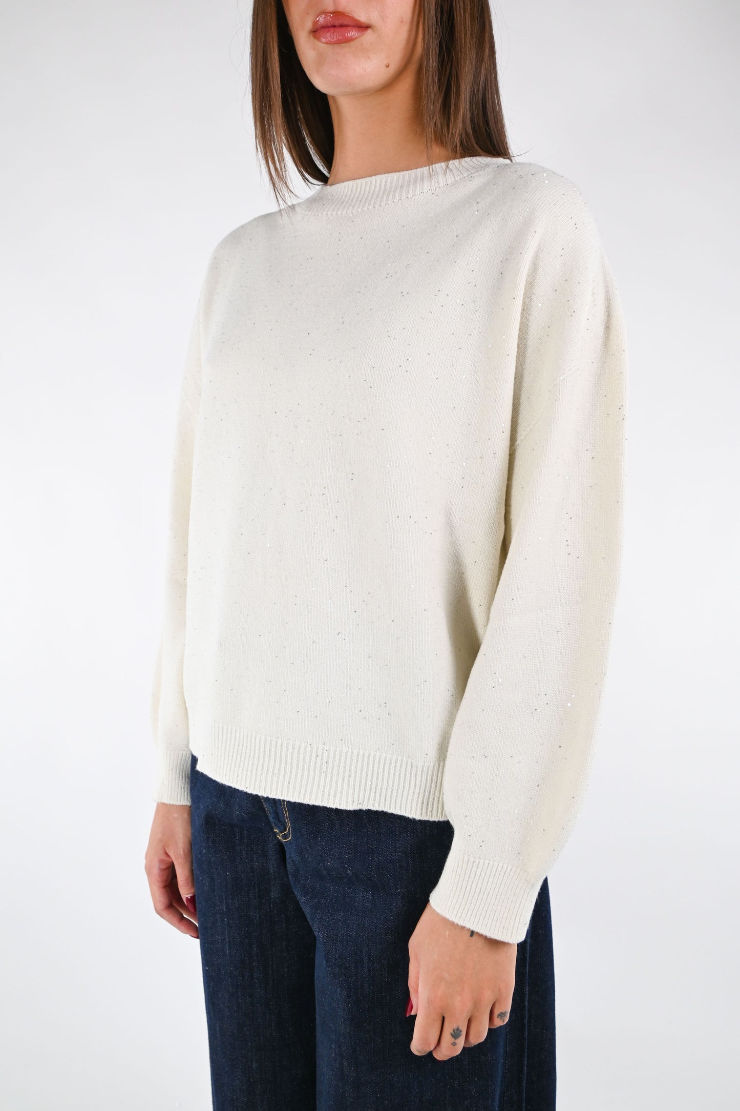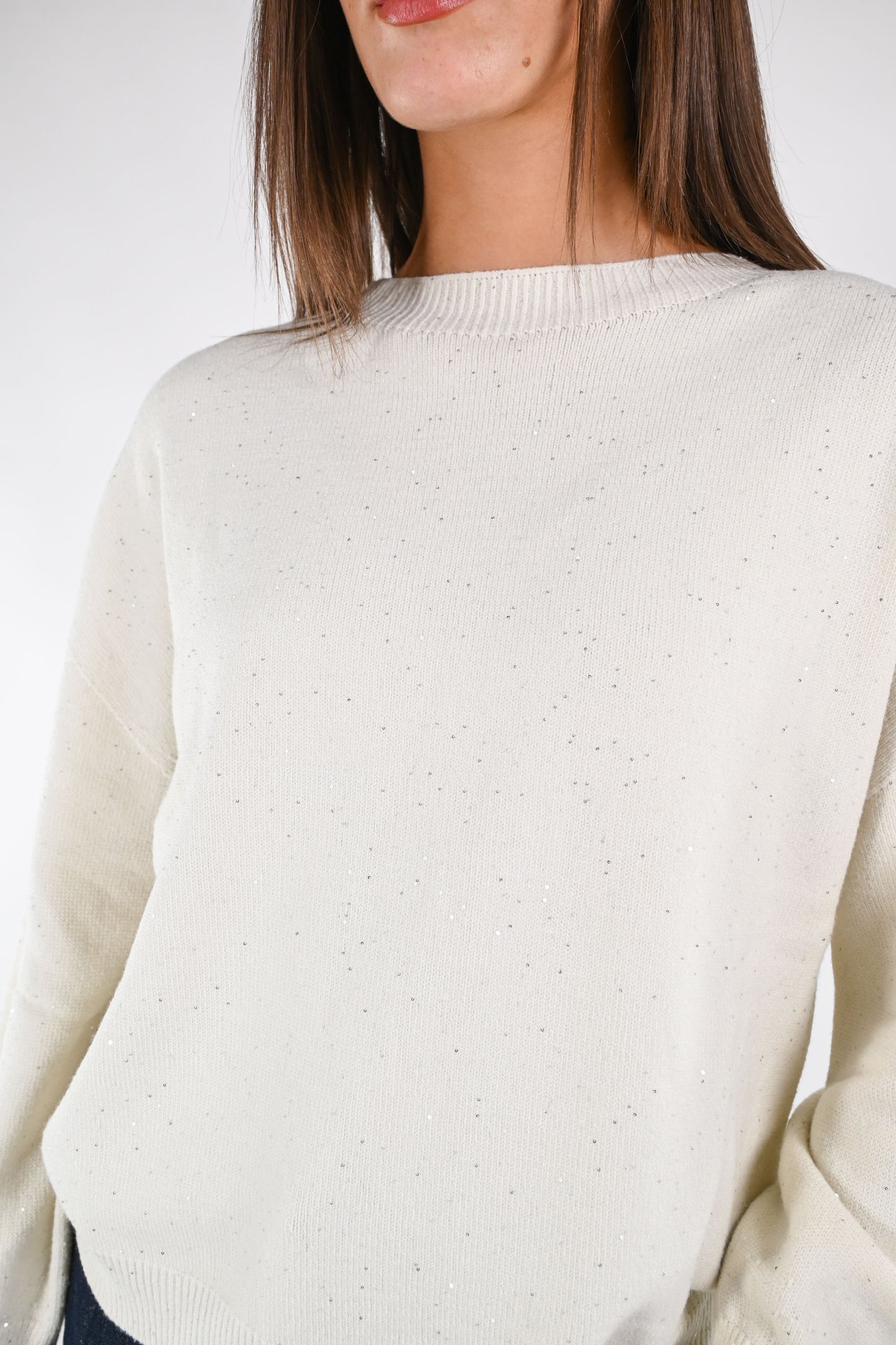 HAVEONE - MAGLIA GIROCOLLO PAILLETTES ART.MNC-P060 - PANNA