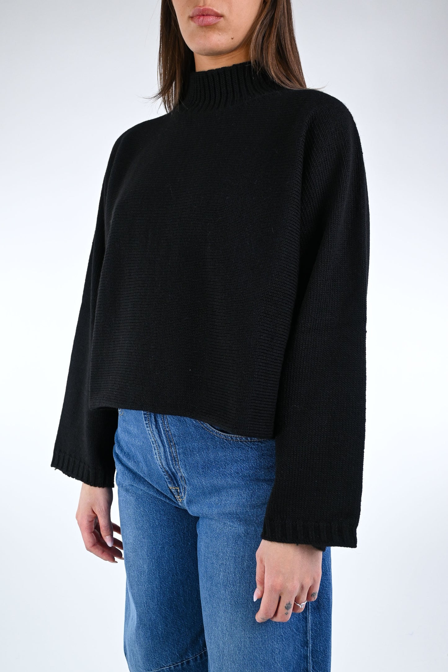 Prezzo normale €44,50Maglia over a scatola con collo a cratere, con manica larga, colore nero