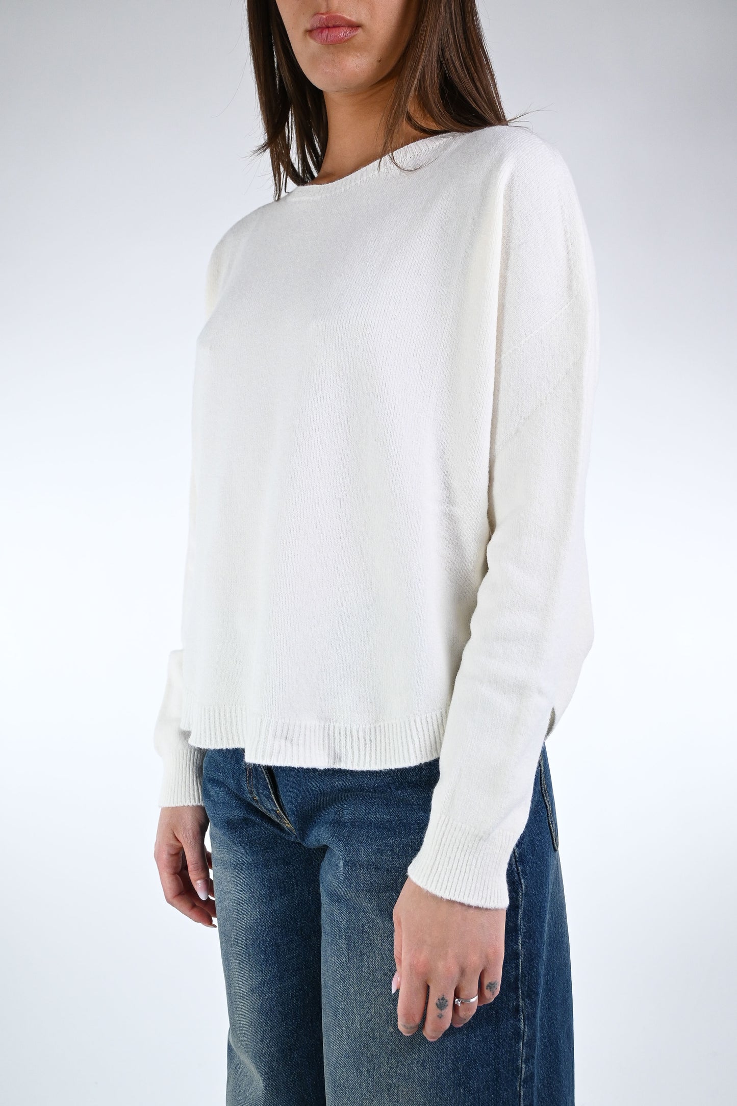 Prezzo normale €29,50Maglia over a scatola scollo barchetta, più corta davanti, elasticizzata, con spacchetti, color burro