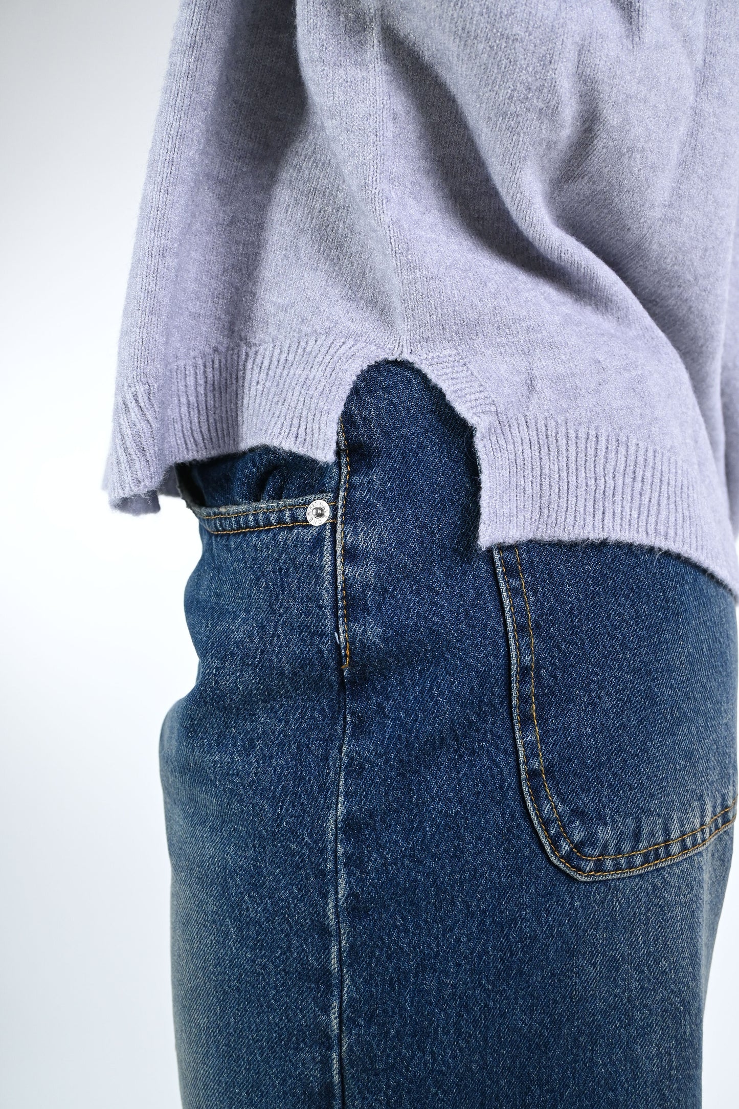 Prezzo normale €29,50Maglia over a scatola scollo barchetta, più corta davanti, elasticizzata, con spacchetti, color grigio perla