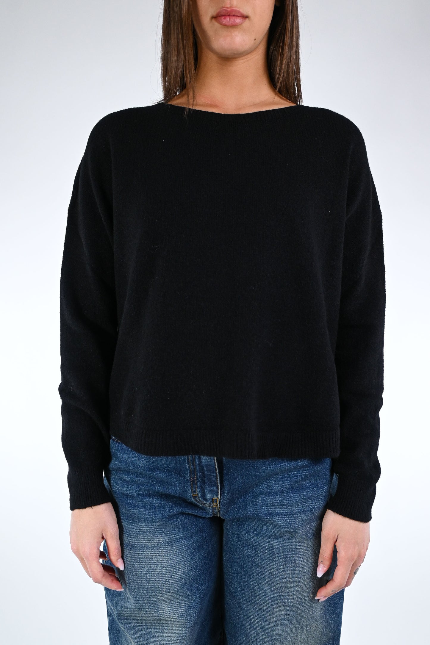 HAVEONE - MAGLIA OVER SCOLLO BARCHETTA ART.MMG-P352 - NERO