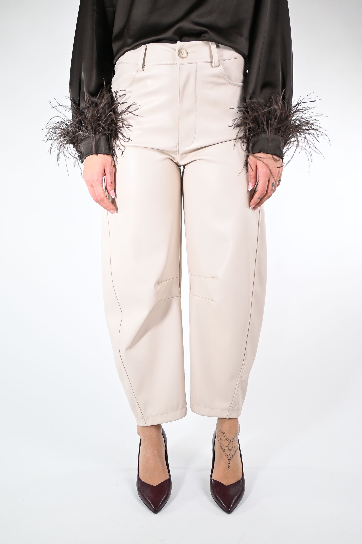 HAVEONE - PANTALONE BALLOON ECOPELLE ART.PVE-P168 - PANNA