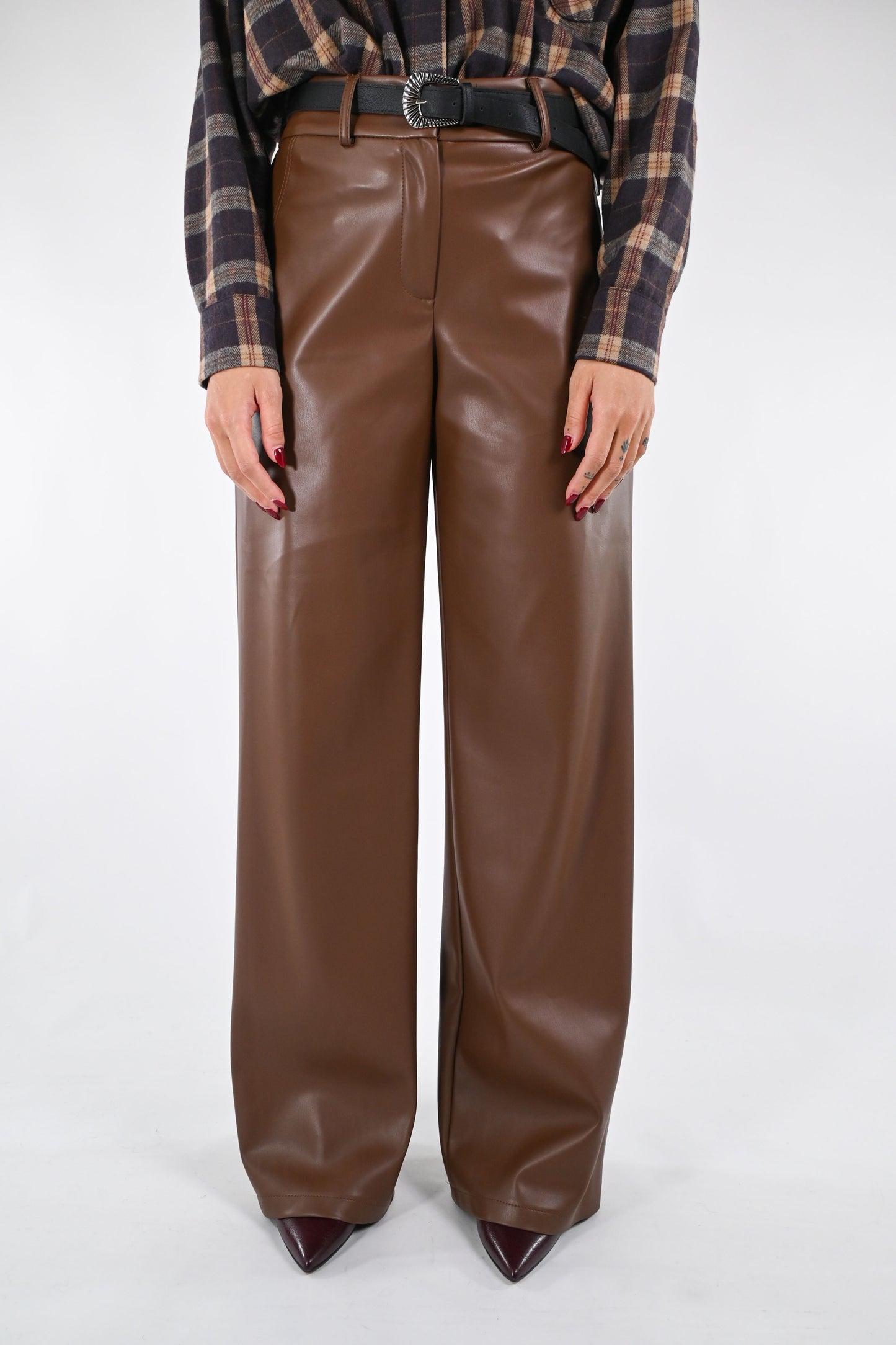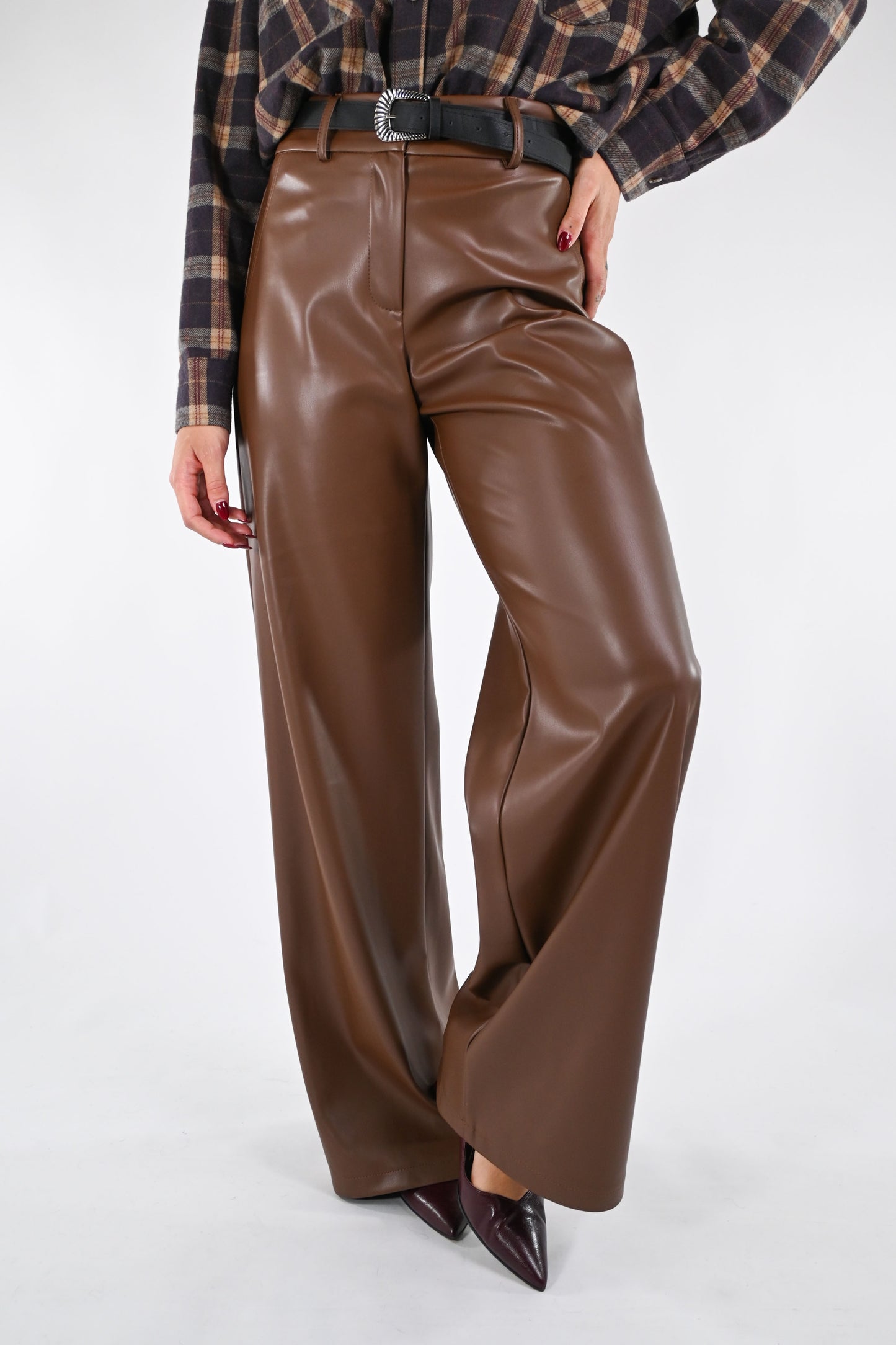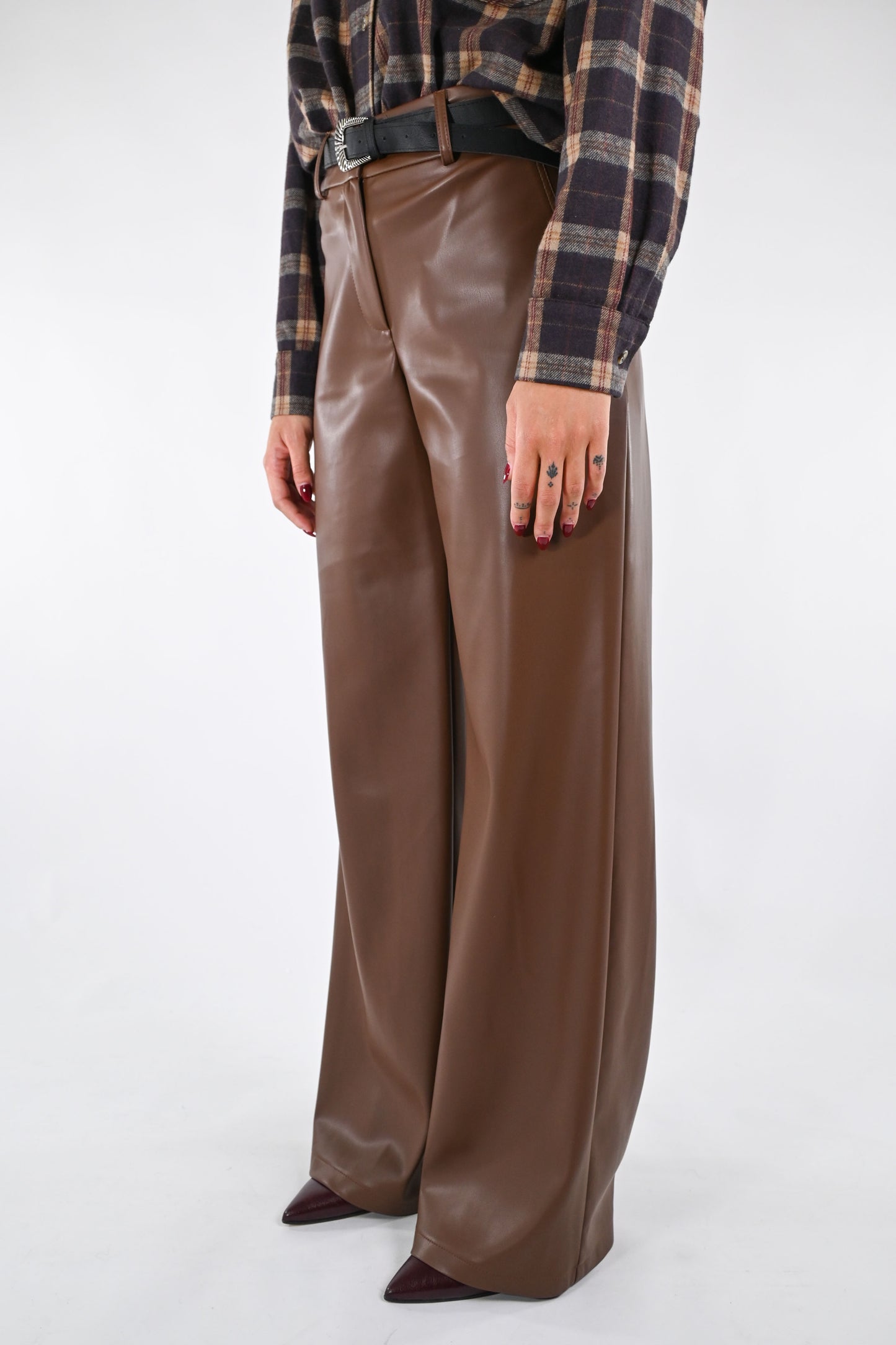 HAVEONE - PANTALONE PALAZZO IN ECOPELLE ART.PVI-P212 - MORO