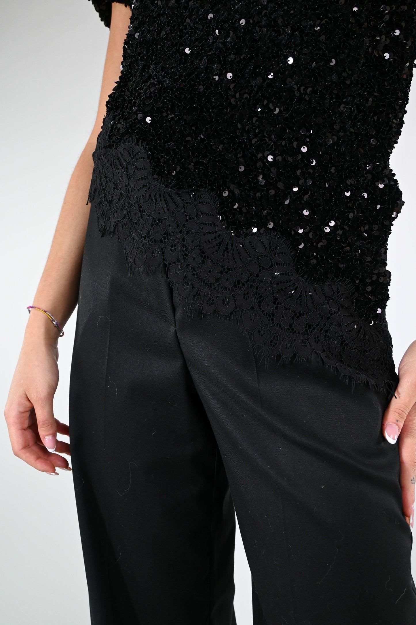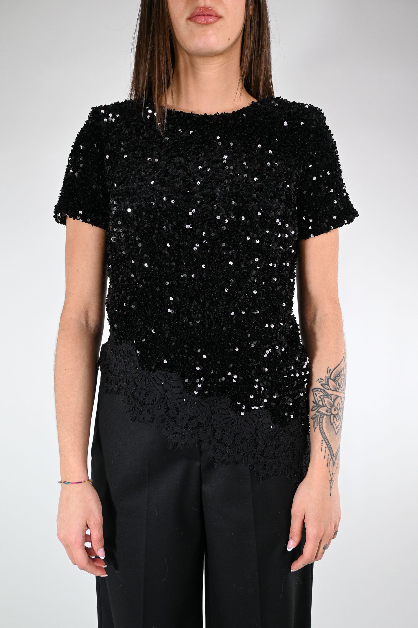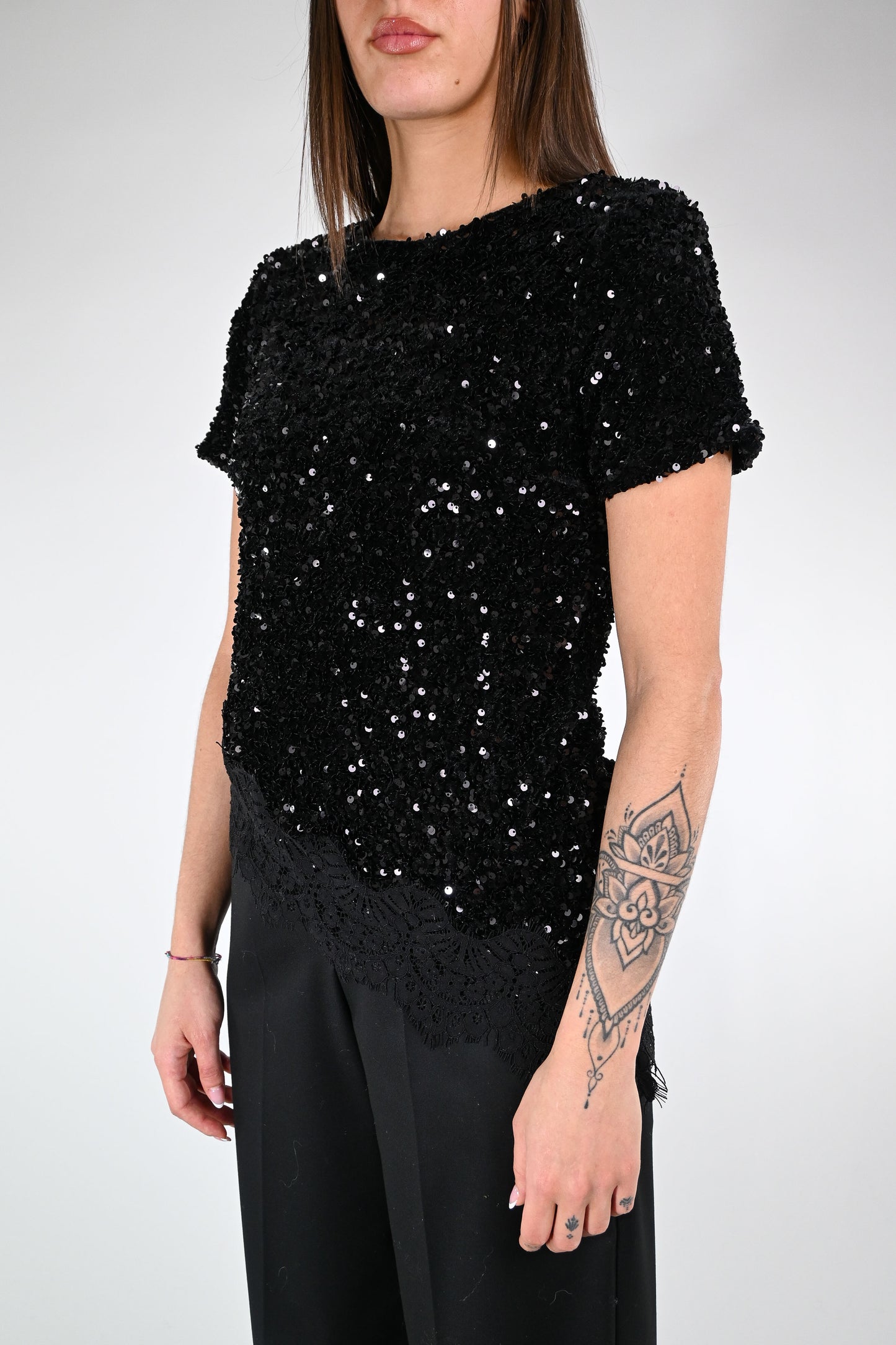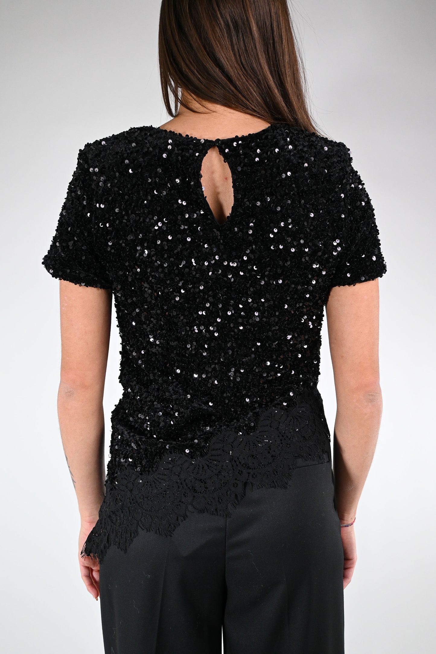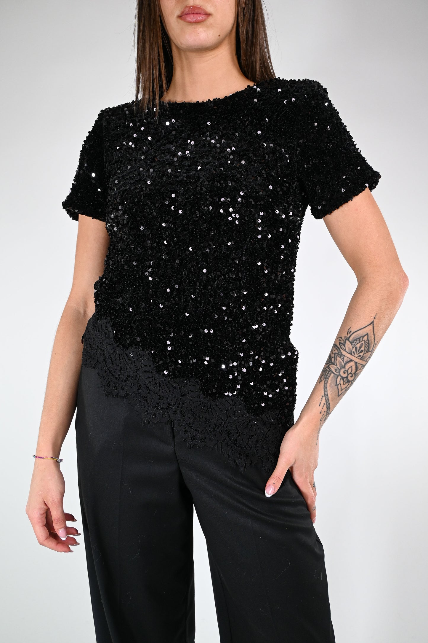 MOTEL - BLUSA PAILLETTES ASIMMETRICA+PIZZO ART.W25CC74 - NERO