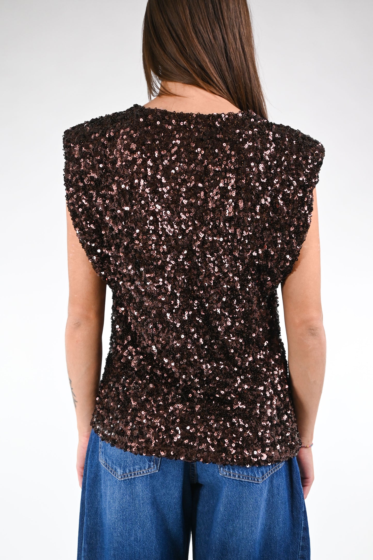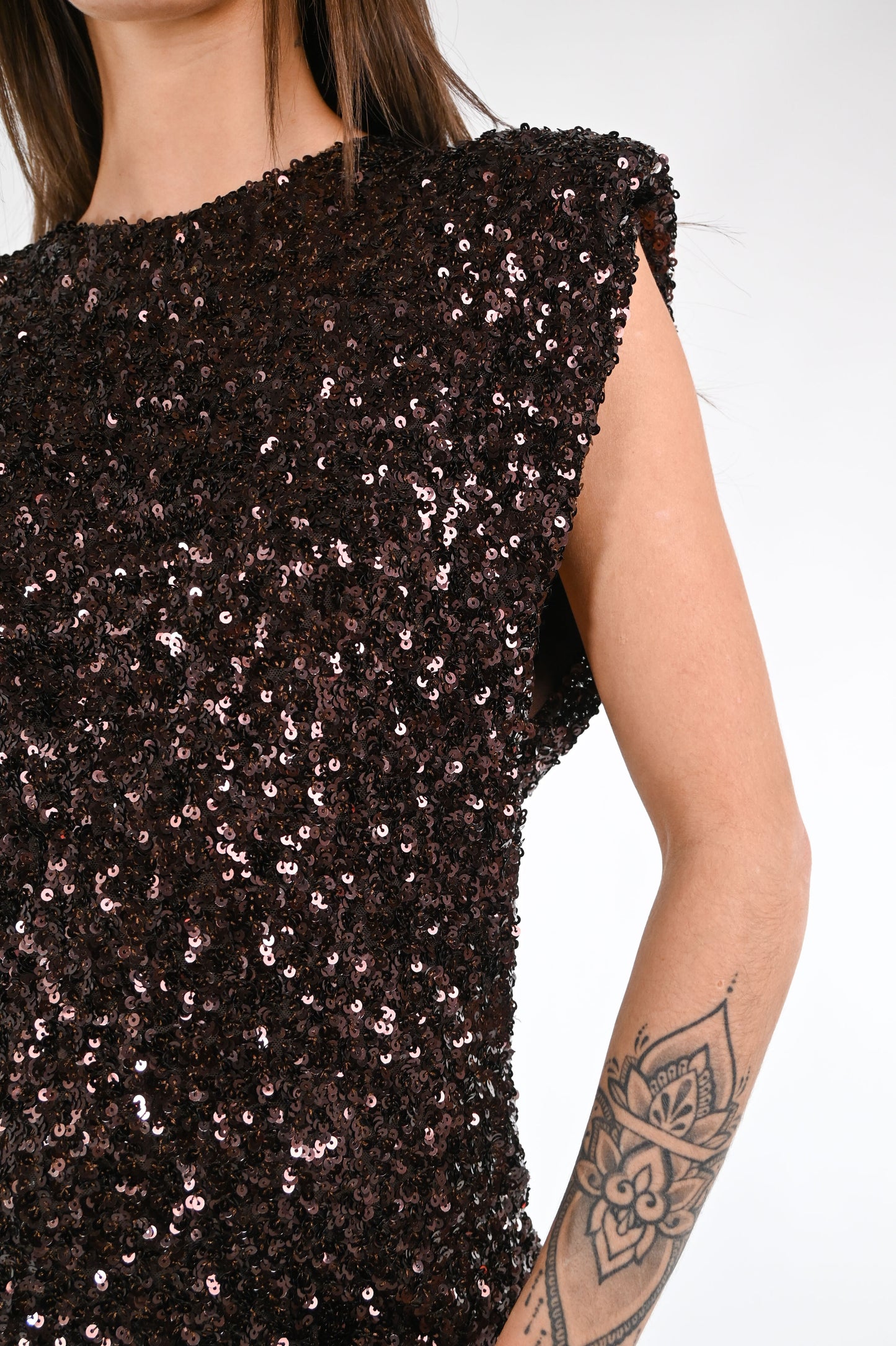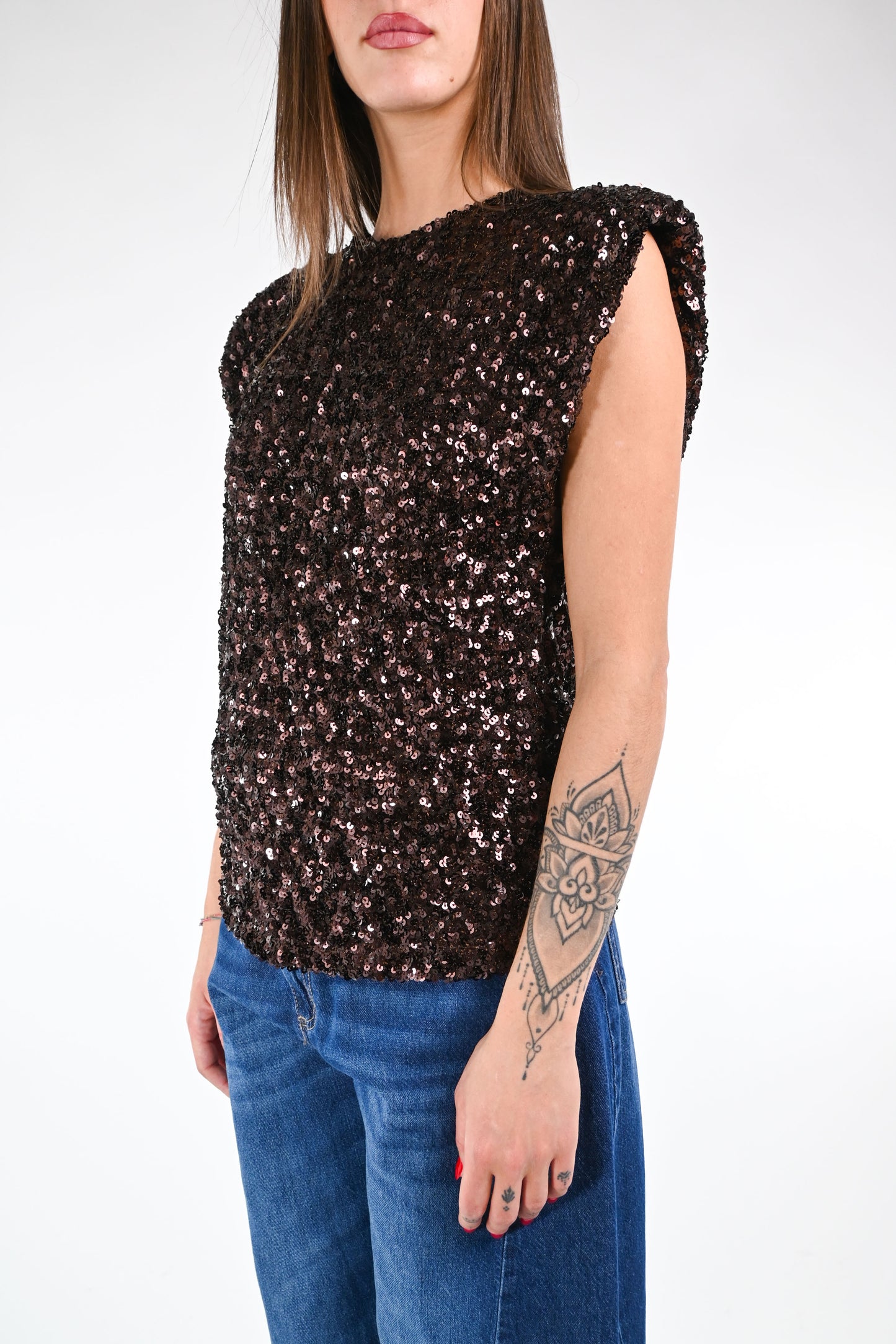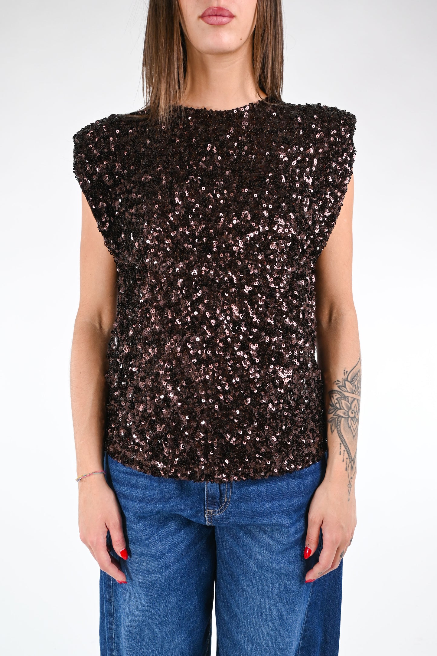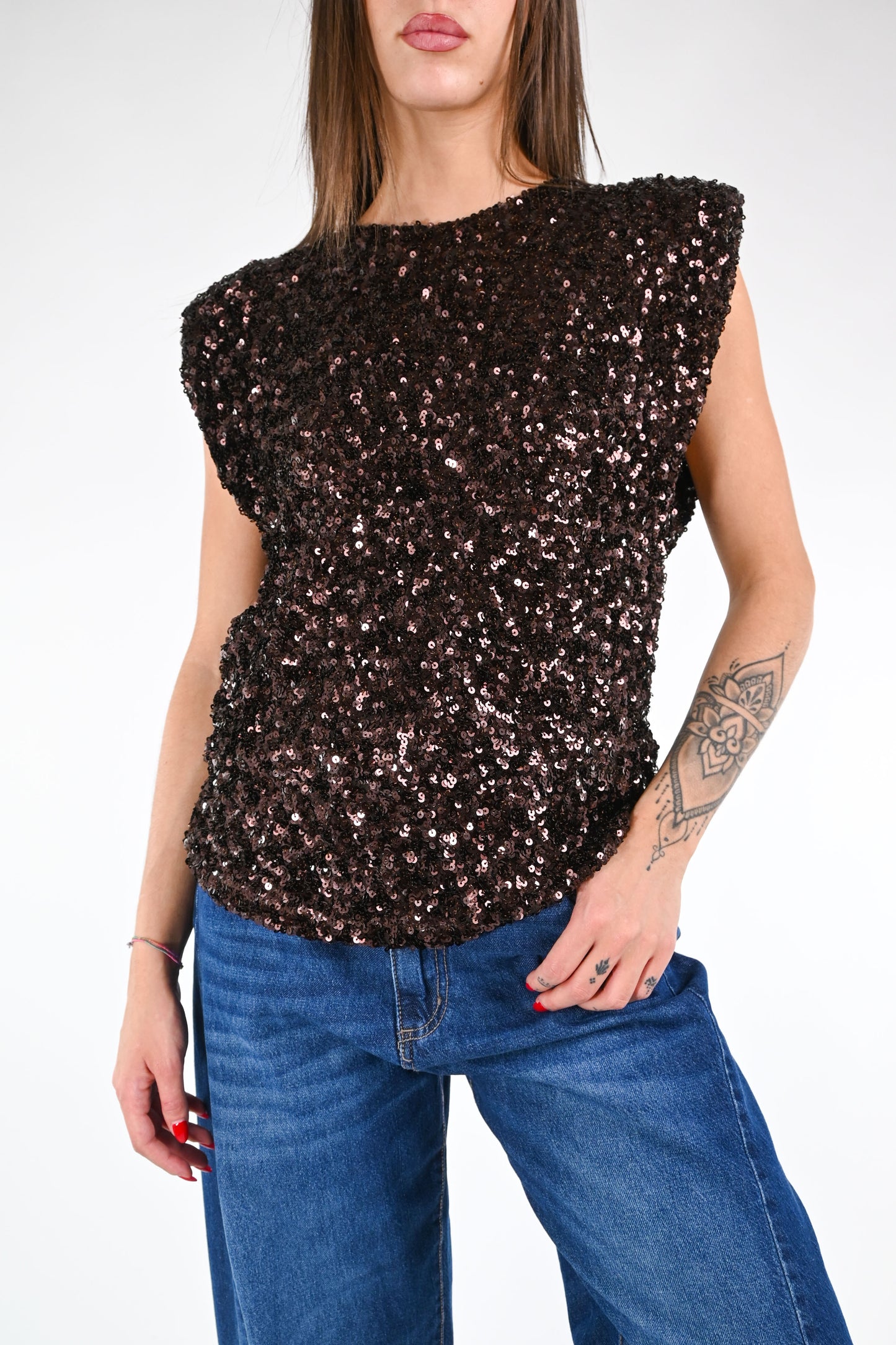 MOTEL - BLUSA SENZA MANICHE CON PAILLETTES ART.W25MA30 - MORO
