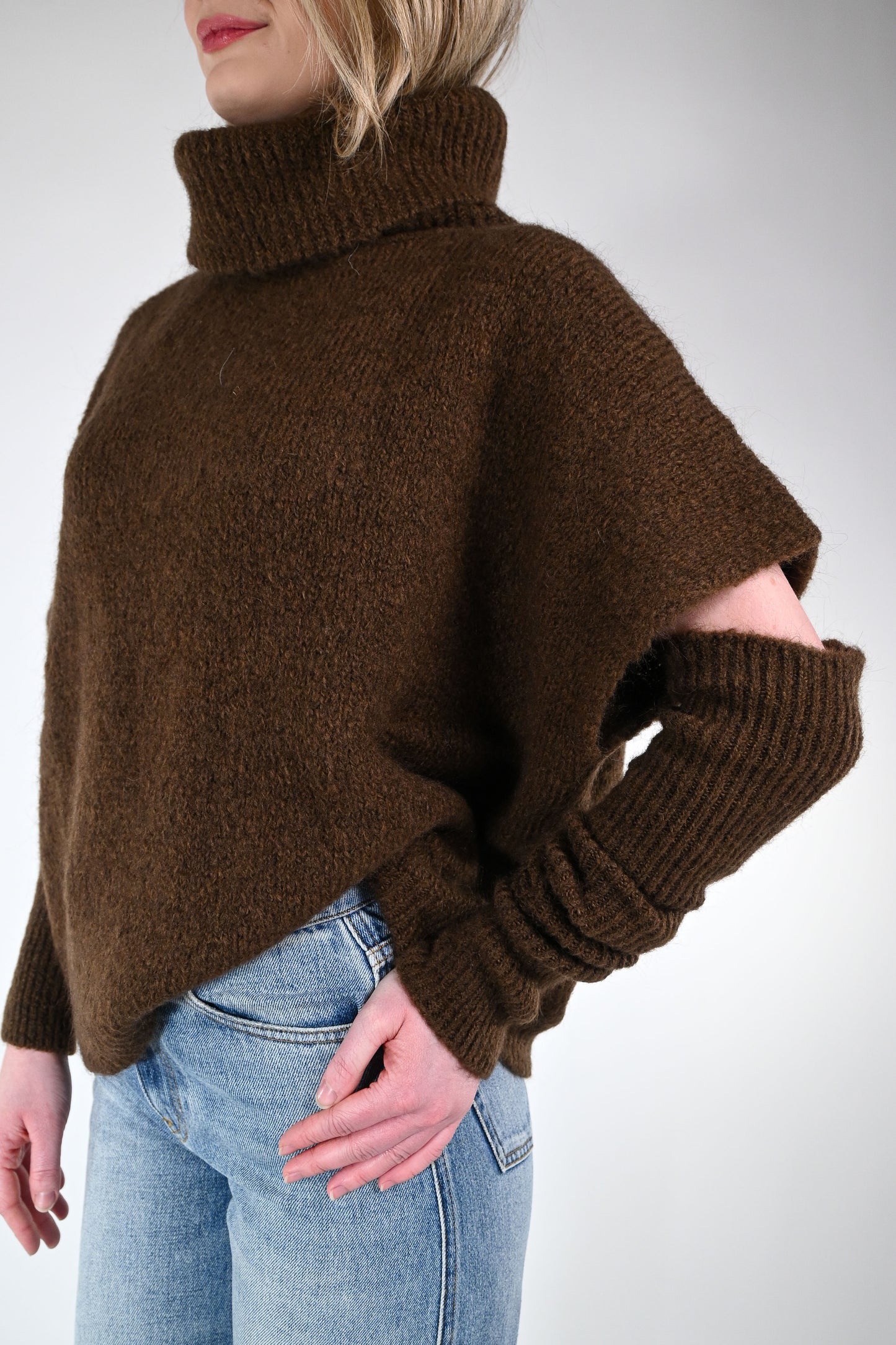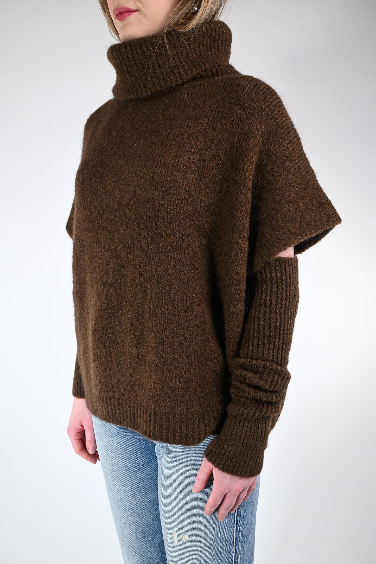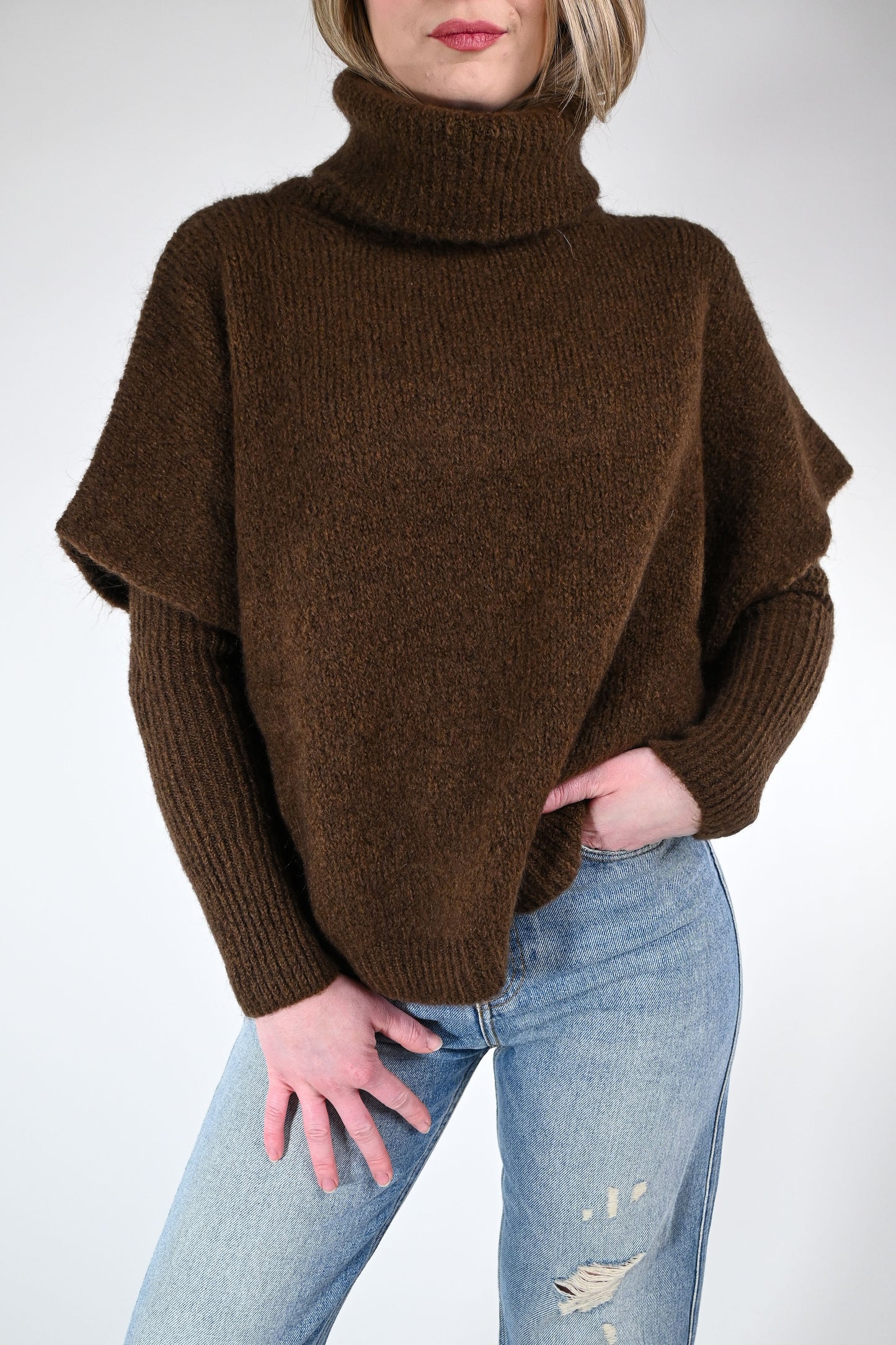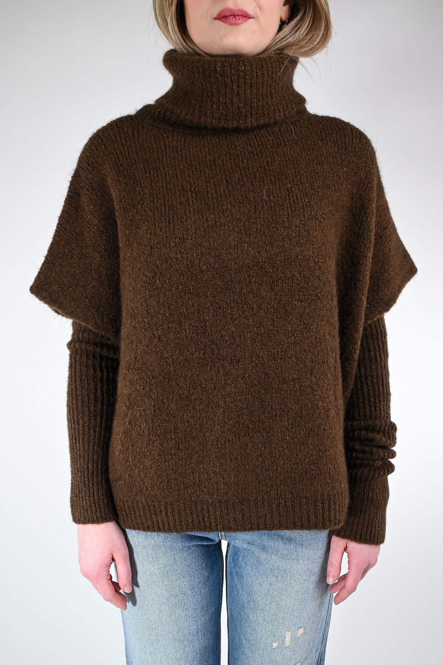 Dolcevita over con manicotti abbinati, colore moro