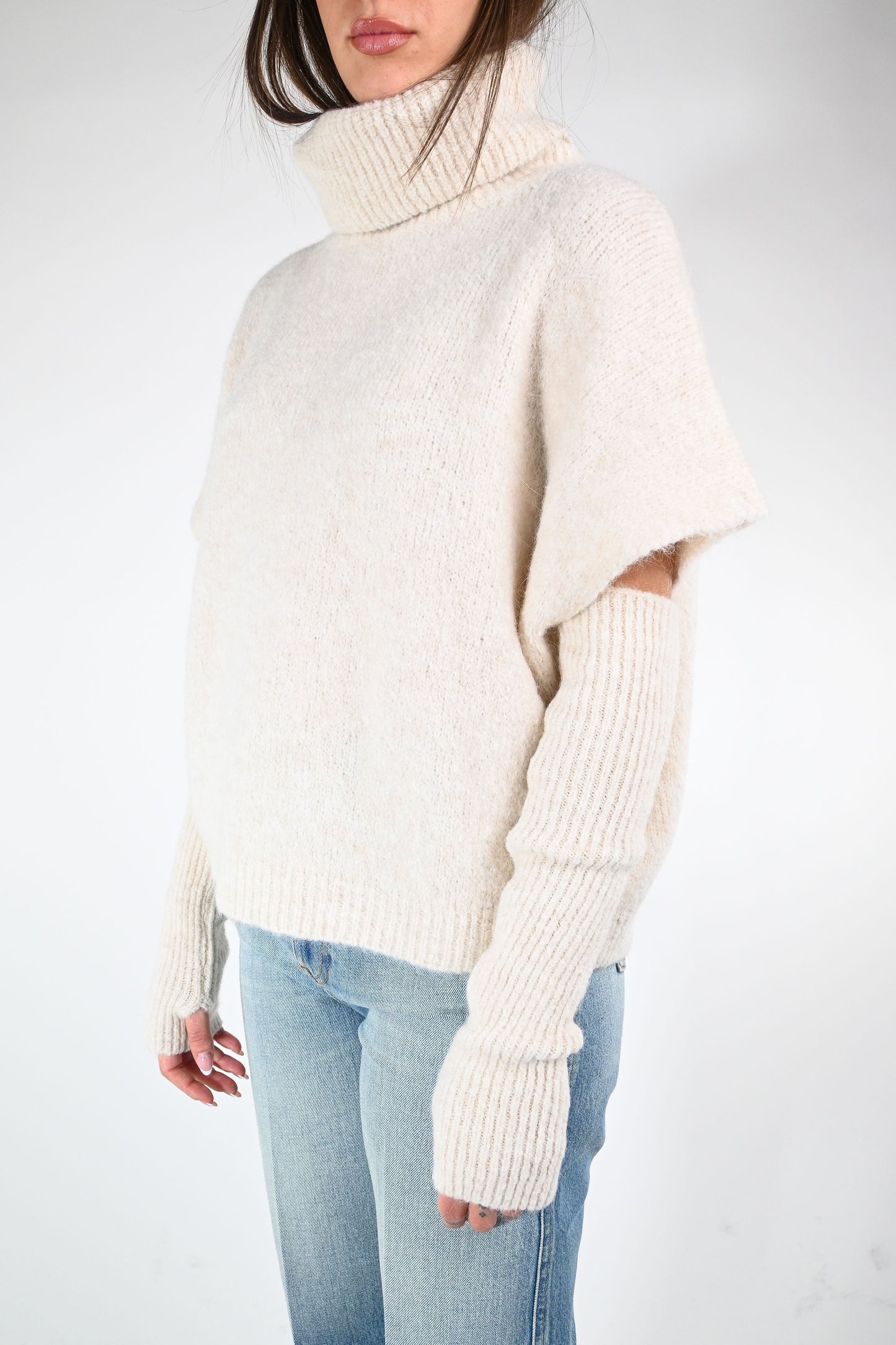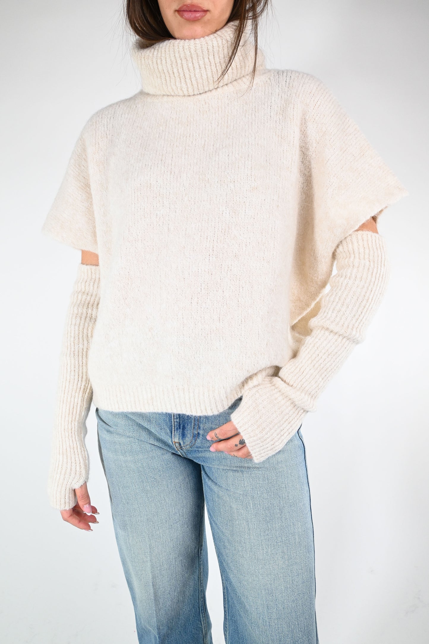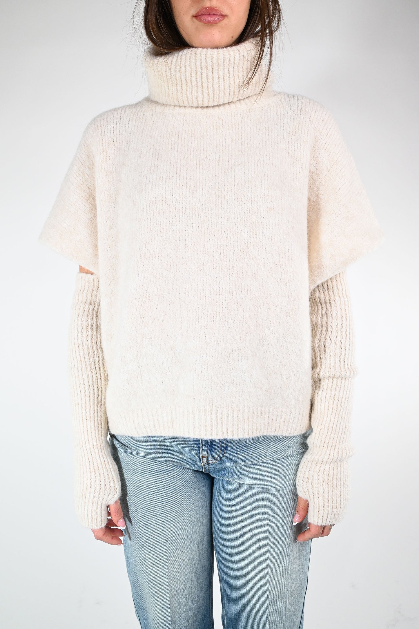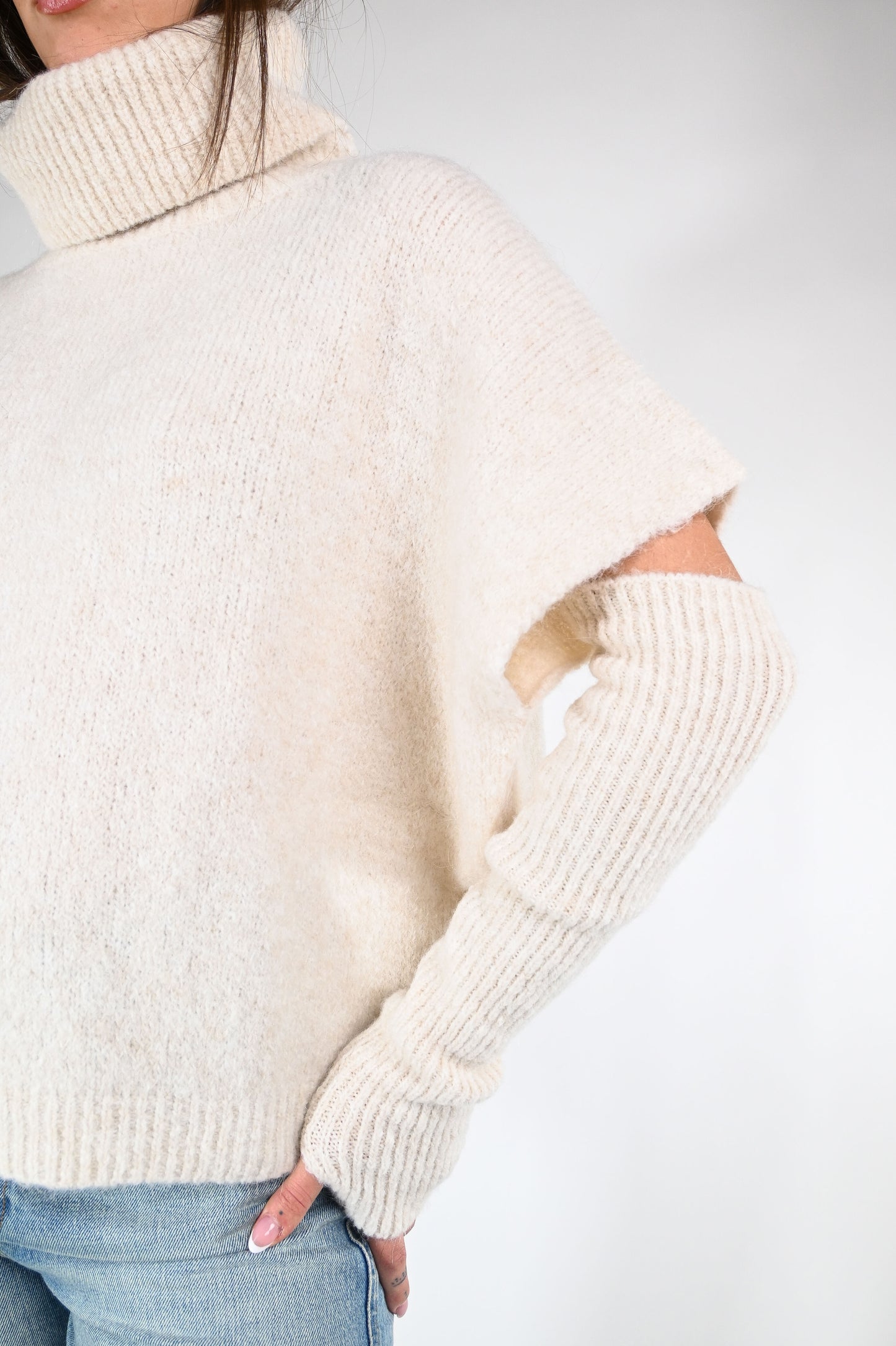 Dolcevita over con manicotti abbinati, colore panna
