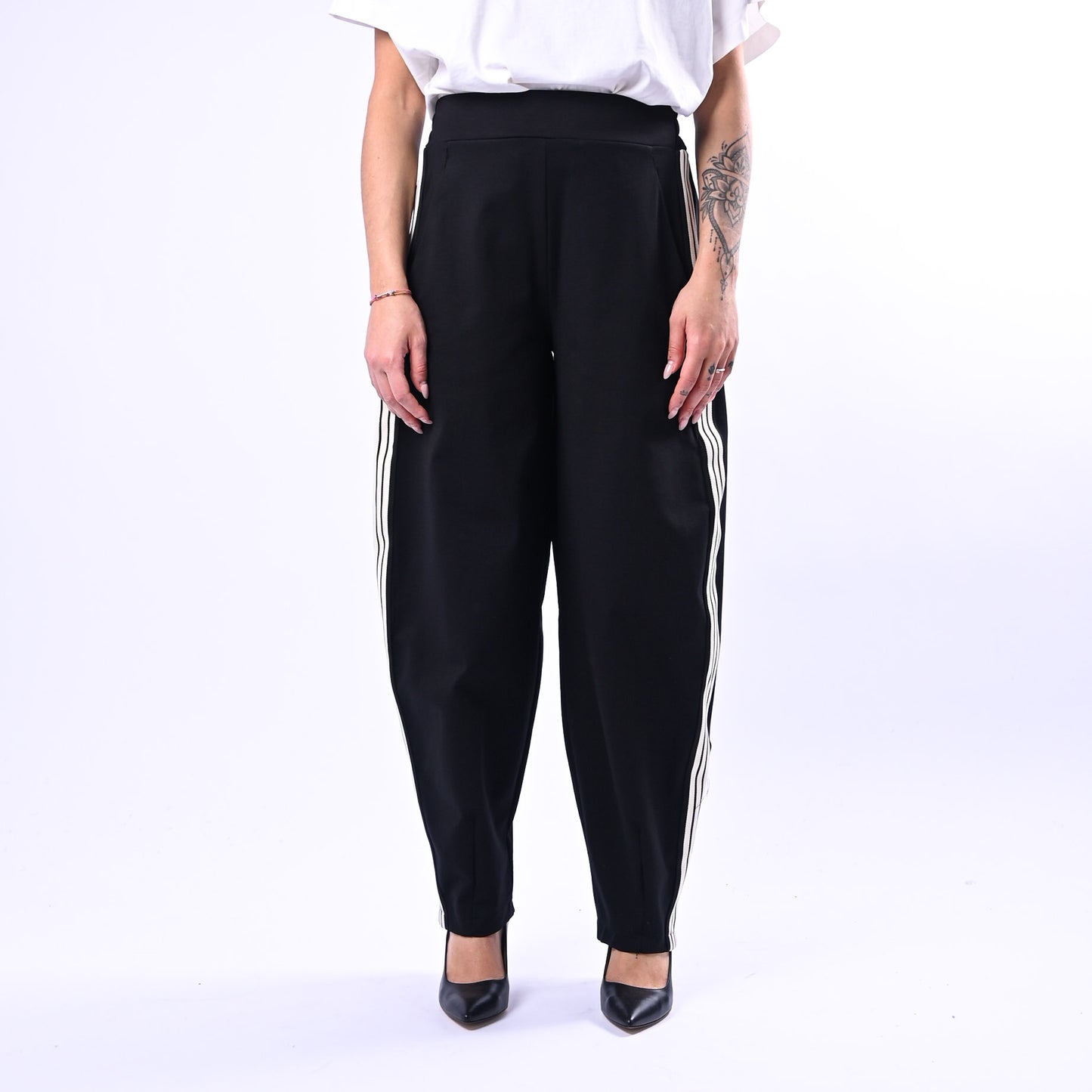 MOTEL - PANTALONE BALLOON PUNTO MILANO CON BANDA ART.38615G - NERO