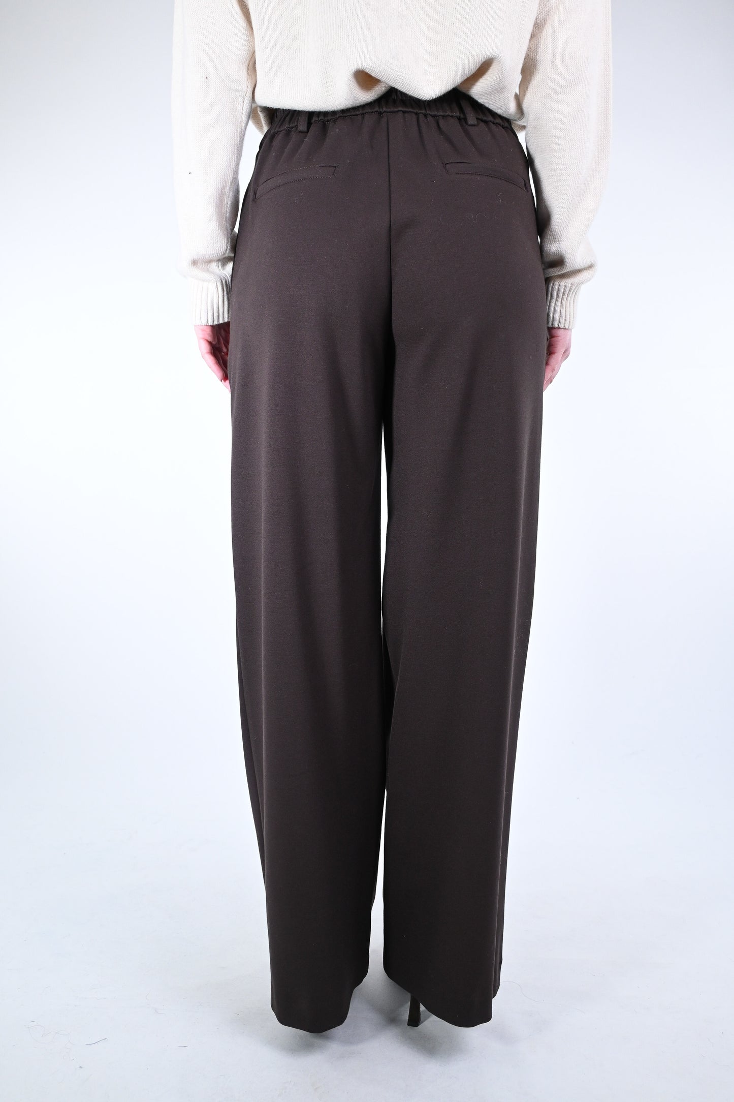 Prezzo normale €28,50Pantalone palazzo punto milano, con mezzo elastico in vita, tasca a filo, elasticizzato, colore moro