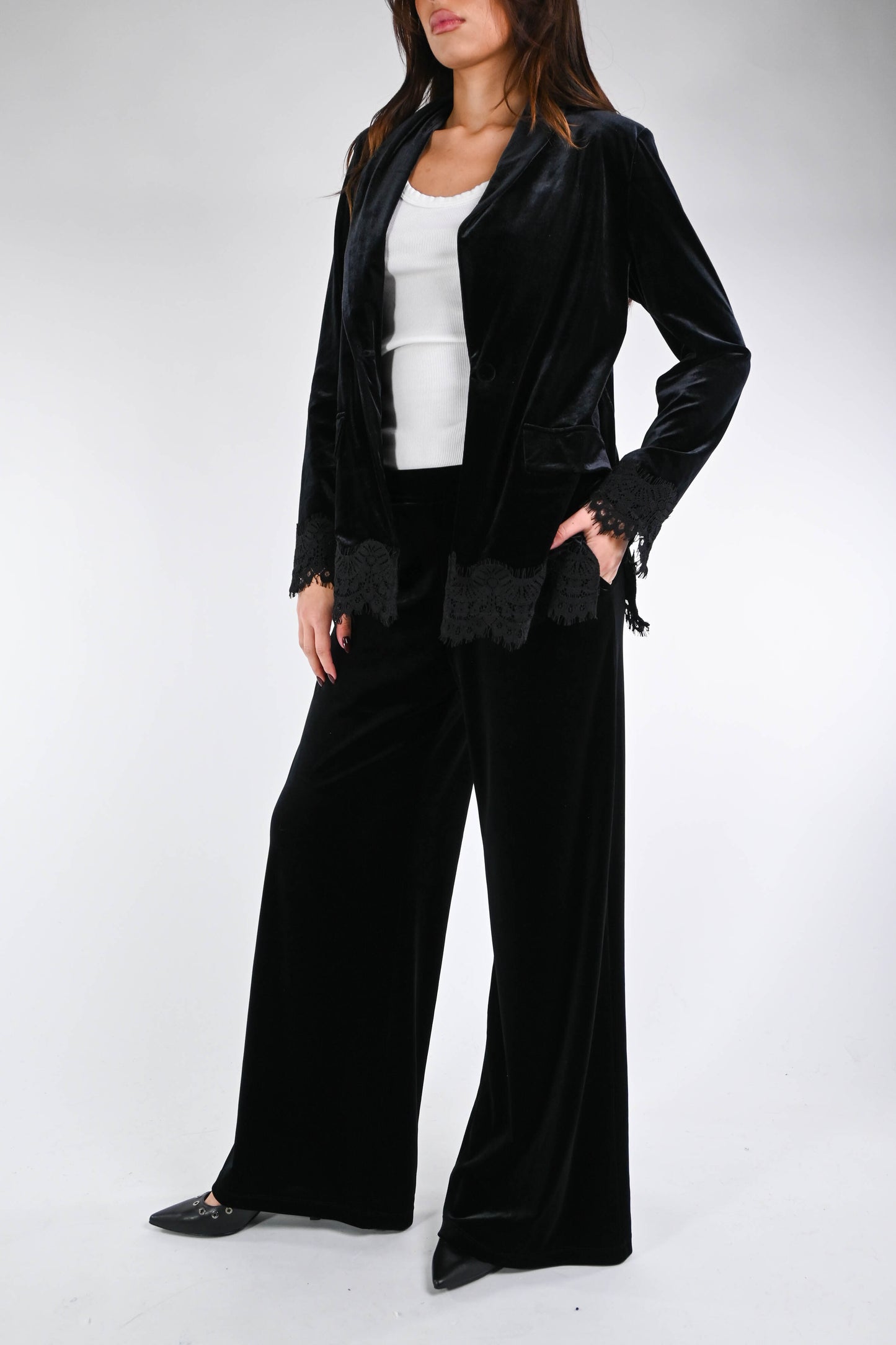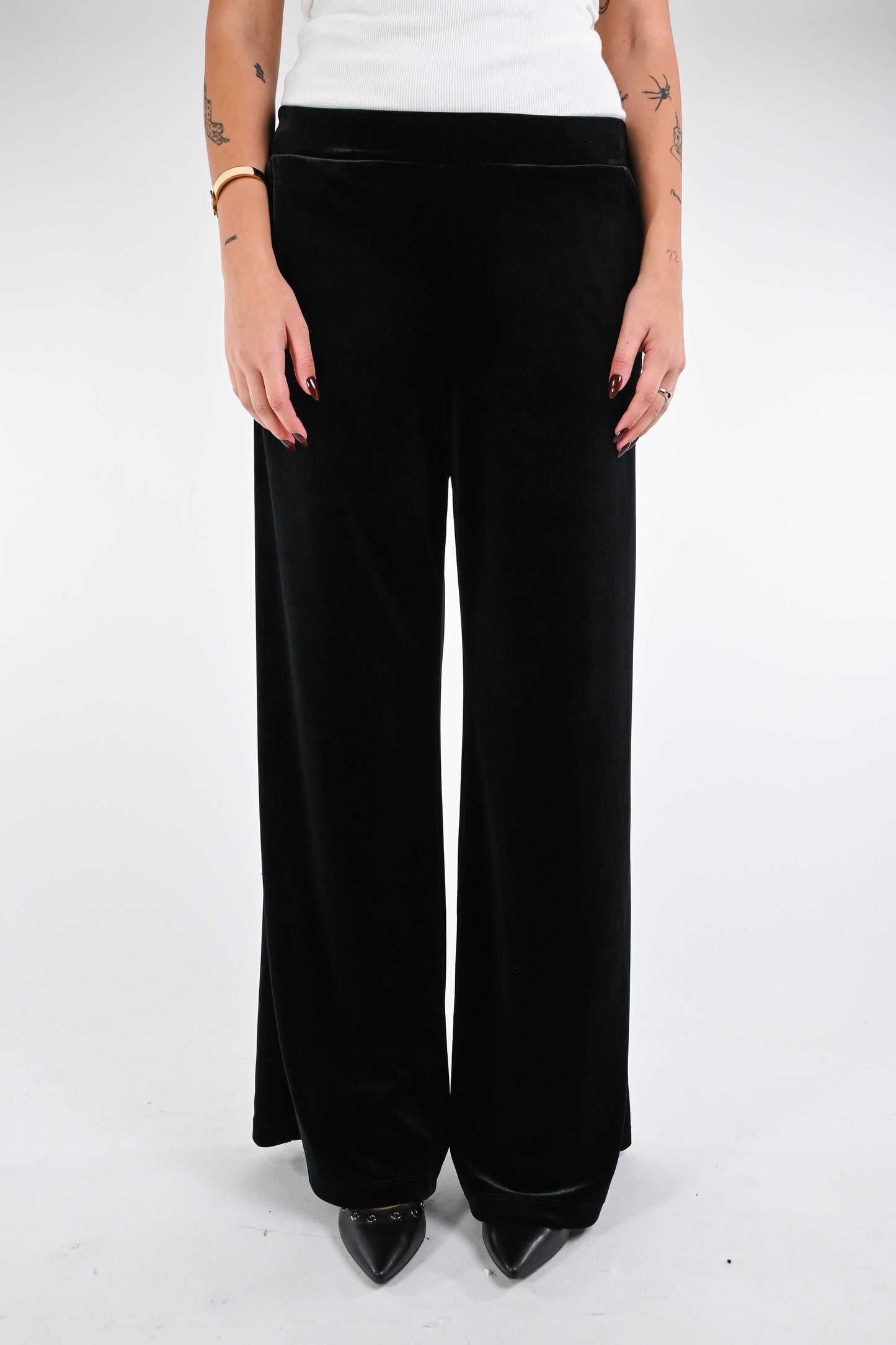 MOTEL - PANTALONE PALAZZO VELLUTO LISCIO ART.P50142 - NERO