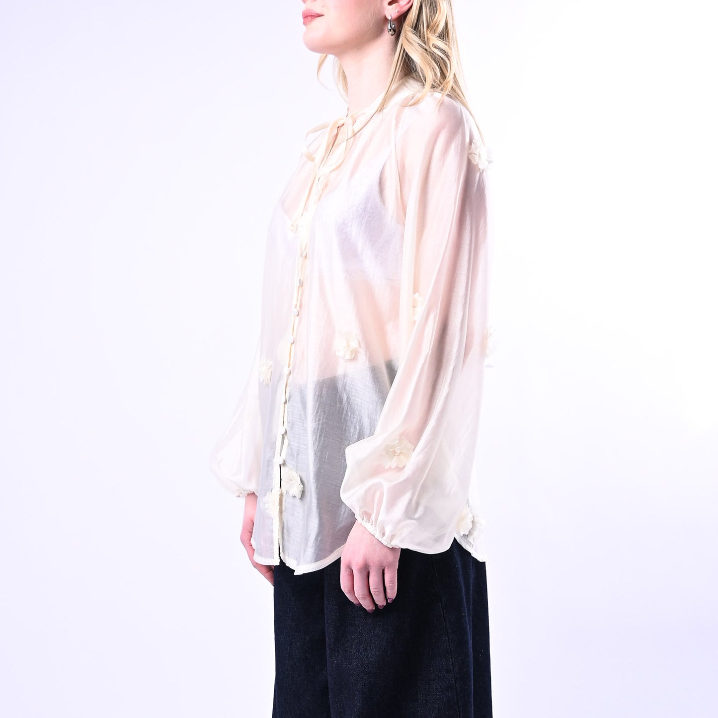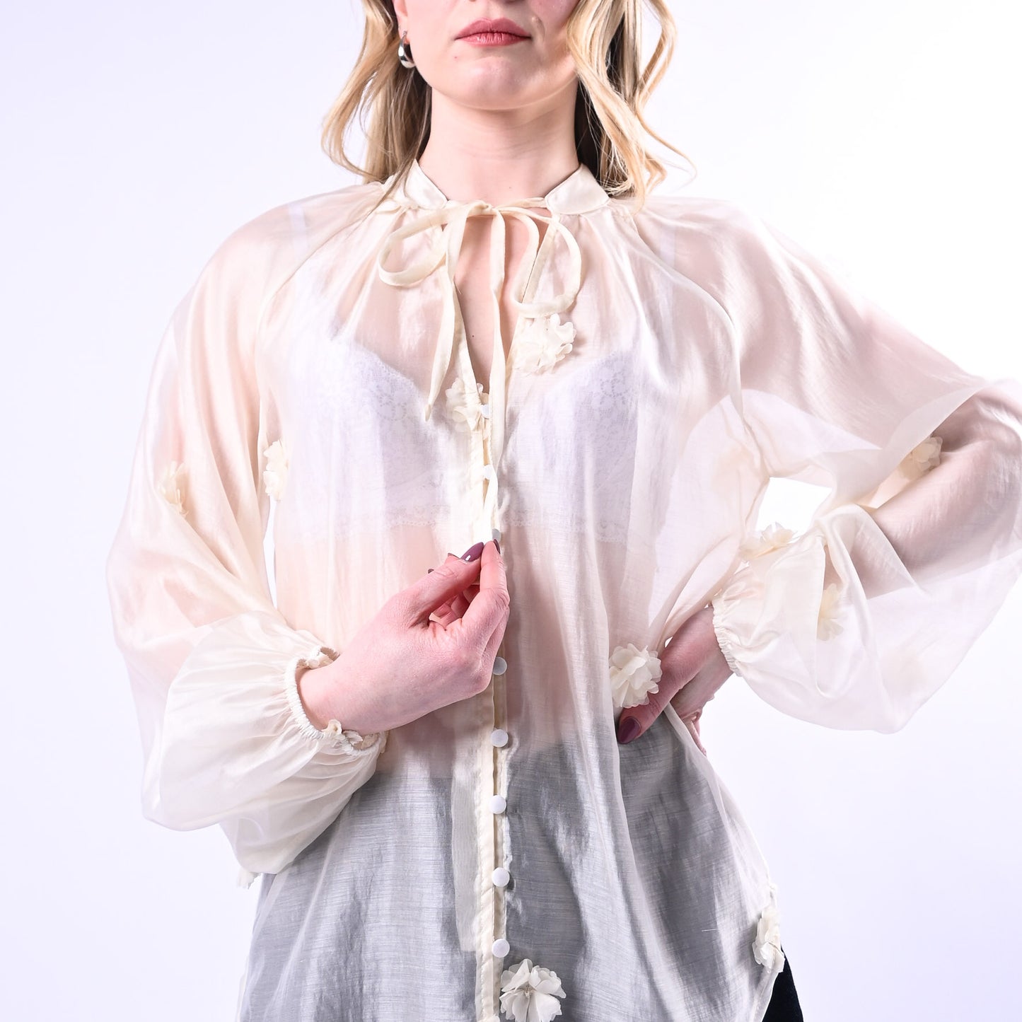 PHILIA LOFT - CAMICIA LYOCELL CON FIORI APPLICATI ART.S02E0311 - CREMA