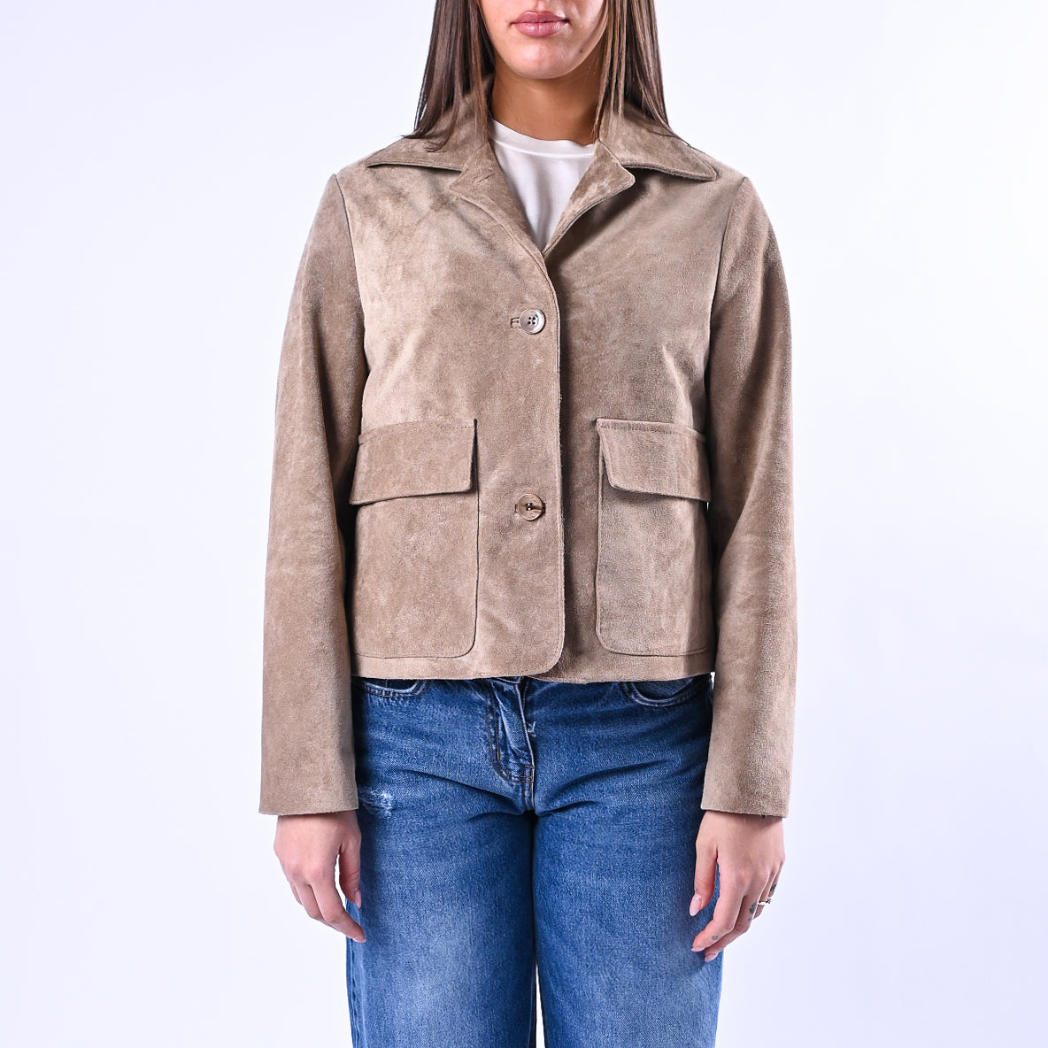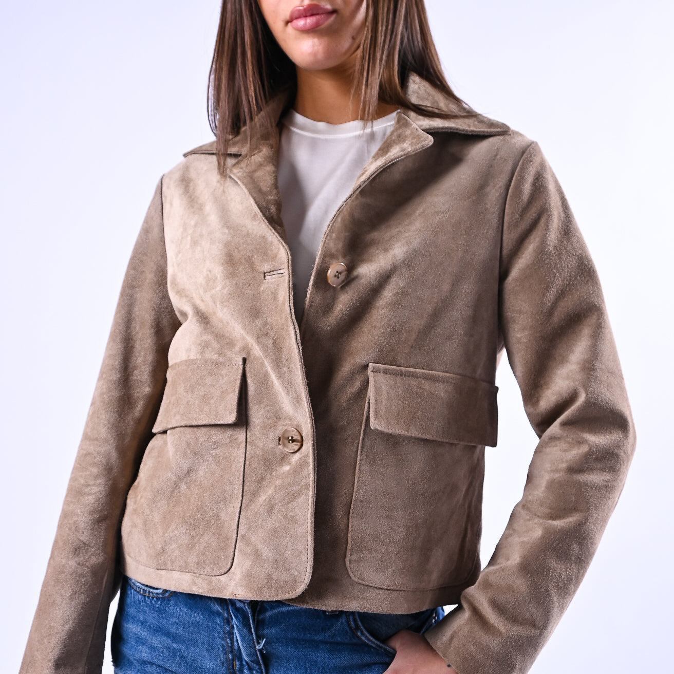 Giacca in morbida pelle scamosciata dal taglio a scatola, dotata di colletto strutturato e tasche applicate funzionali. Completamente foderata e chiusa da 3 bottoni, è il capo ideale per uno stile raffinato e duraturo nel tempo.