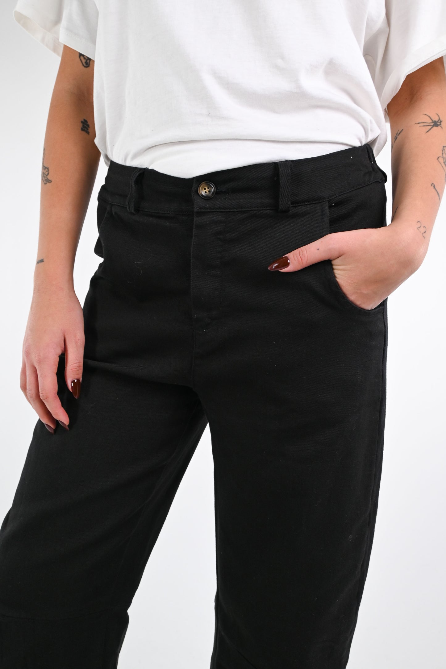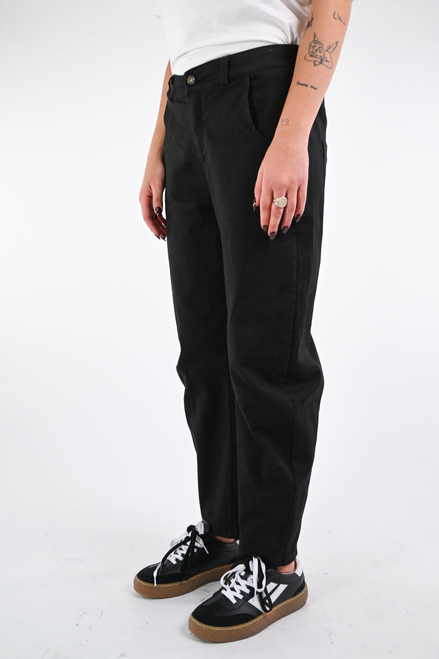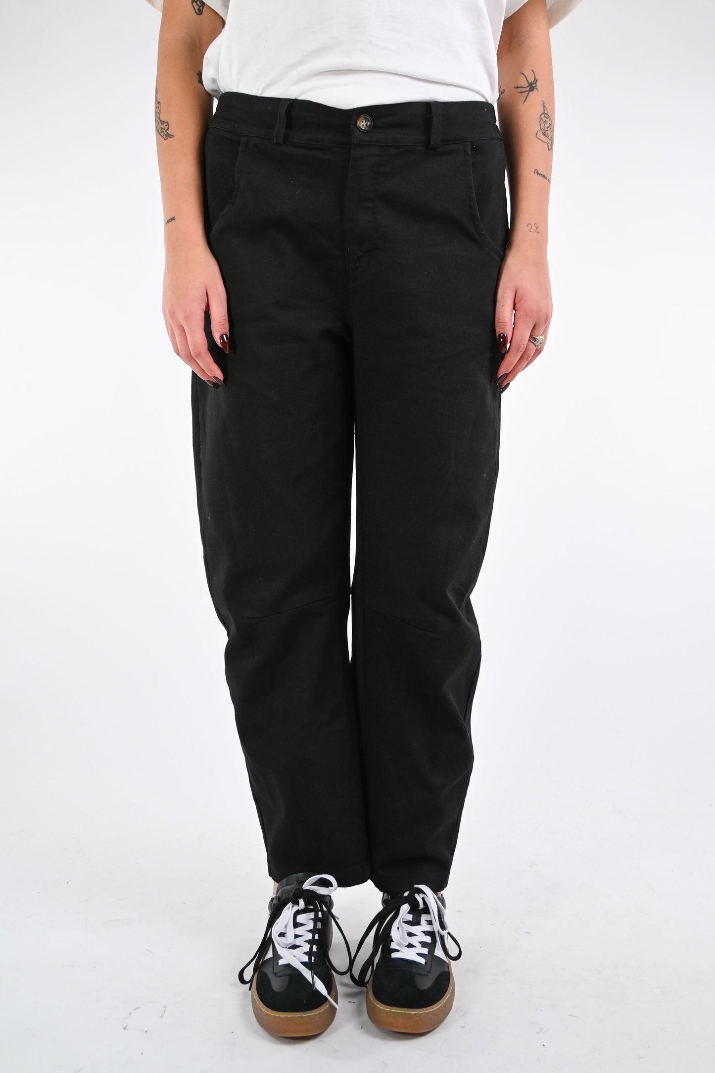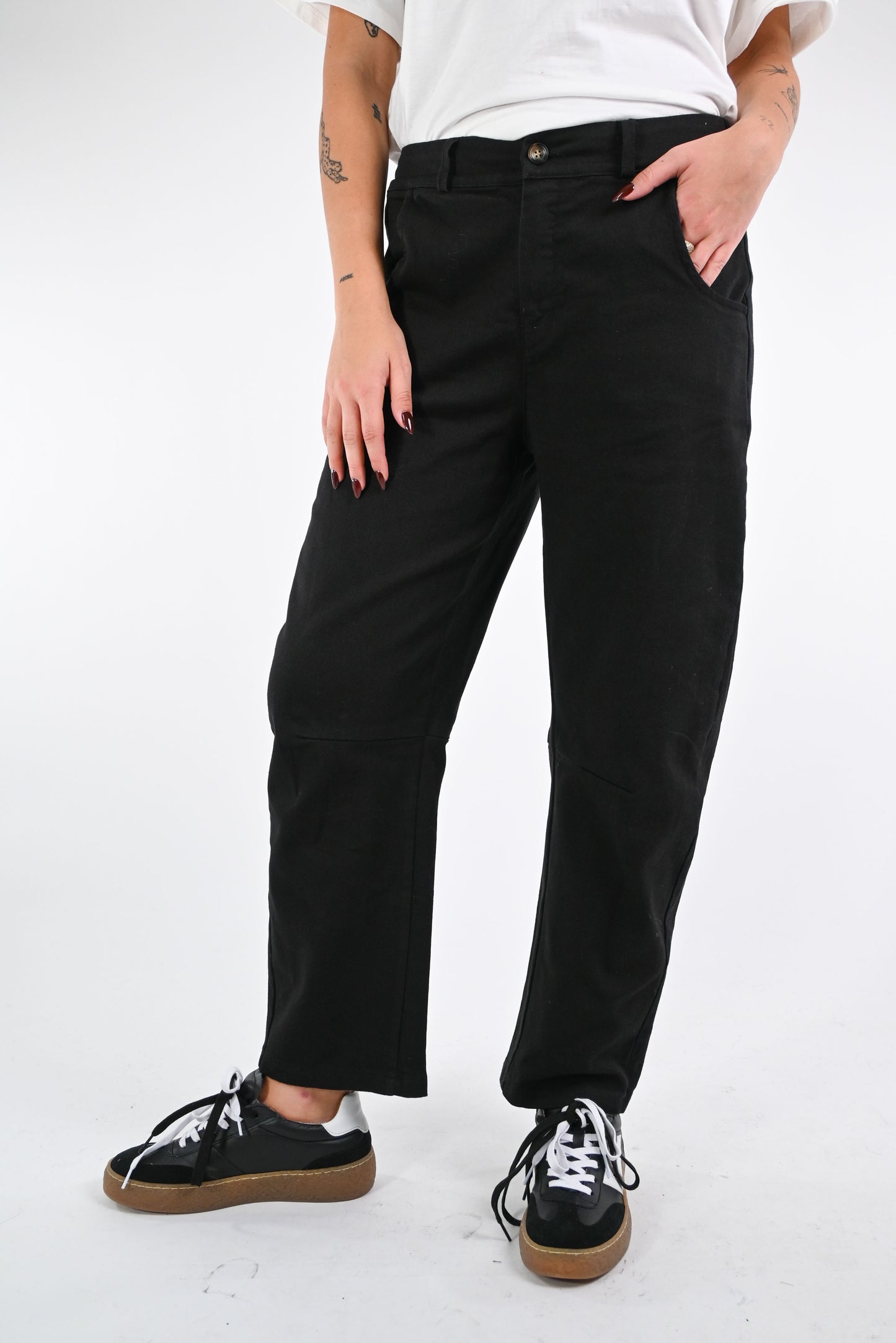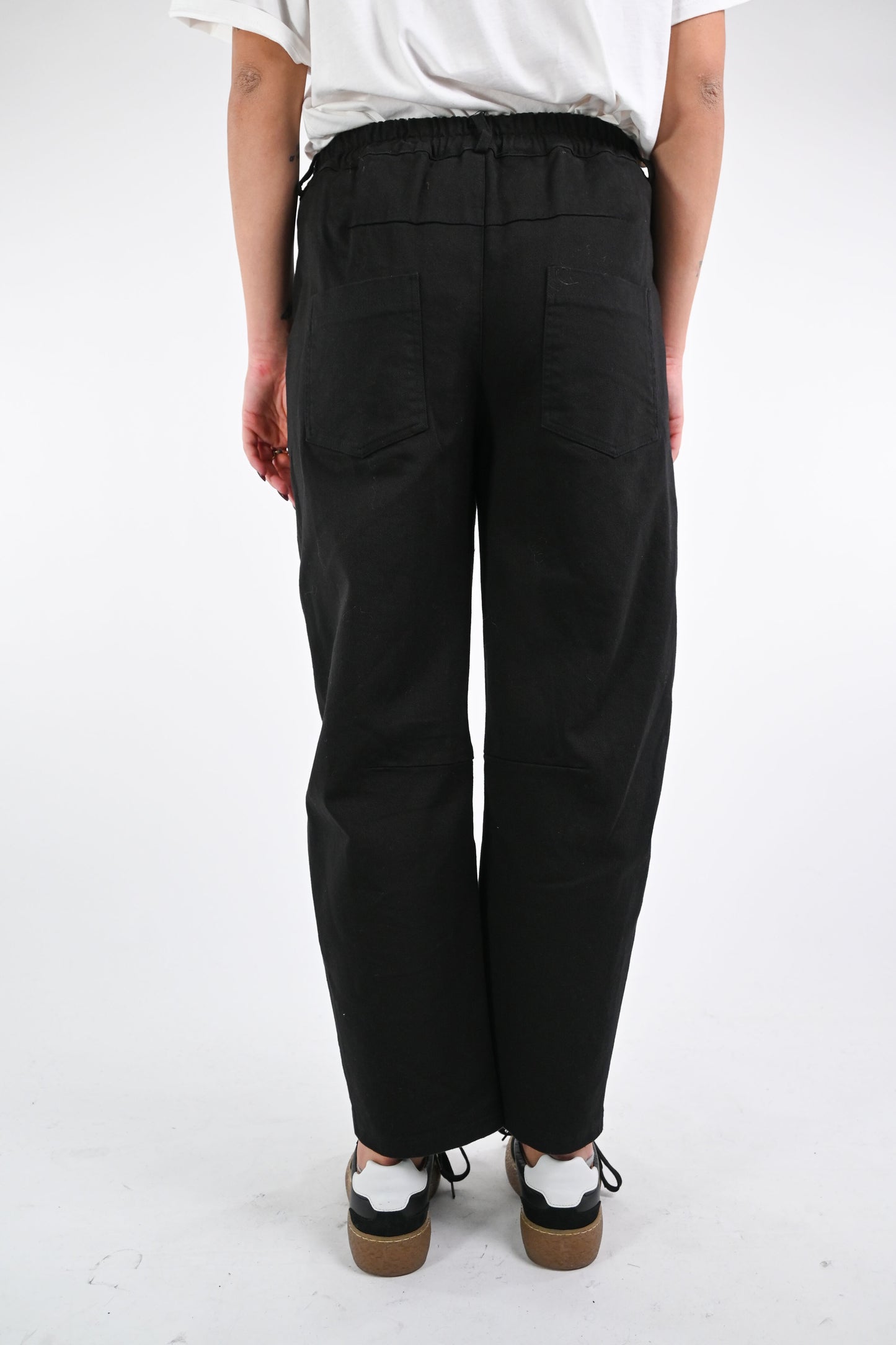 Pantalone baggy in bull denim, con mezzo elastico in vita, colore nero