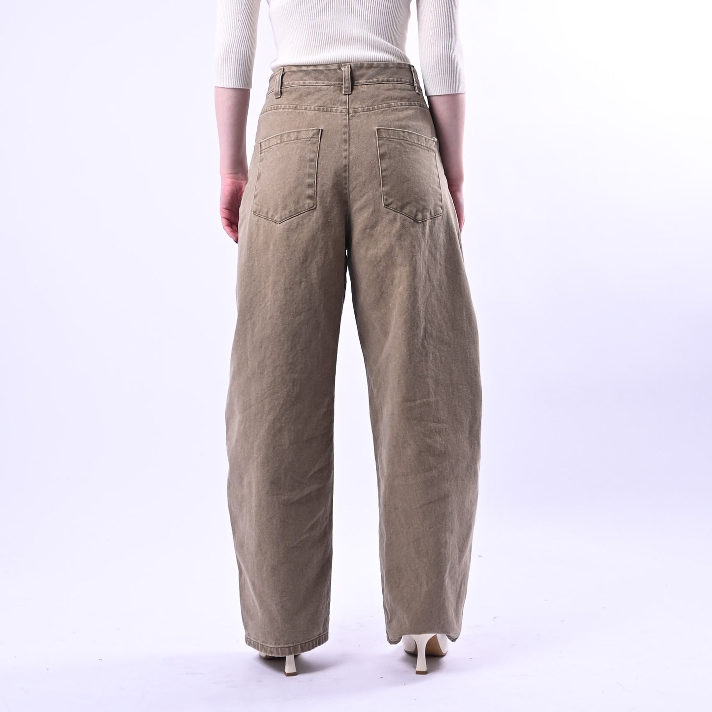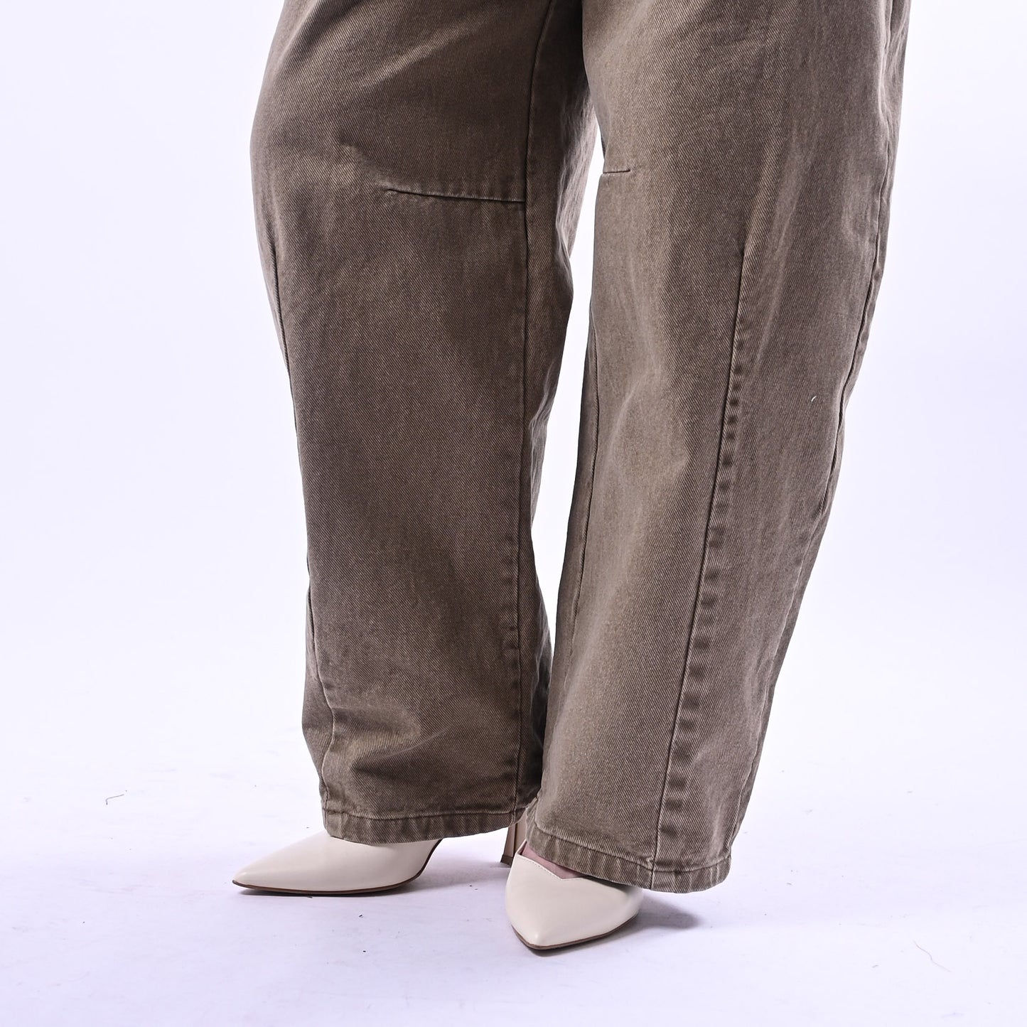 Pantalone balloon in bull denim con riprese e trattamento acid wash, che conferisce un'estetica vintage e ricercata. Taglio ampio e confortevole.