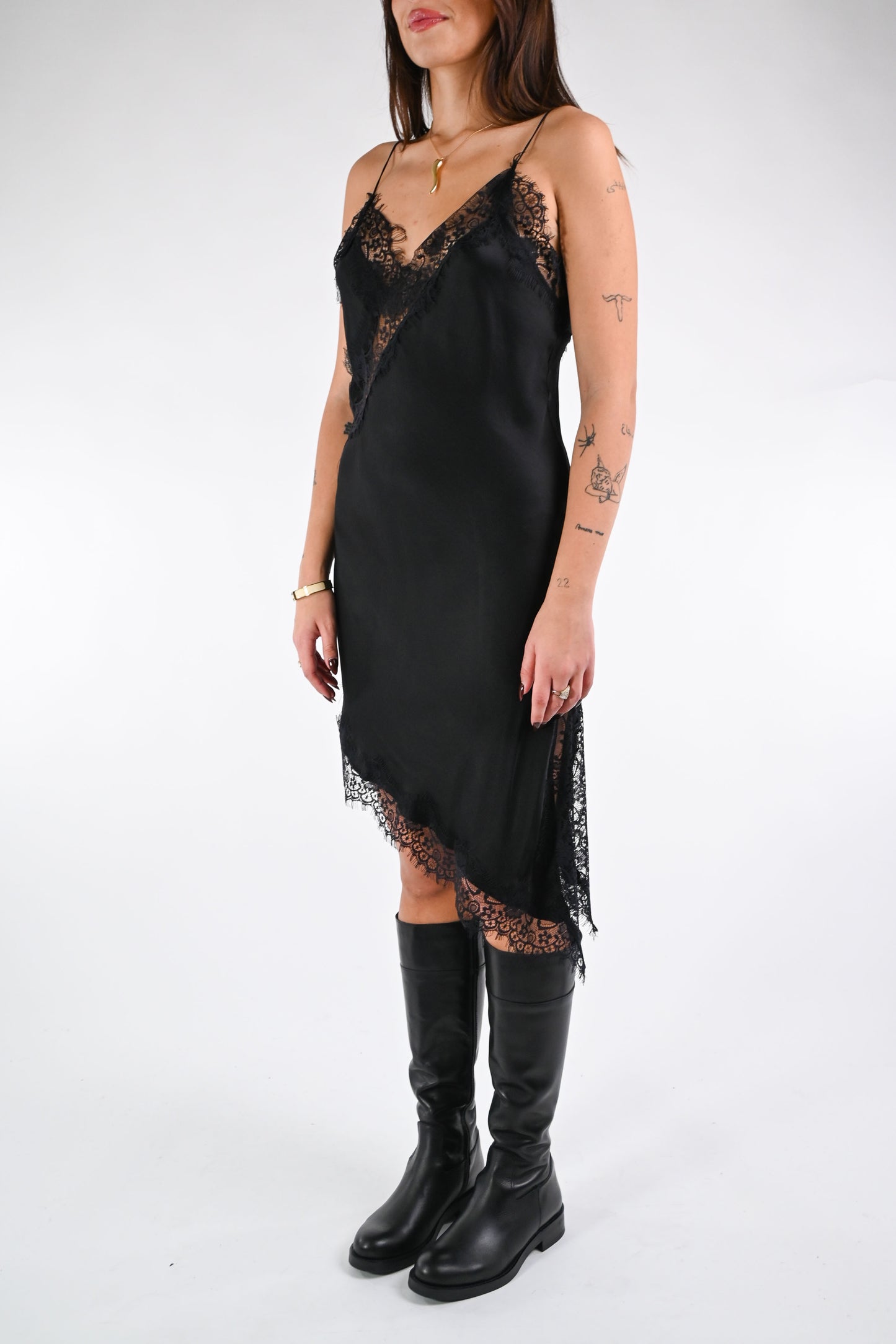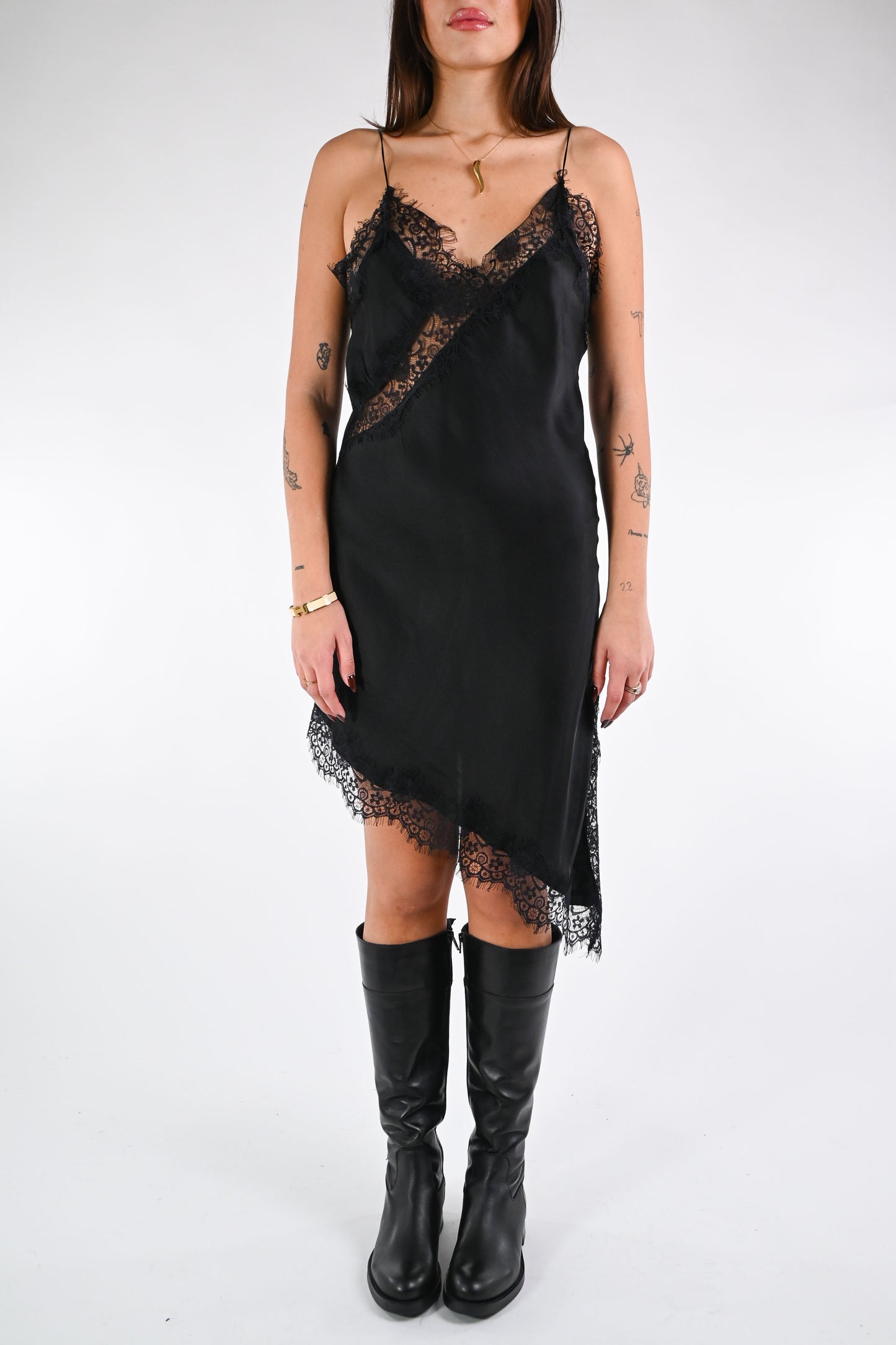 SOUVENIR - ABITO ASIMMETRICO CON PIZZO ART.S38M214 - NERO