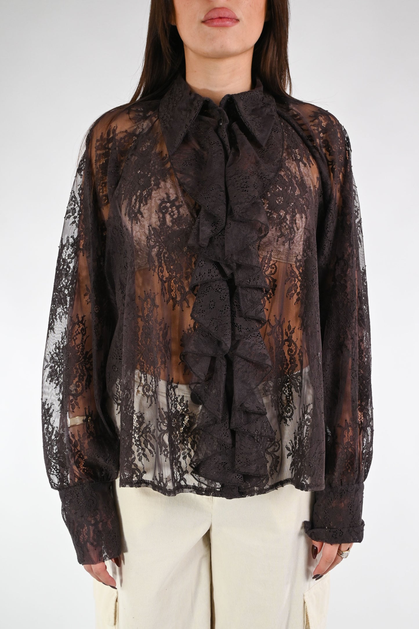 SOUVENIR - CAMICIA PIZZO CON VOLANT ART.T38R1009 - MORO