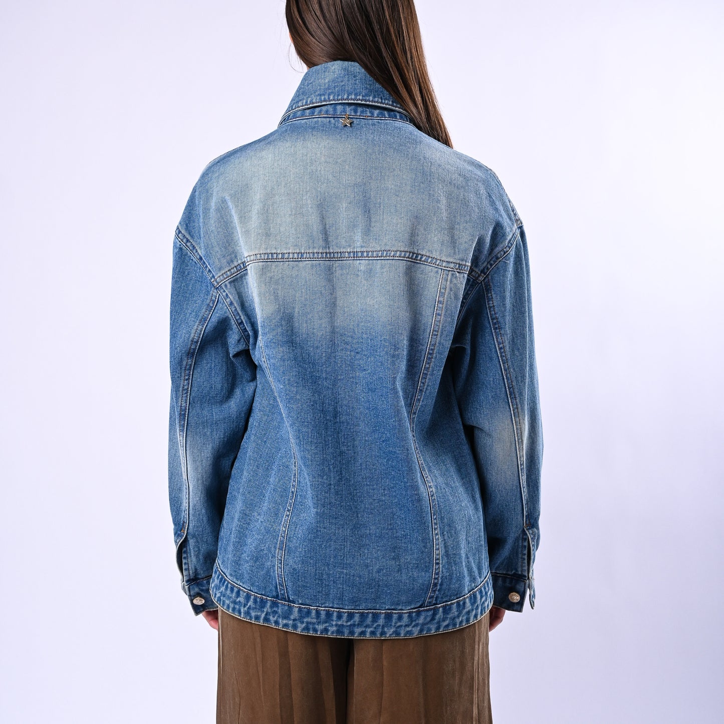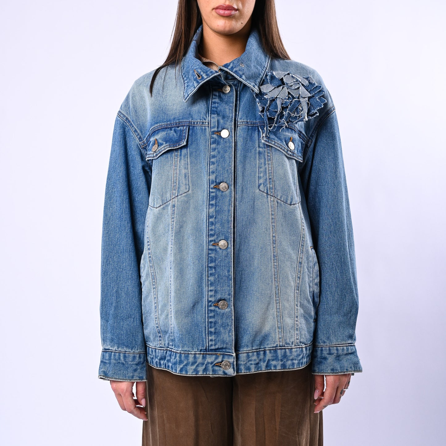 SOUVENIR PRIVE' - GIACCA JEANS CON SPILLA FIORE ART.S39M0203 - LAVAGGIO CHIARO