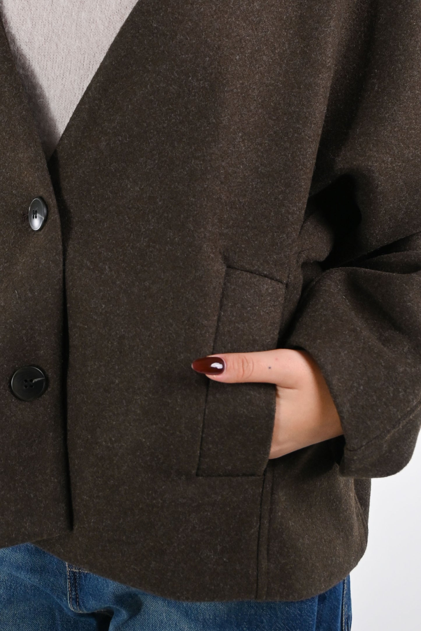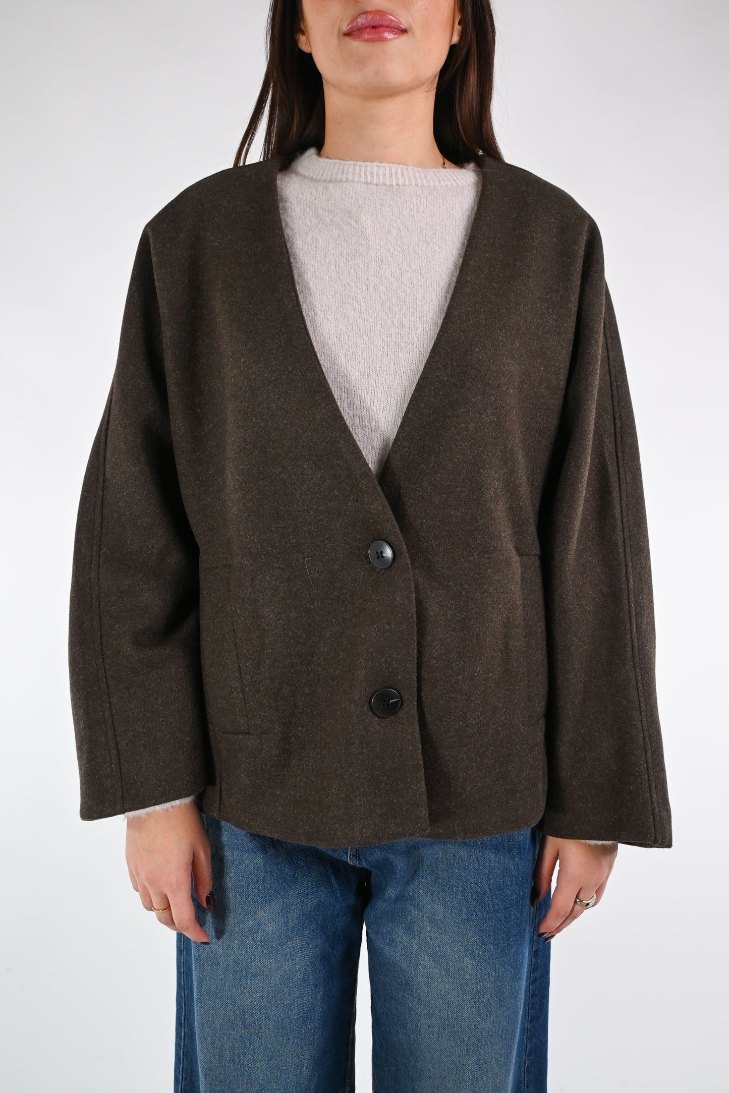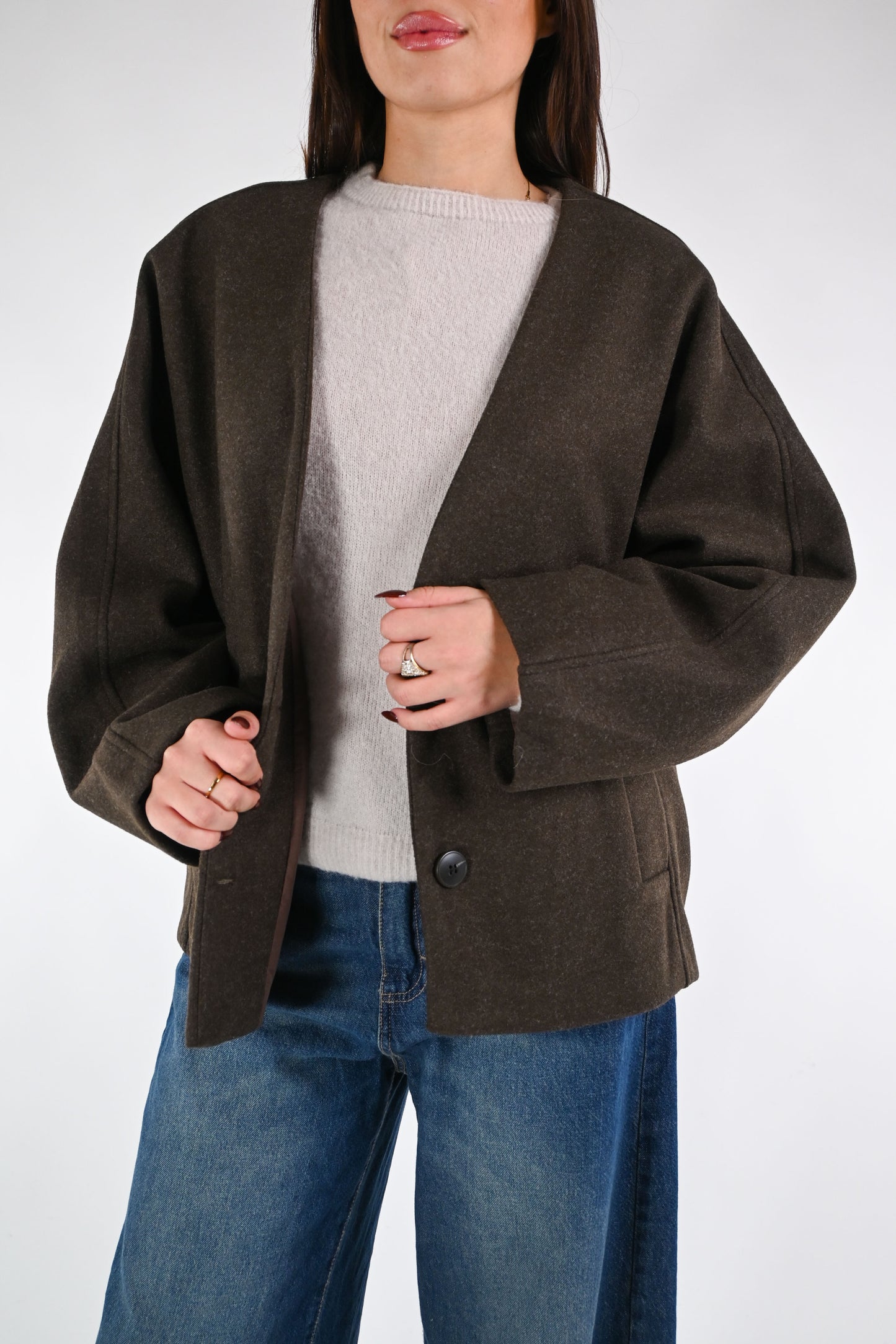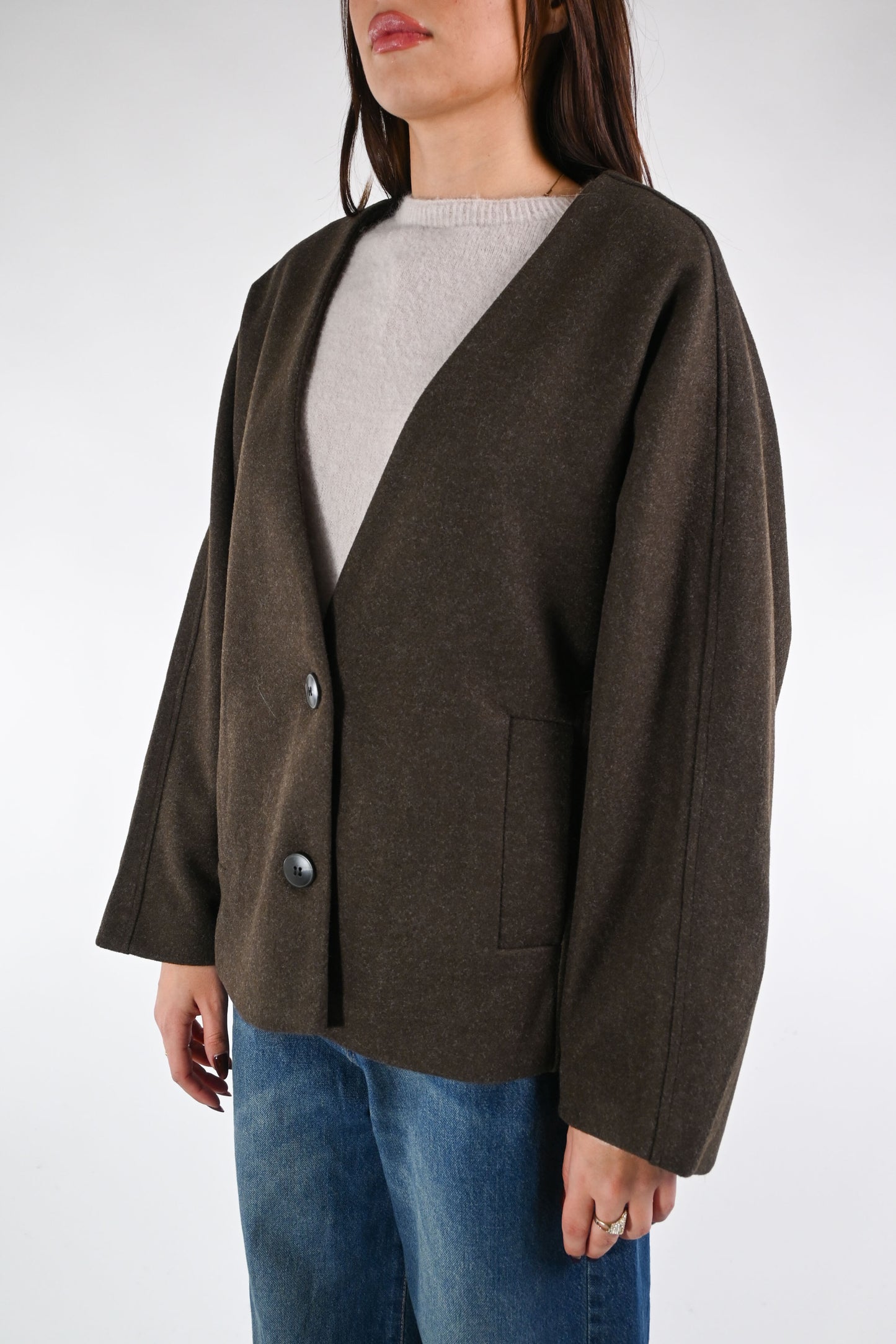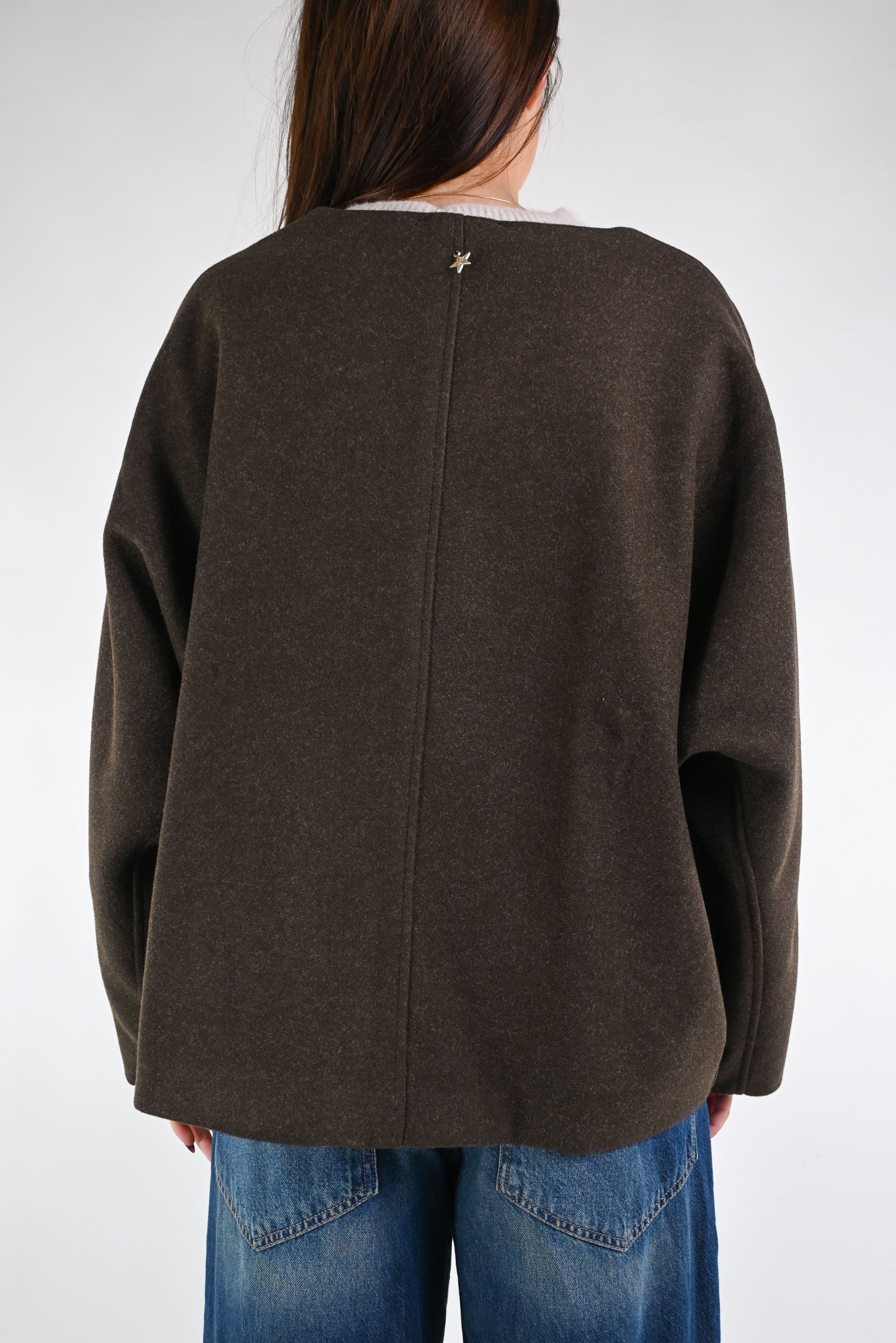 SOUVENIR - GIACCA SENZA COLLO OVER IN PANNO ART.F38X0468 - CIOCCOLATO