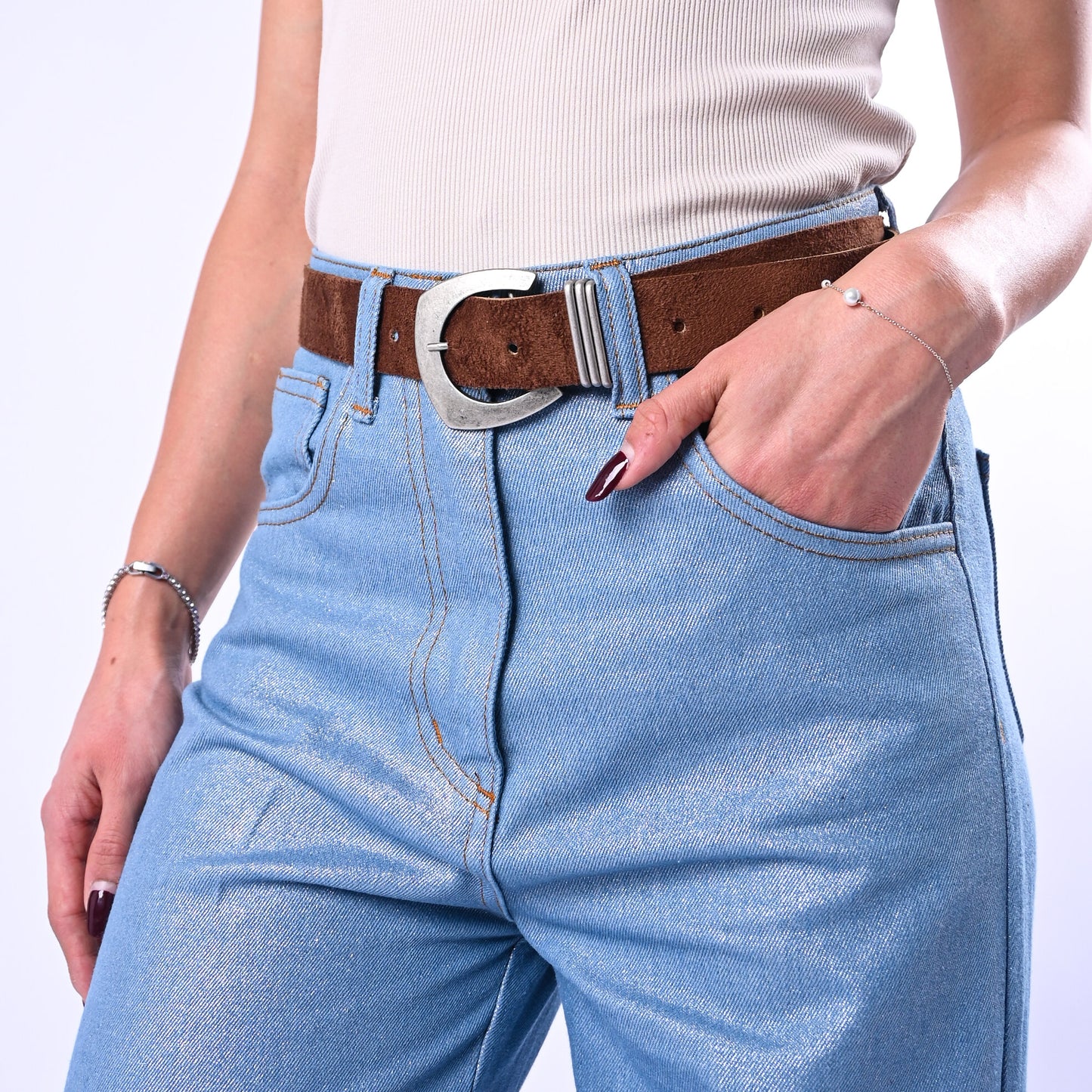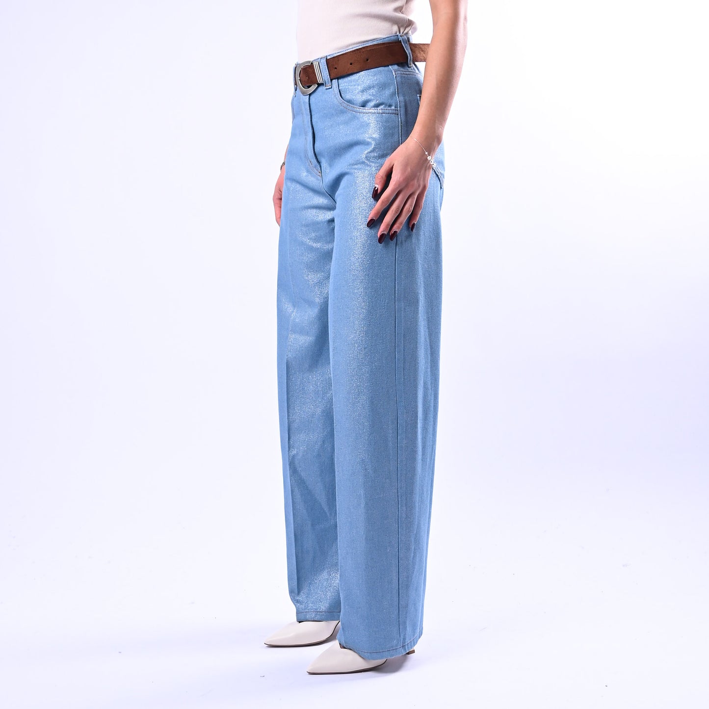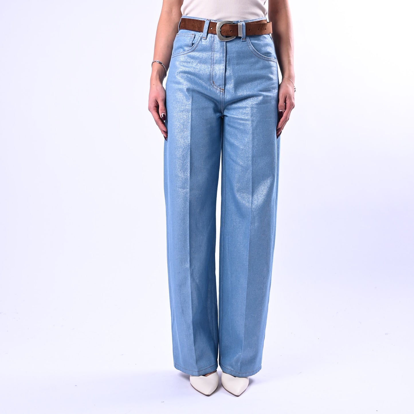 SOUVENIR - JEANS PALAZZO CHAMBRAY SPALMATO ART.S39M0929 - AZZURRO