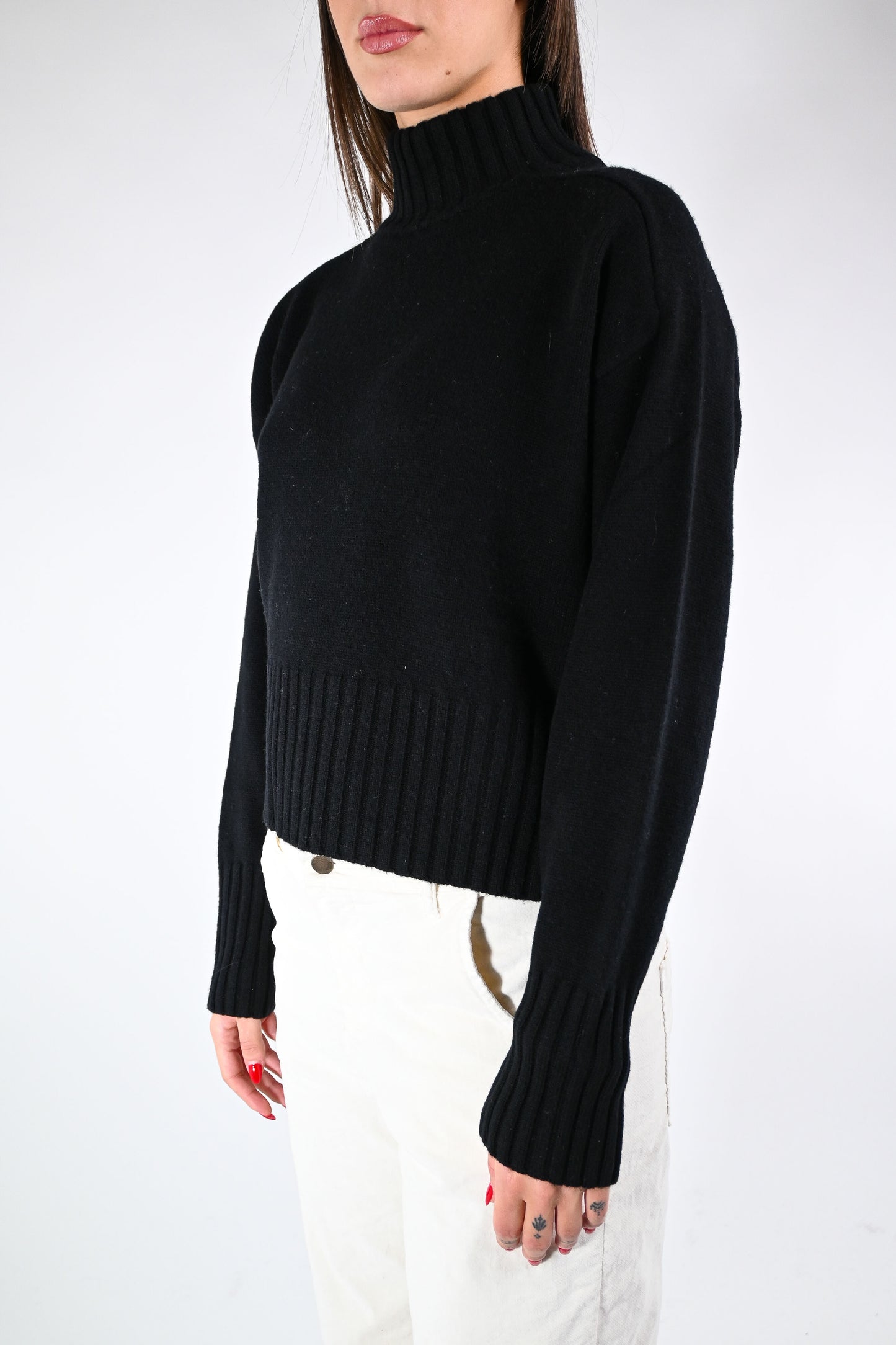 SOUVENIR - MAGLIA 100% LANA COLLO CRATERE ART.B38D1450 - NERO