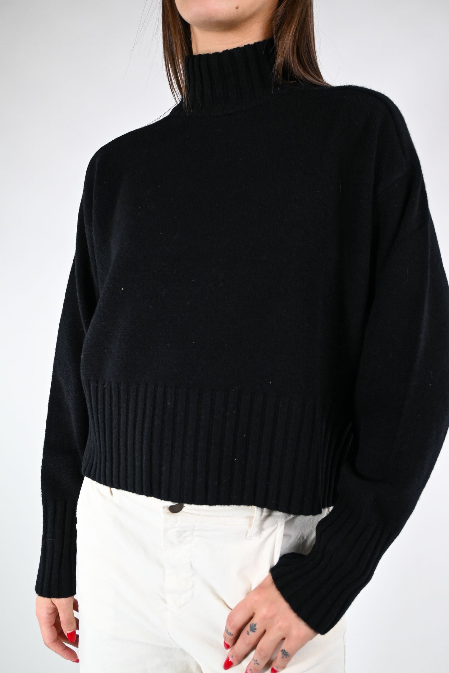 Maglia over a scatola con collo cratere, colore nero