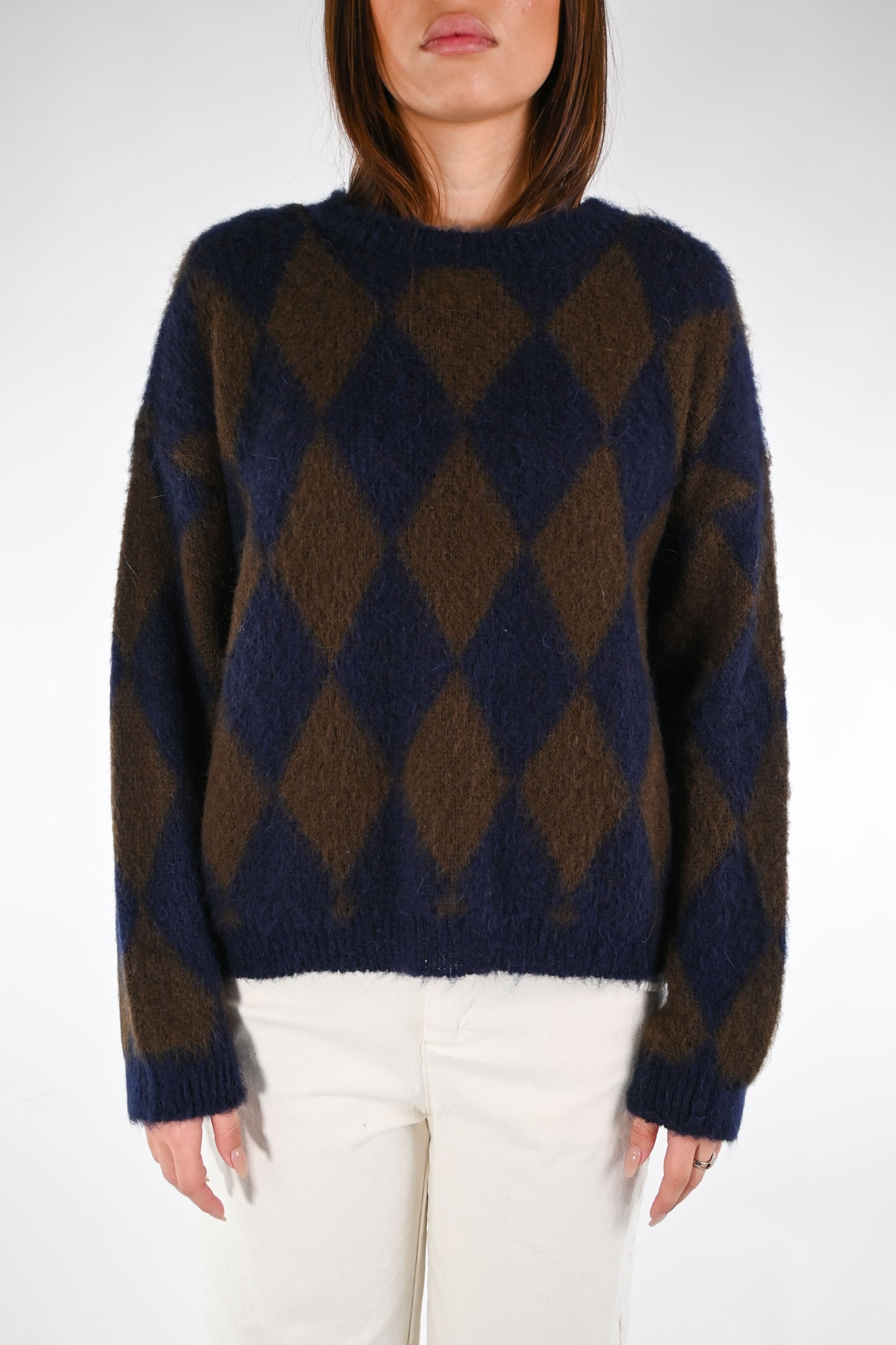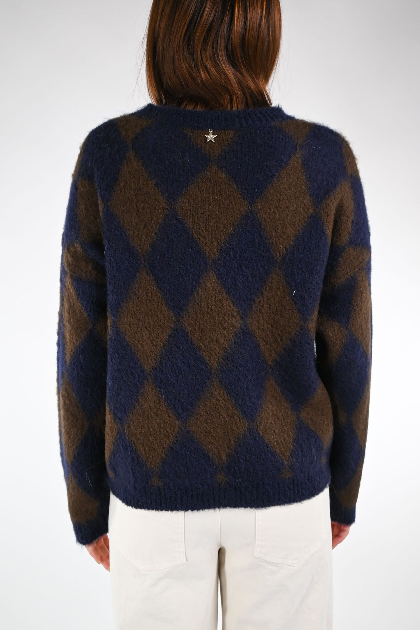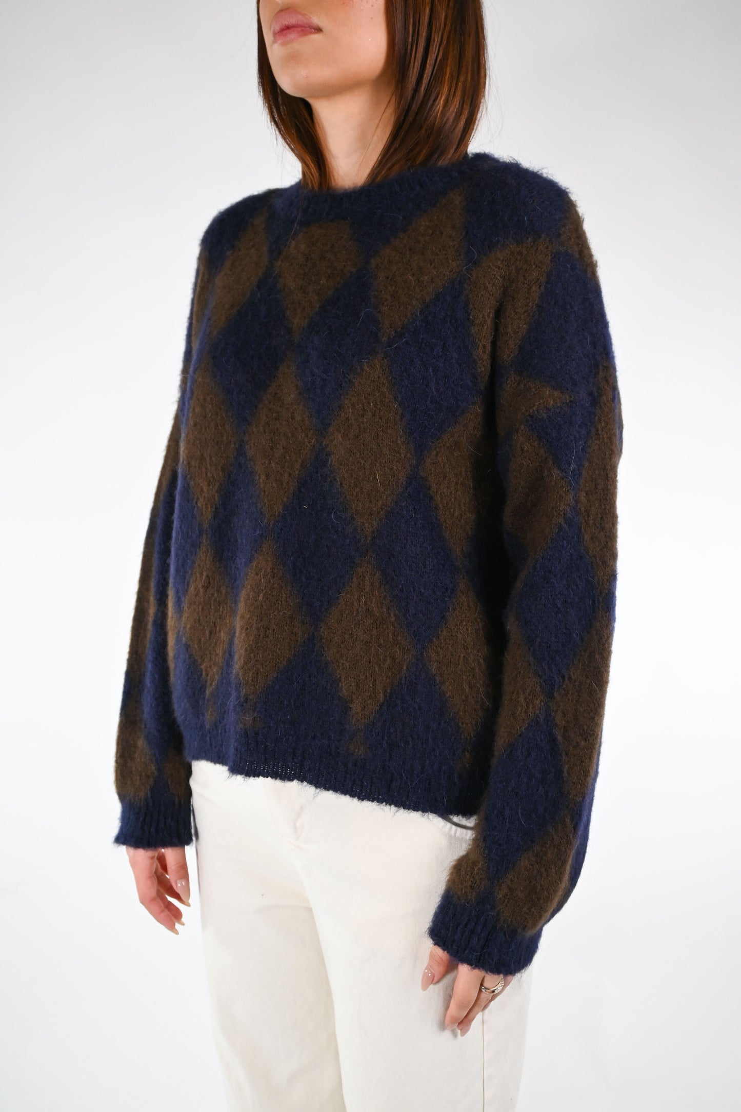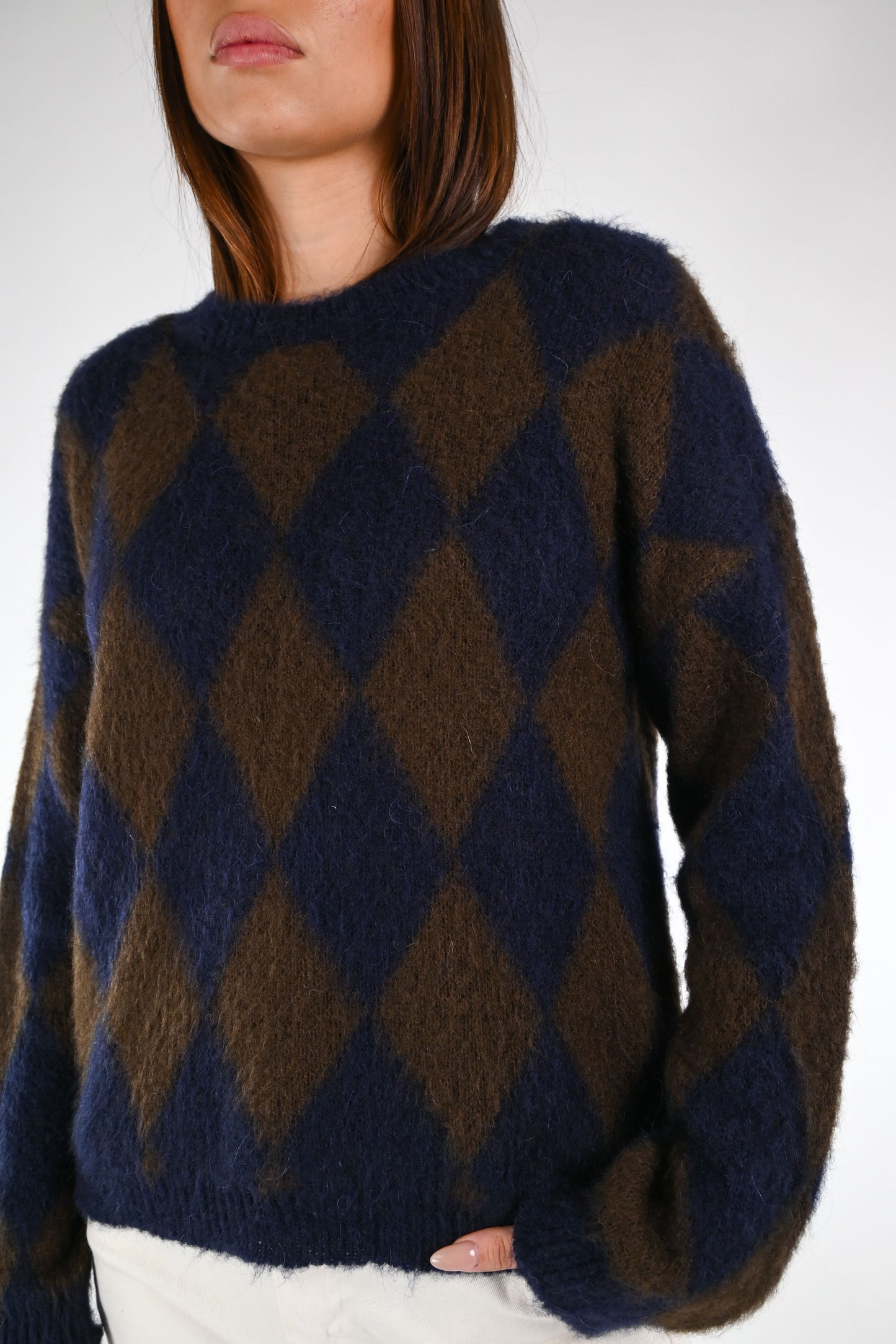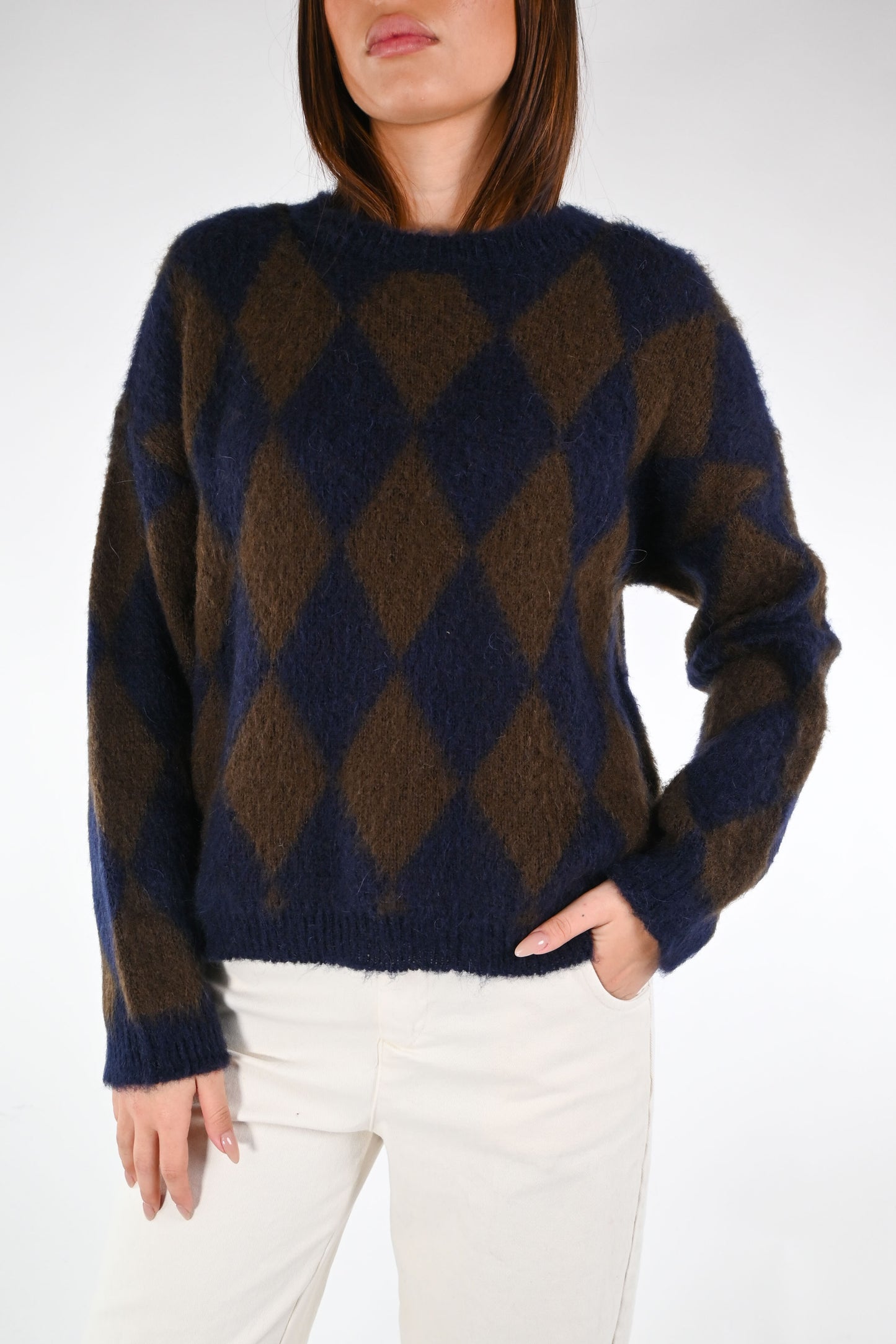 Maglia mohair a rombi, girocollo, colore blu/moro