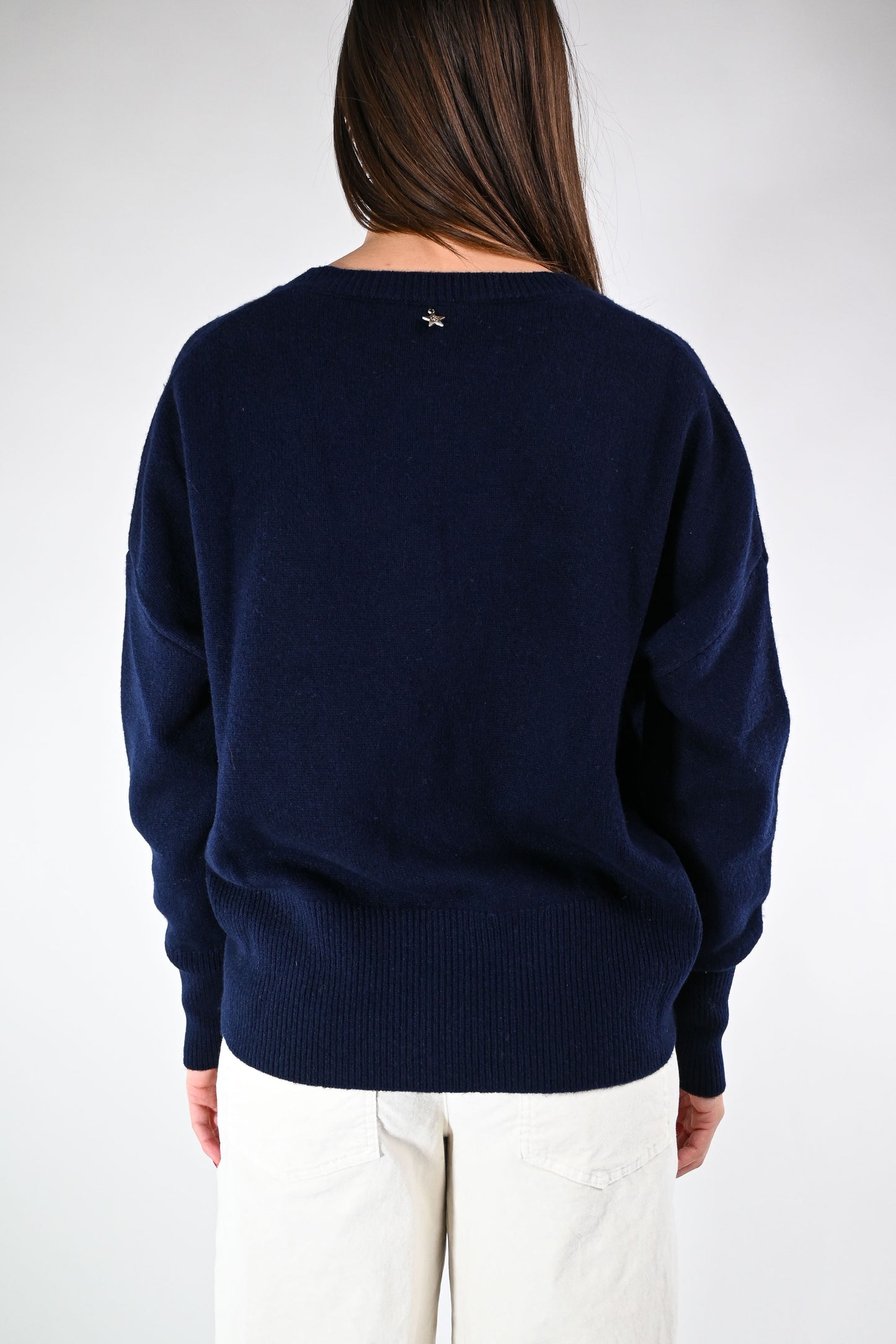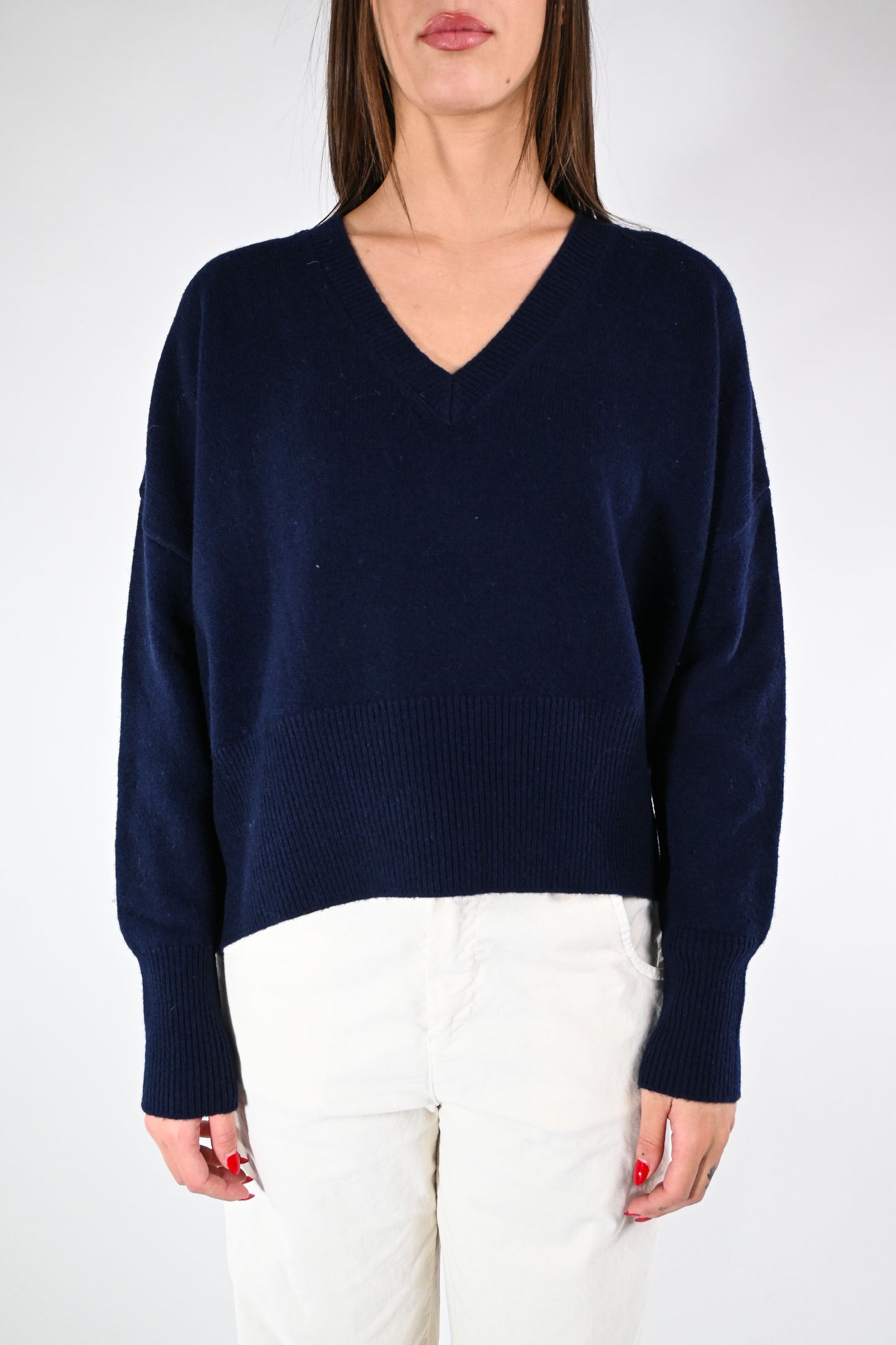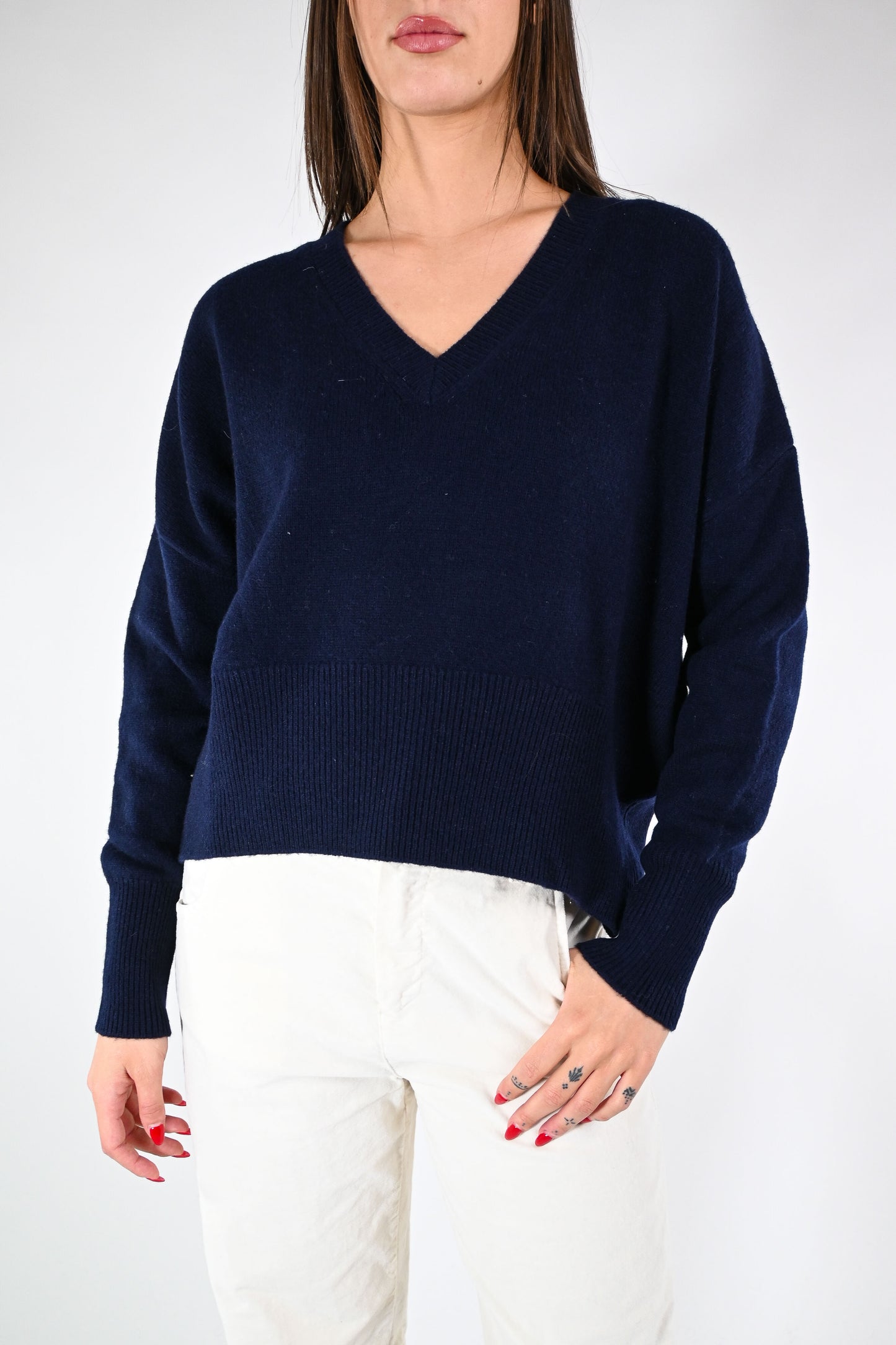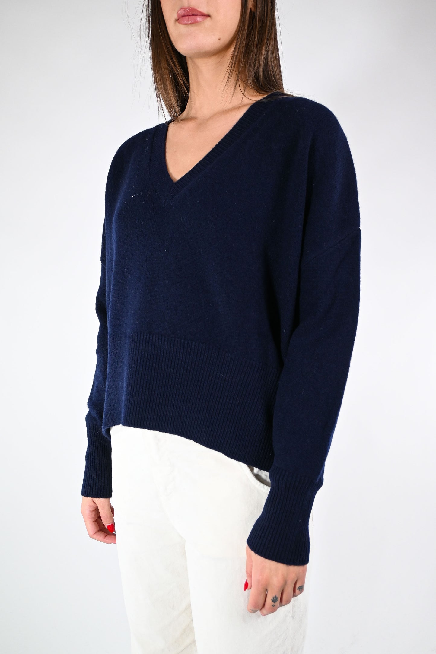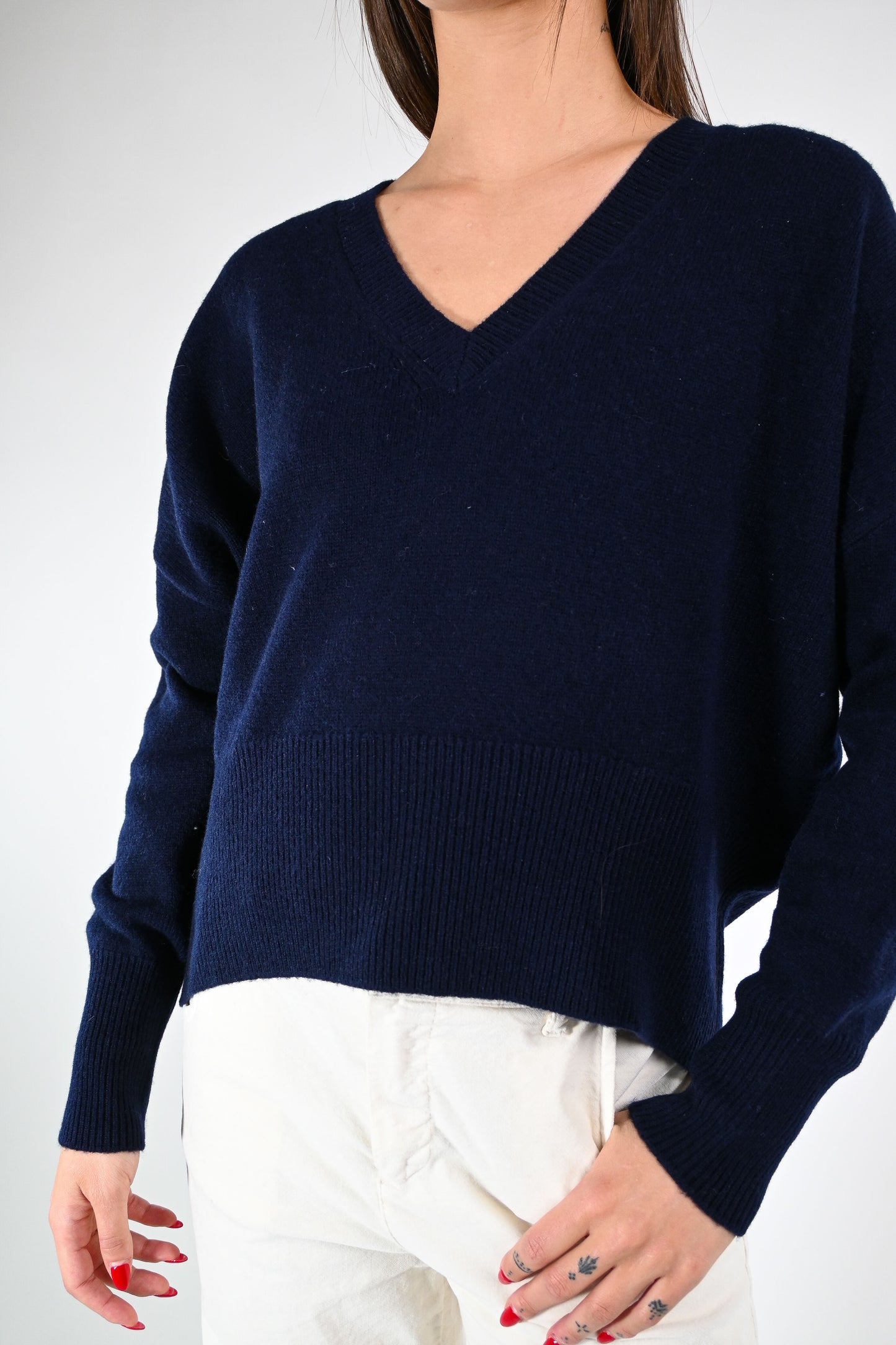 Maglia over a scatola scollo V , più corta davanti, colore blu