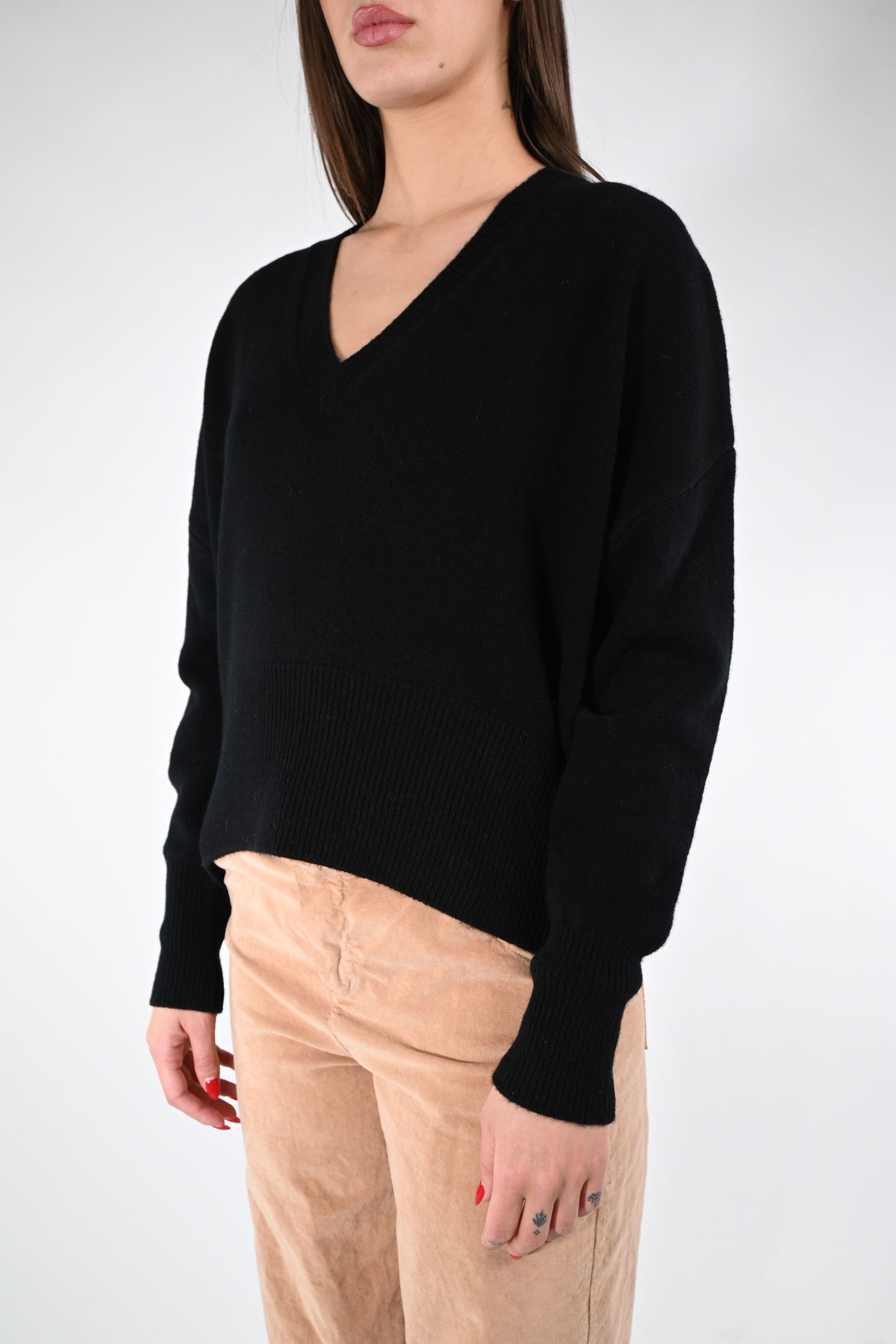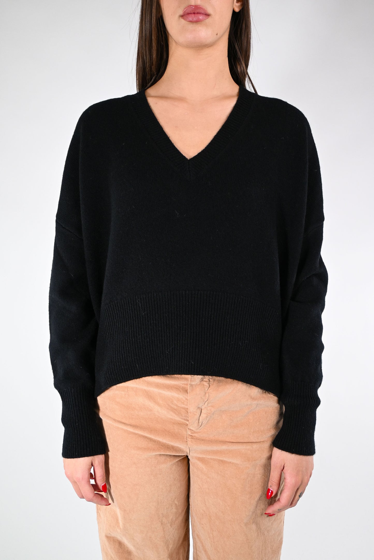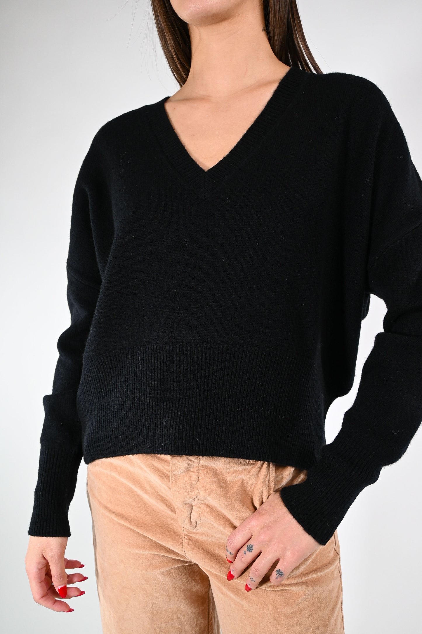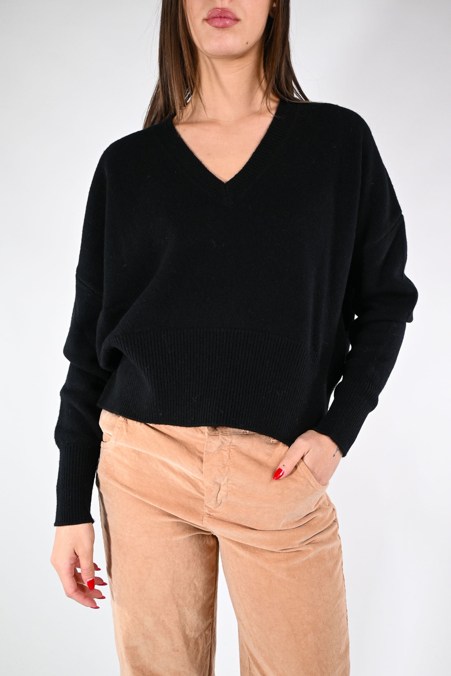 Maglia over a scatola scollo V , più corta davanti, colore nero