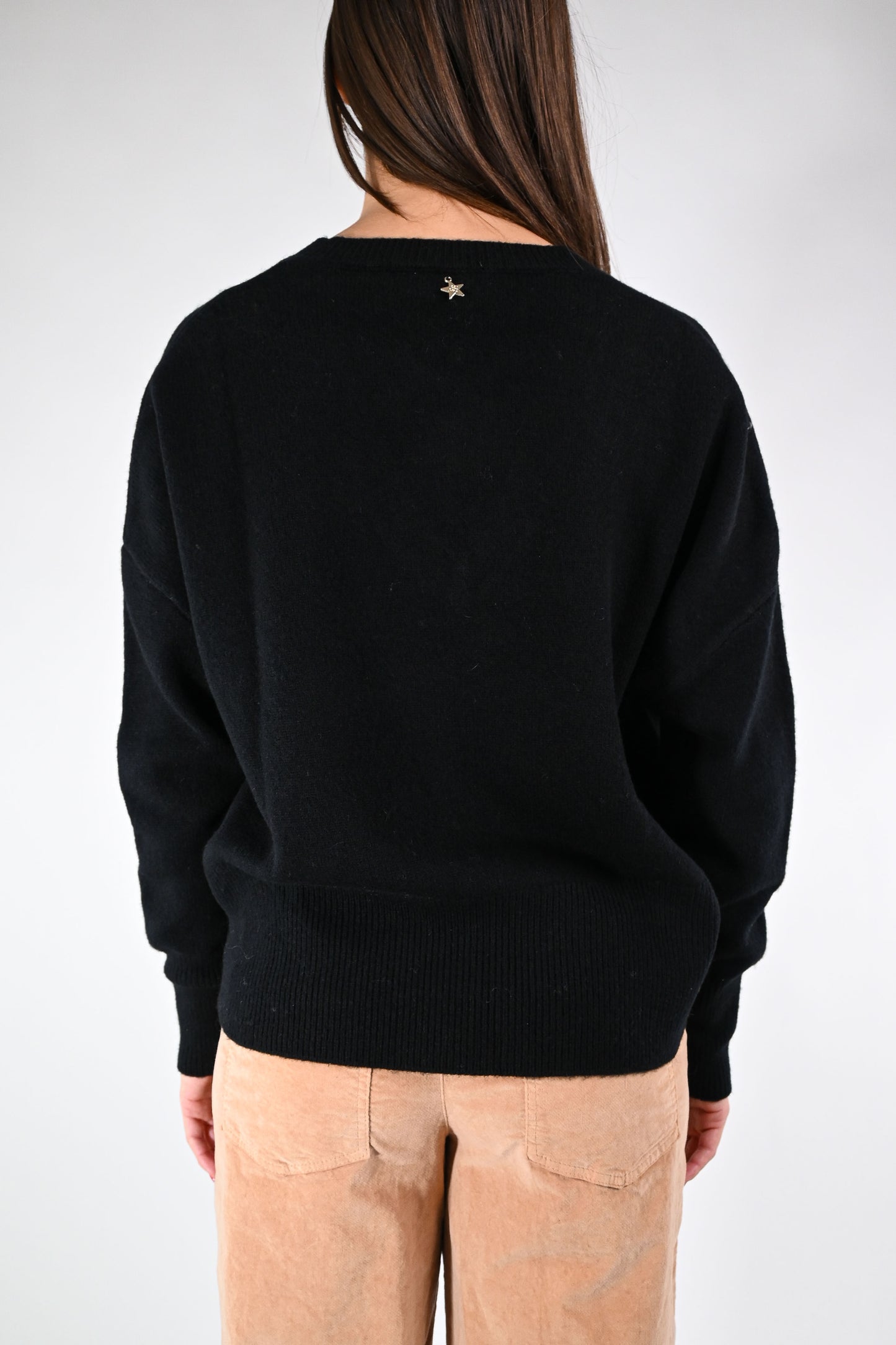 SOUVENIR - MAGLIA OVER 100% LANA SCOLLO V ART.B38D1449 - NERO