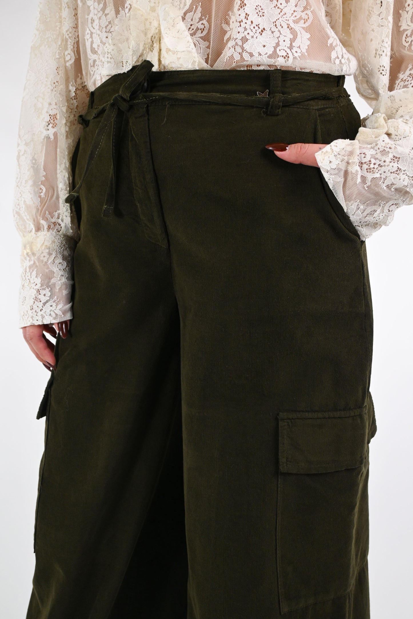 SOUVENIR - PANTALONE CARGO VELLUTO ART.G38P0909 - VERDE