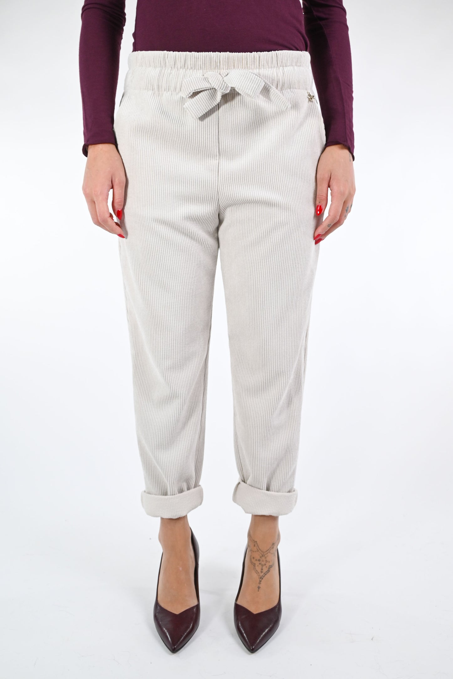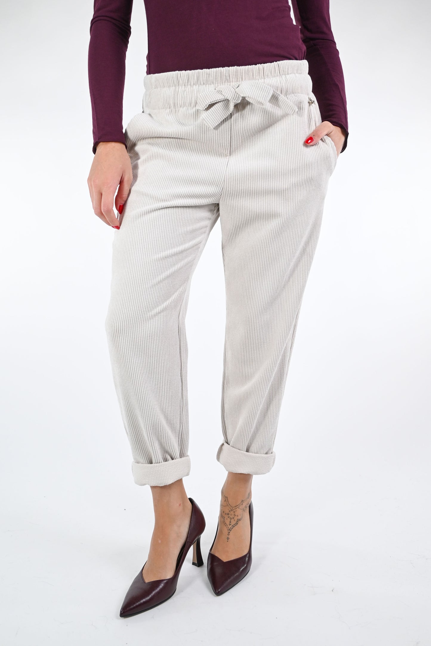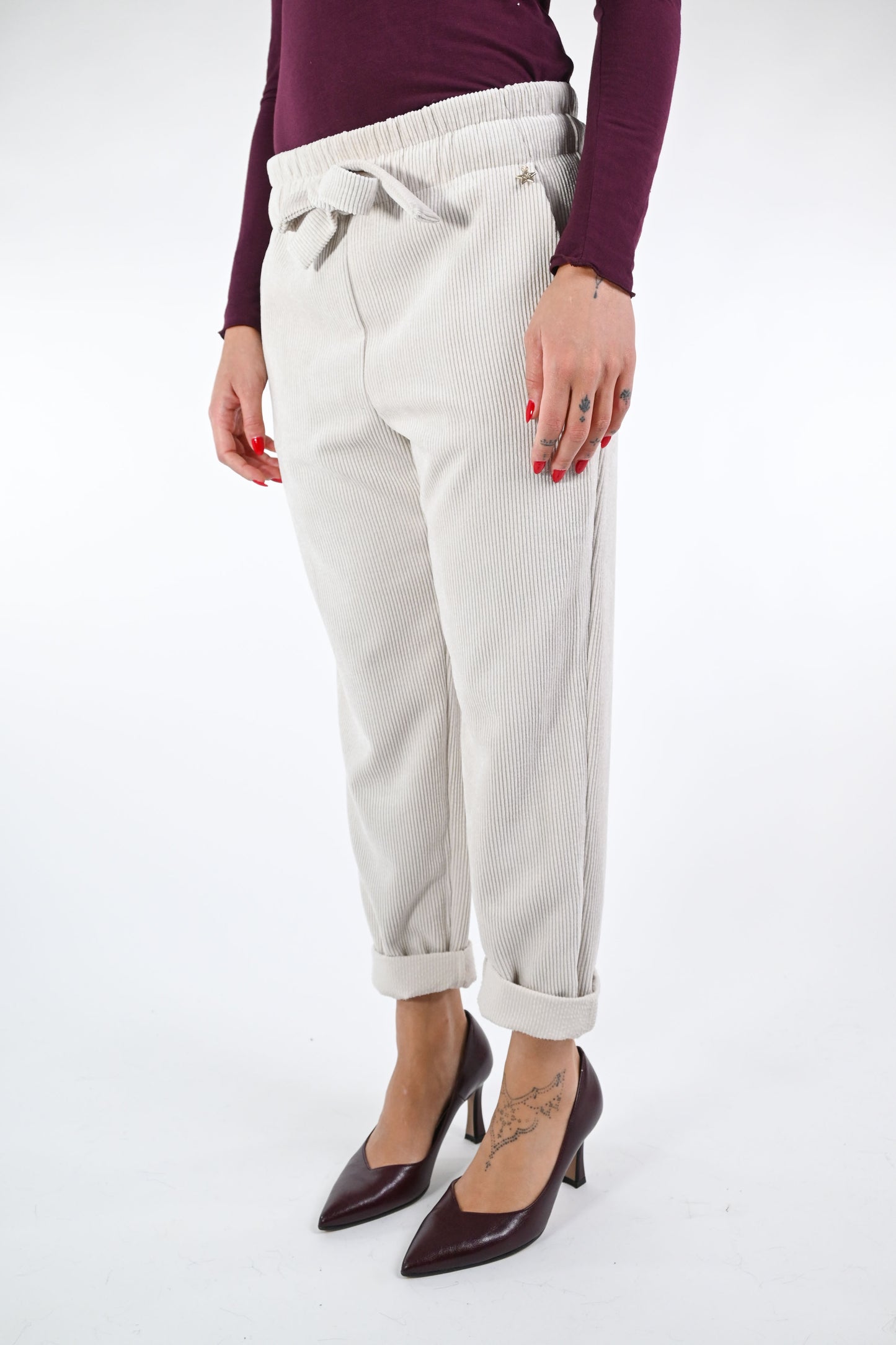 SOUVENIR - PANTALONE COULISSE VELLUTO A COSTE ART.M38F1360 - PANNA