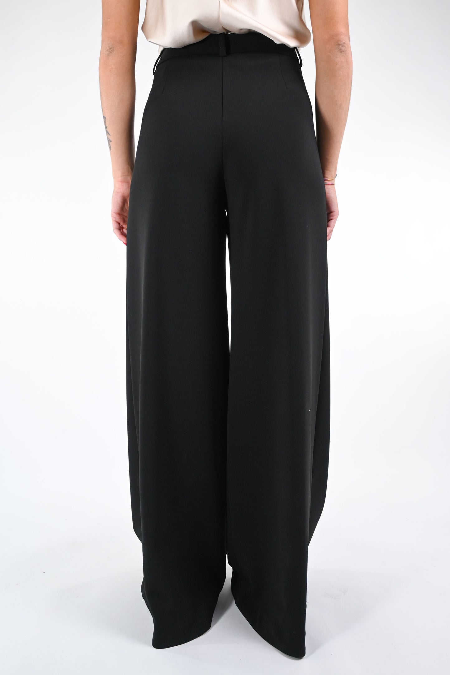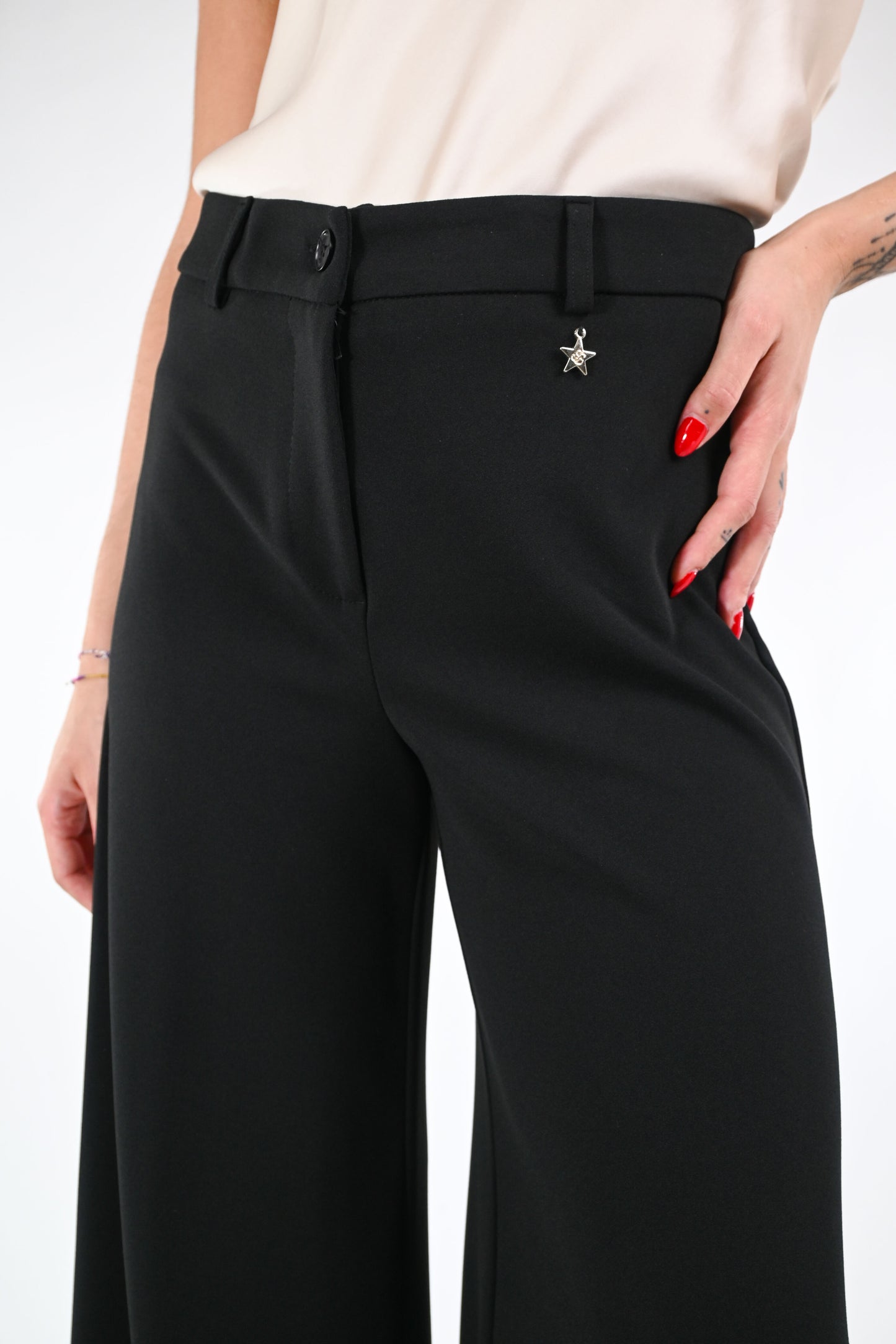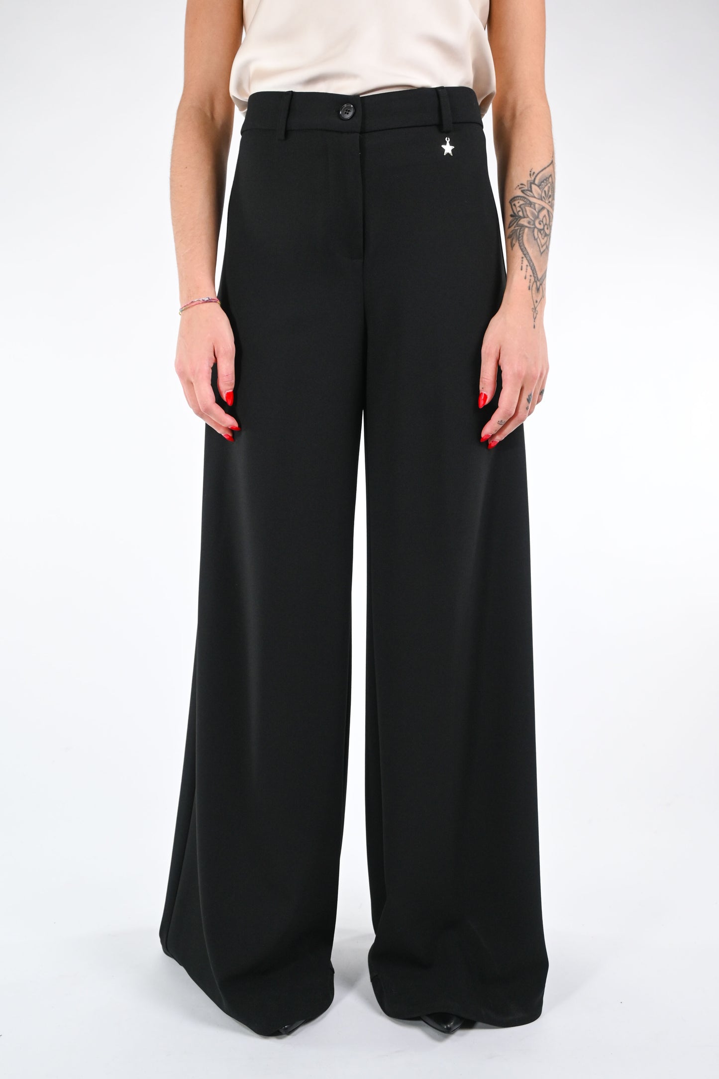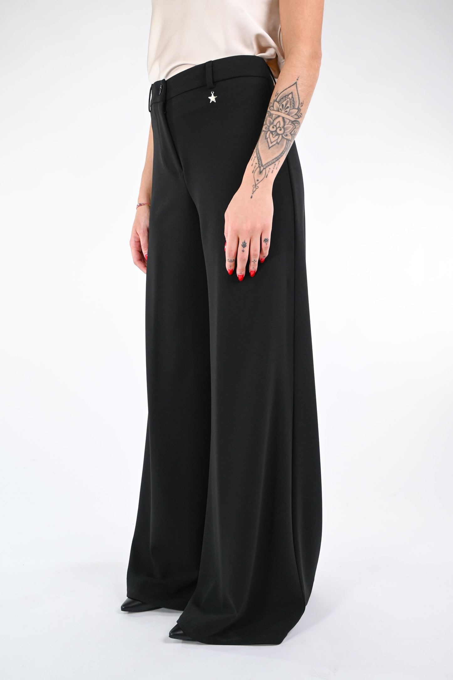 Pantalone palazzo in crepes fluido, elasticizzato, color nero