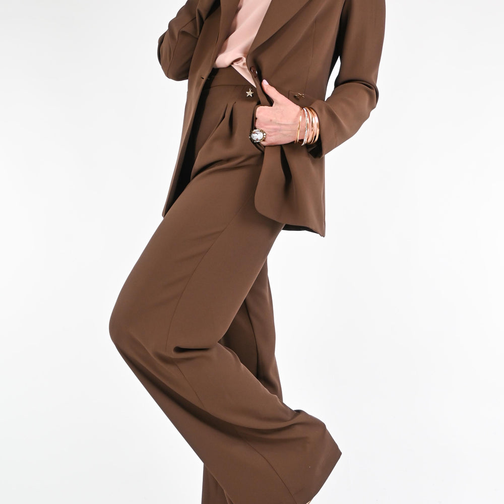SOUVENIR - PANTALONE PALAZZO FLUIDO IN CADY ART.W37S0141 - MORO