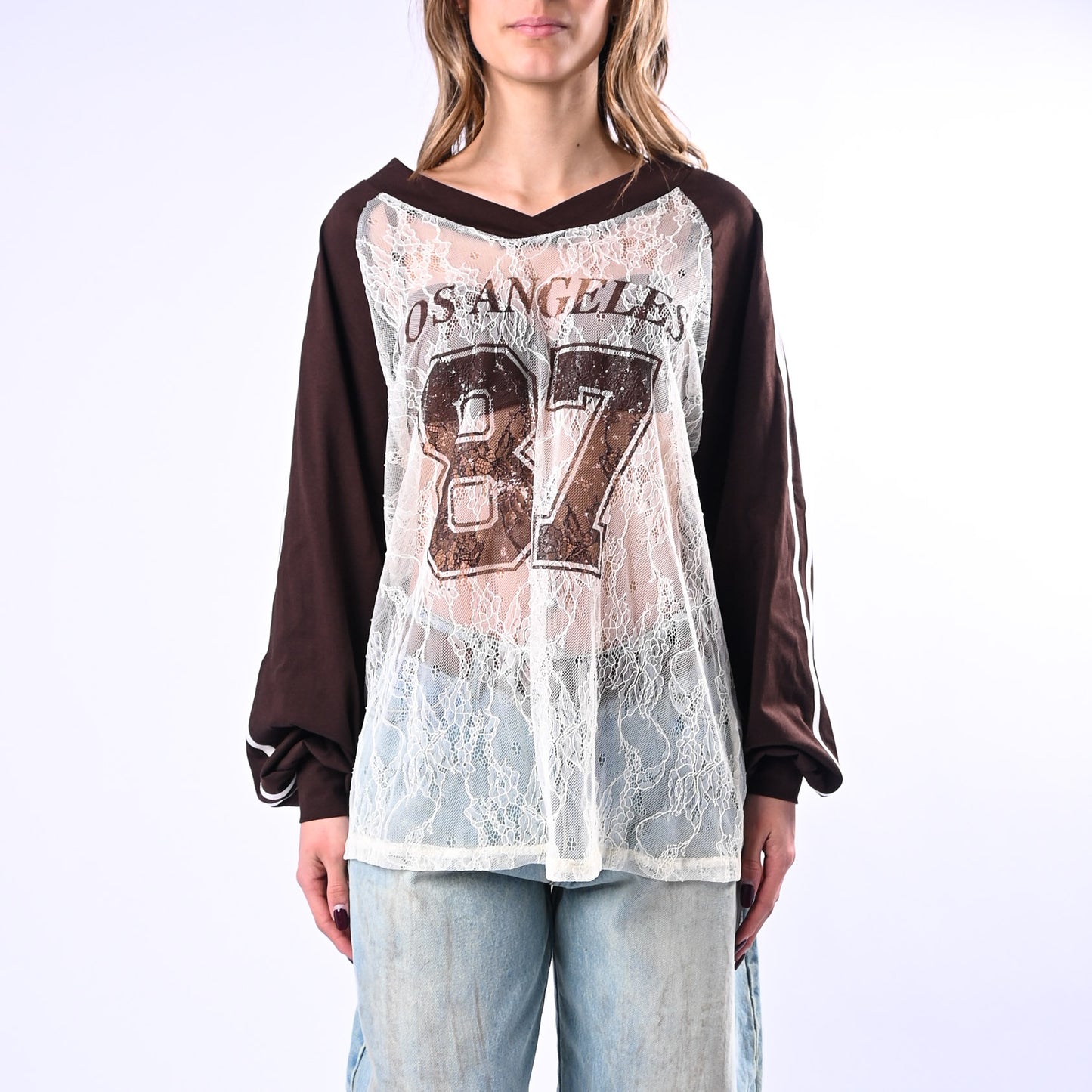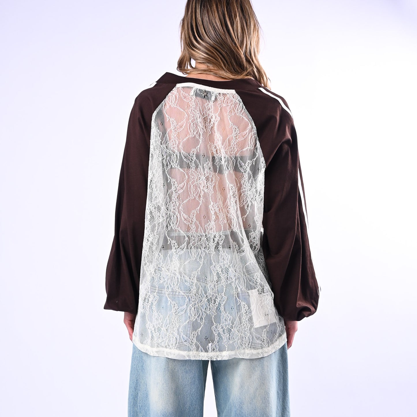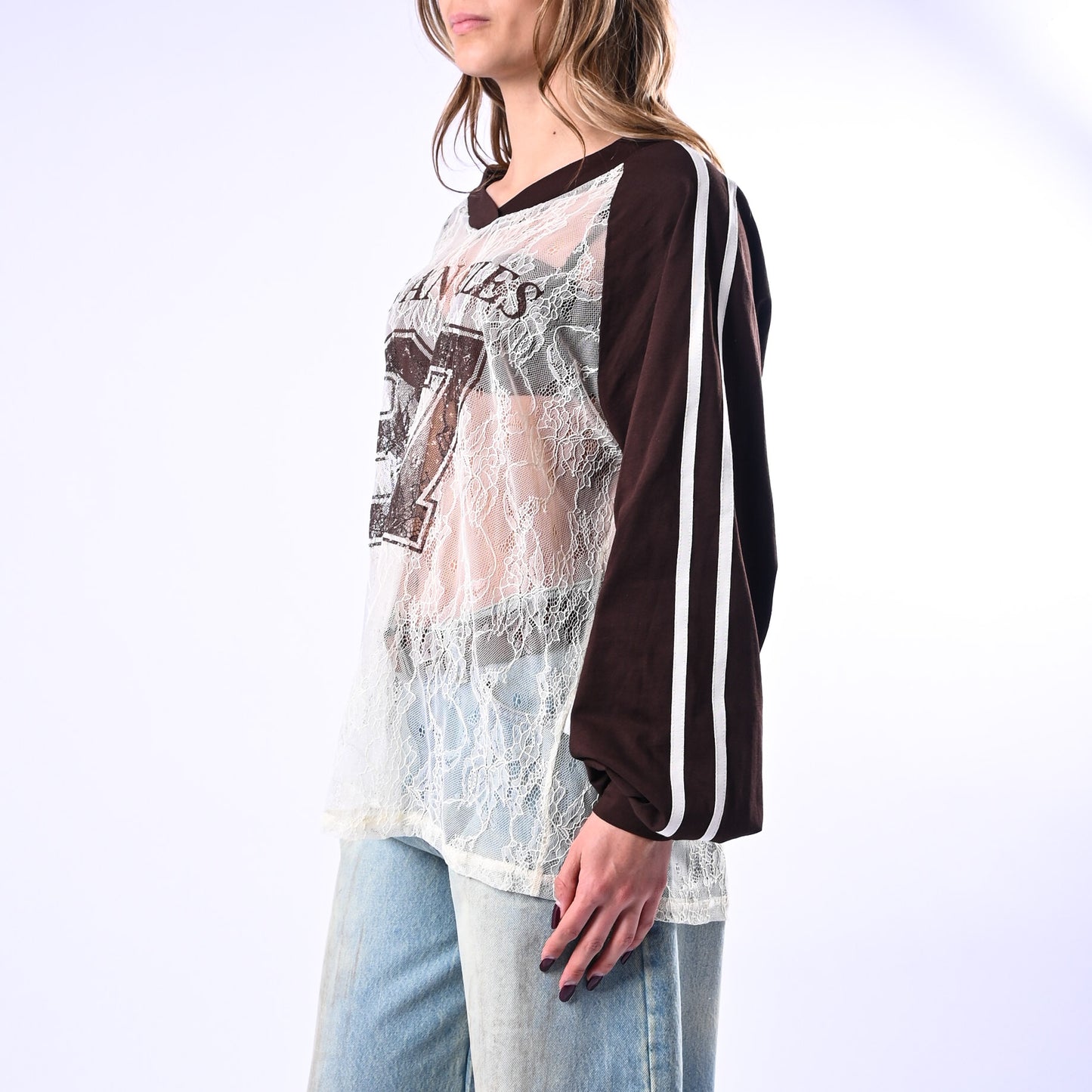 SOUVENIR - T-SHIRT BASKET SCOLLO V CON PIZZO ART.S39M0932 - MORO