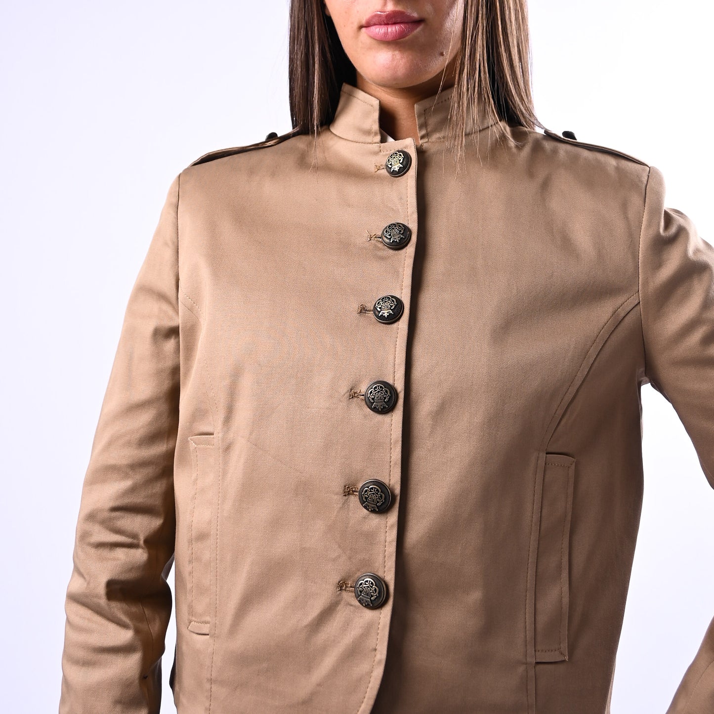 TENSIONE IN - GIACCA COREANA BOTTONI OTTONE ART.26B3797 - COLONIALE