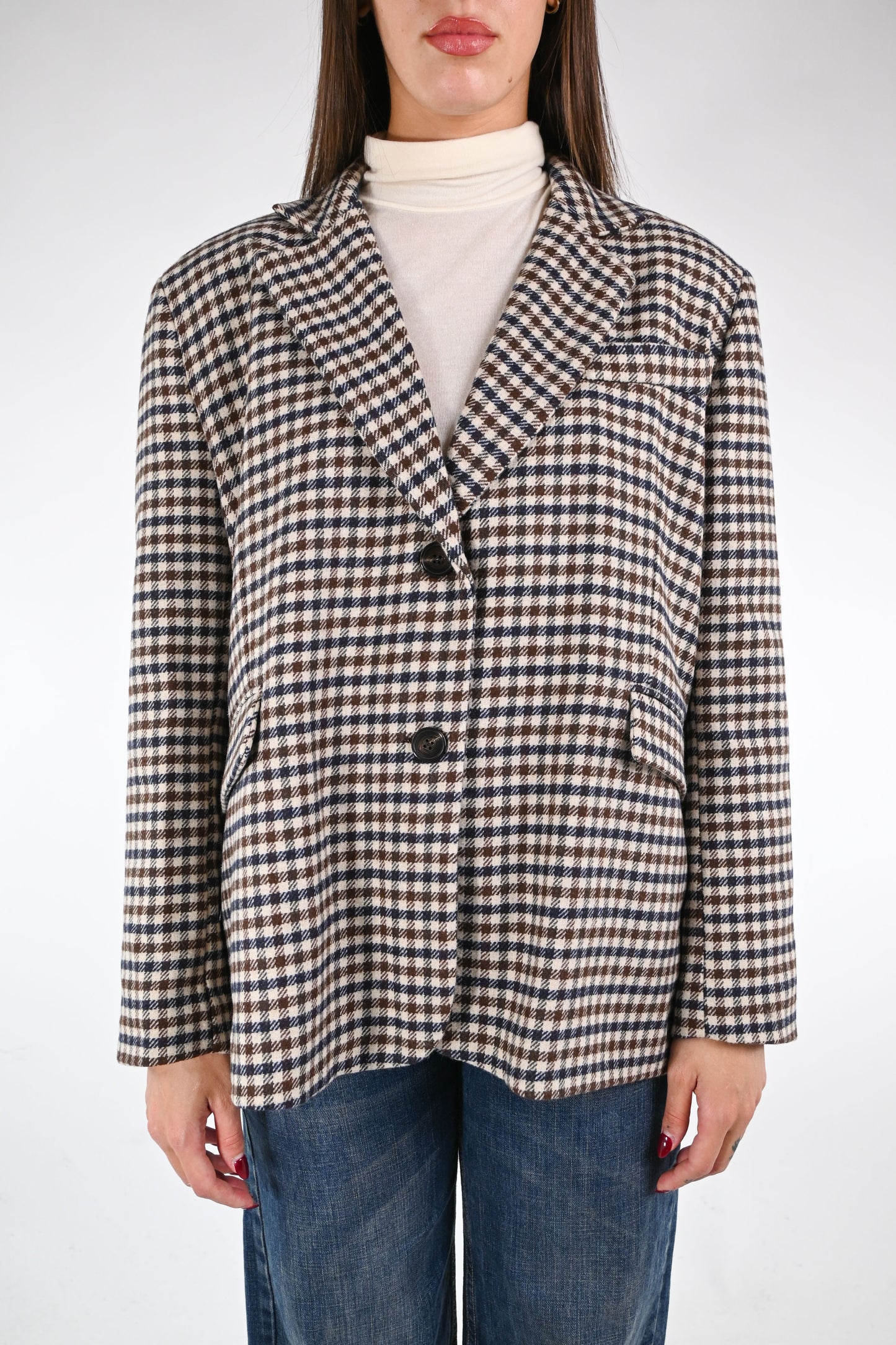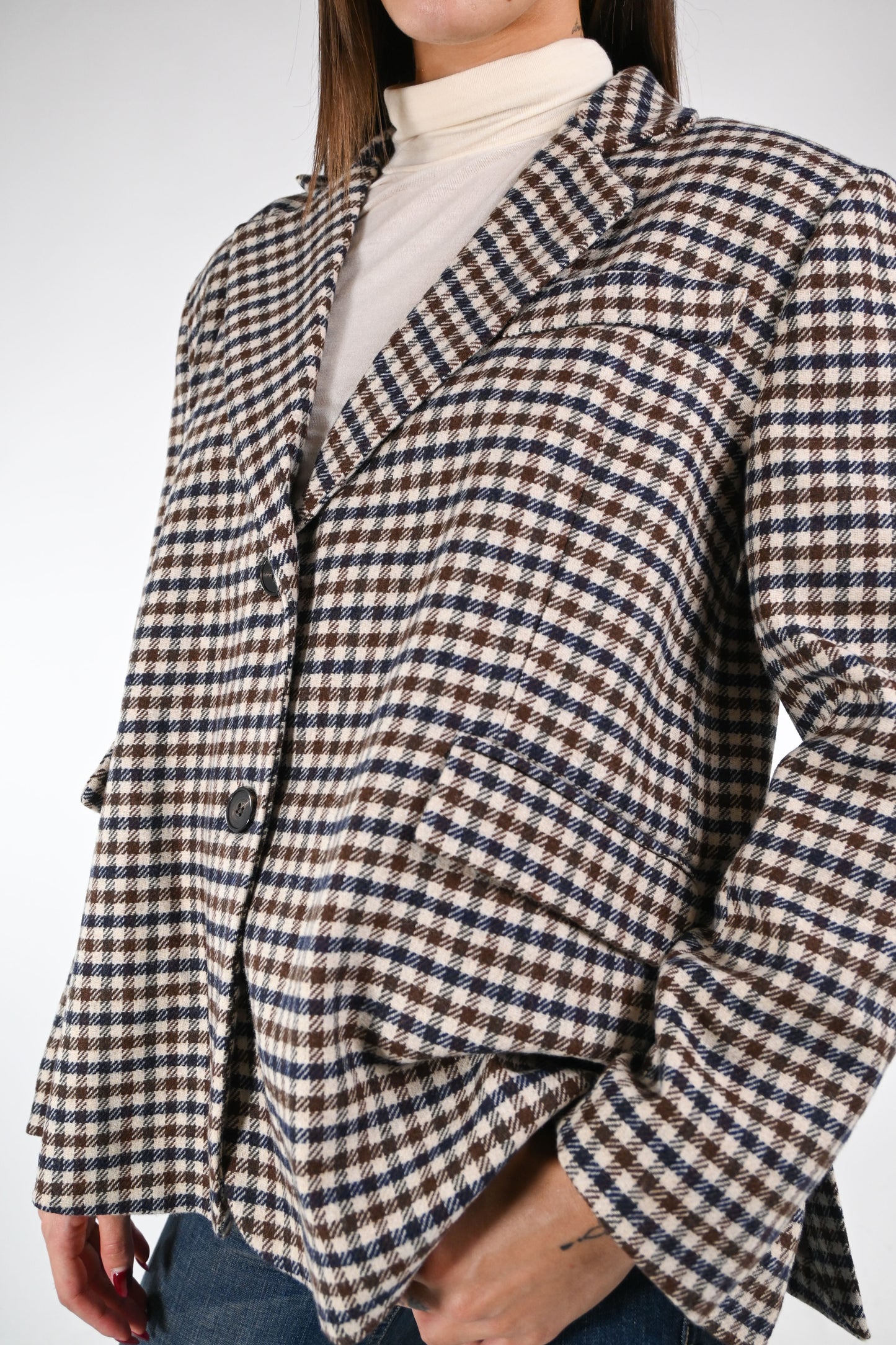 TENSIONE IN - GIACCA OVER A QUADRETTI ART.26B1415 - BLU/MORO