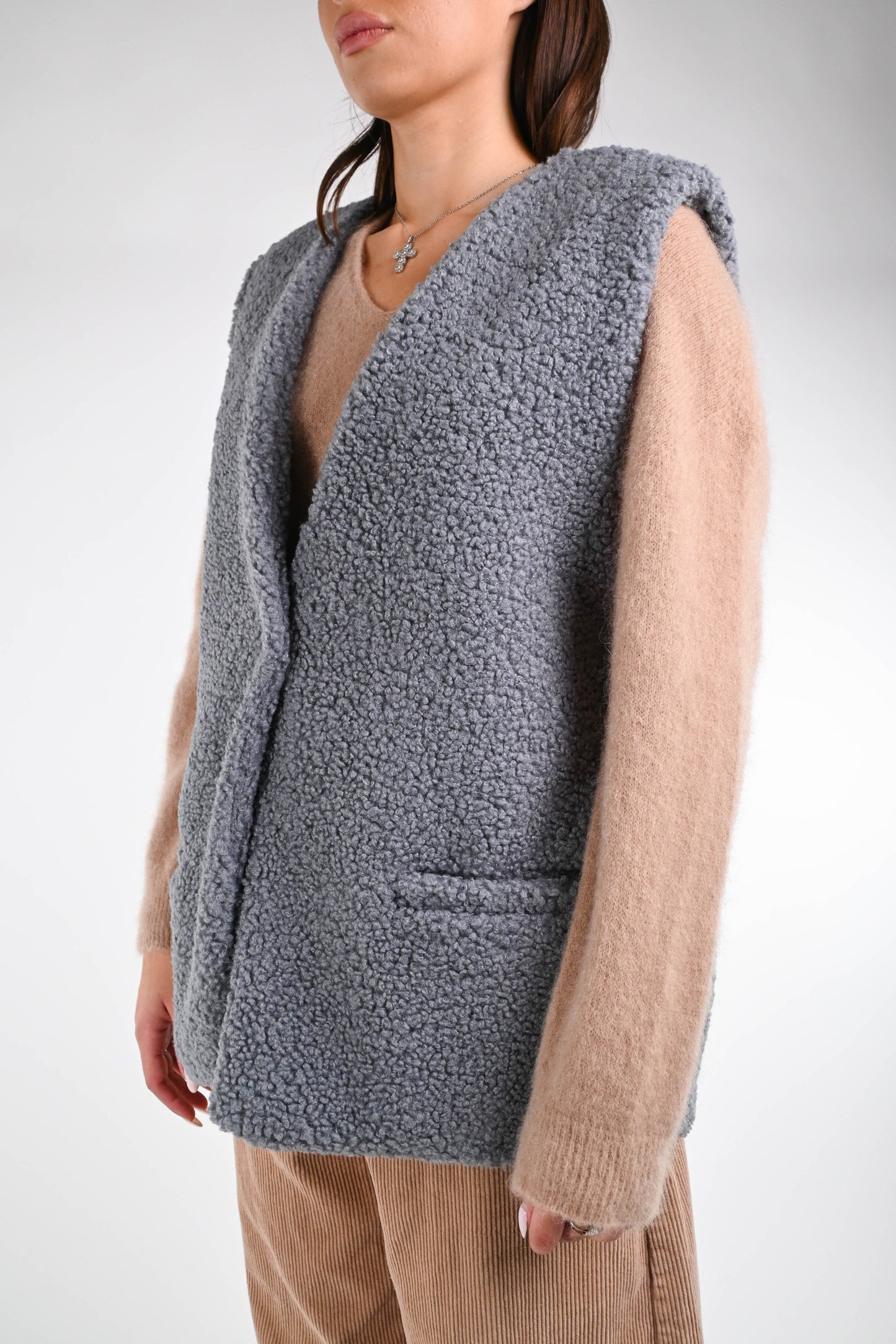 TENSIONE IN - GILET TEDDY OVER ART.26D900 - GRIGIO