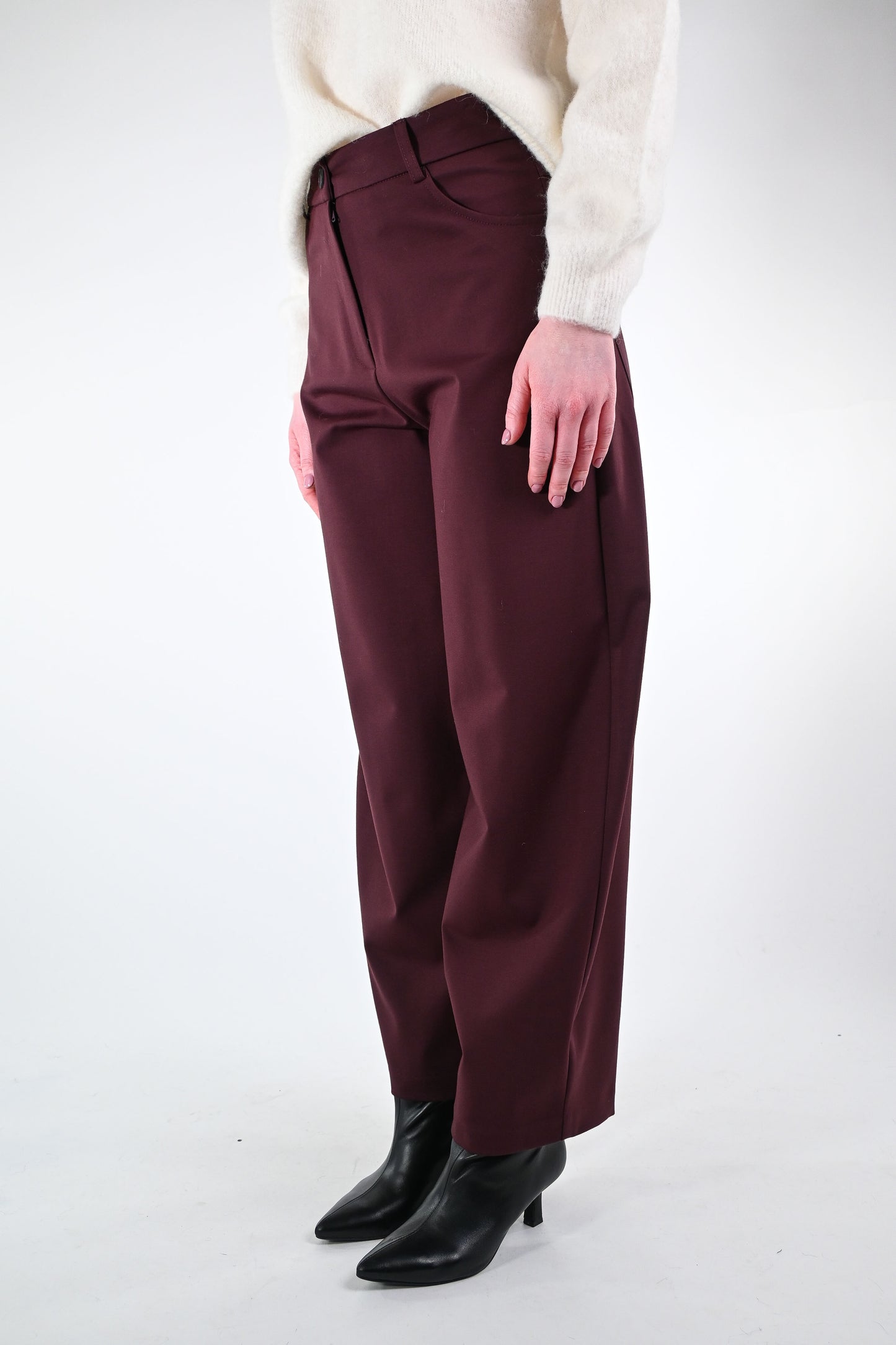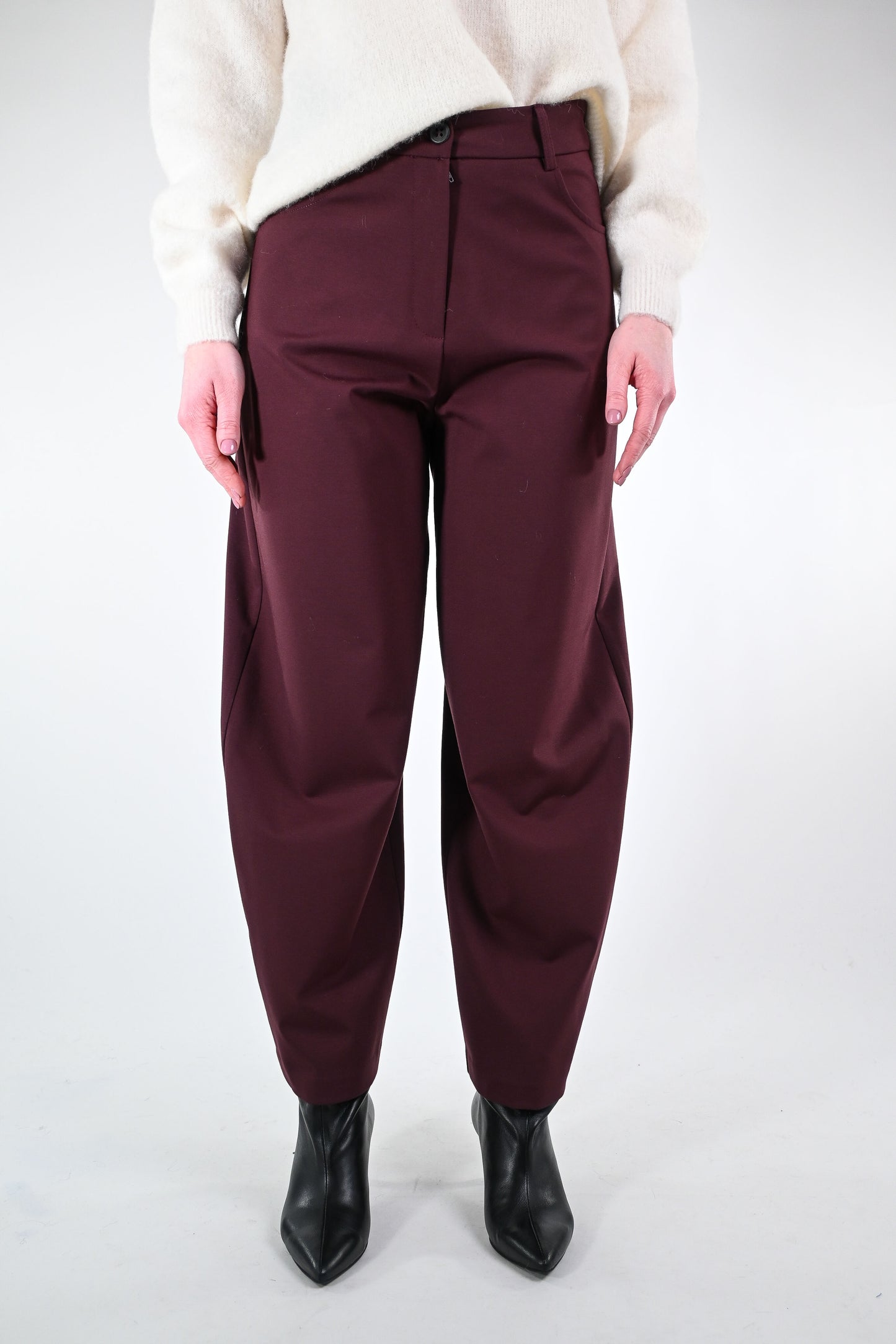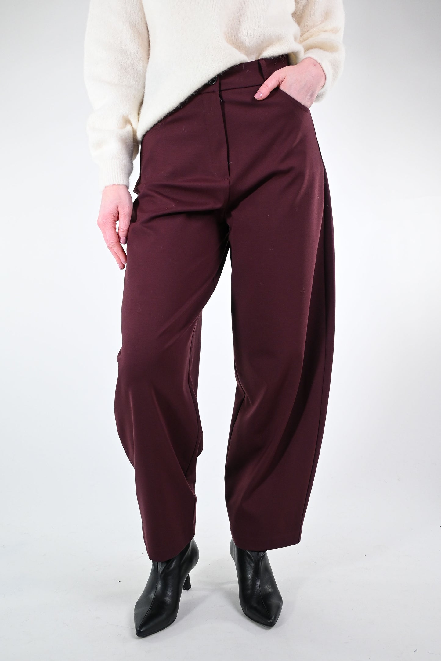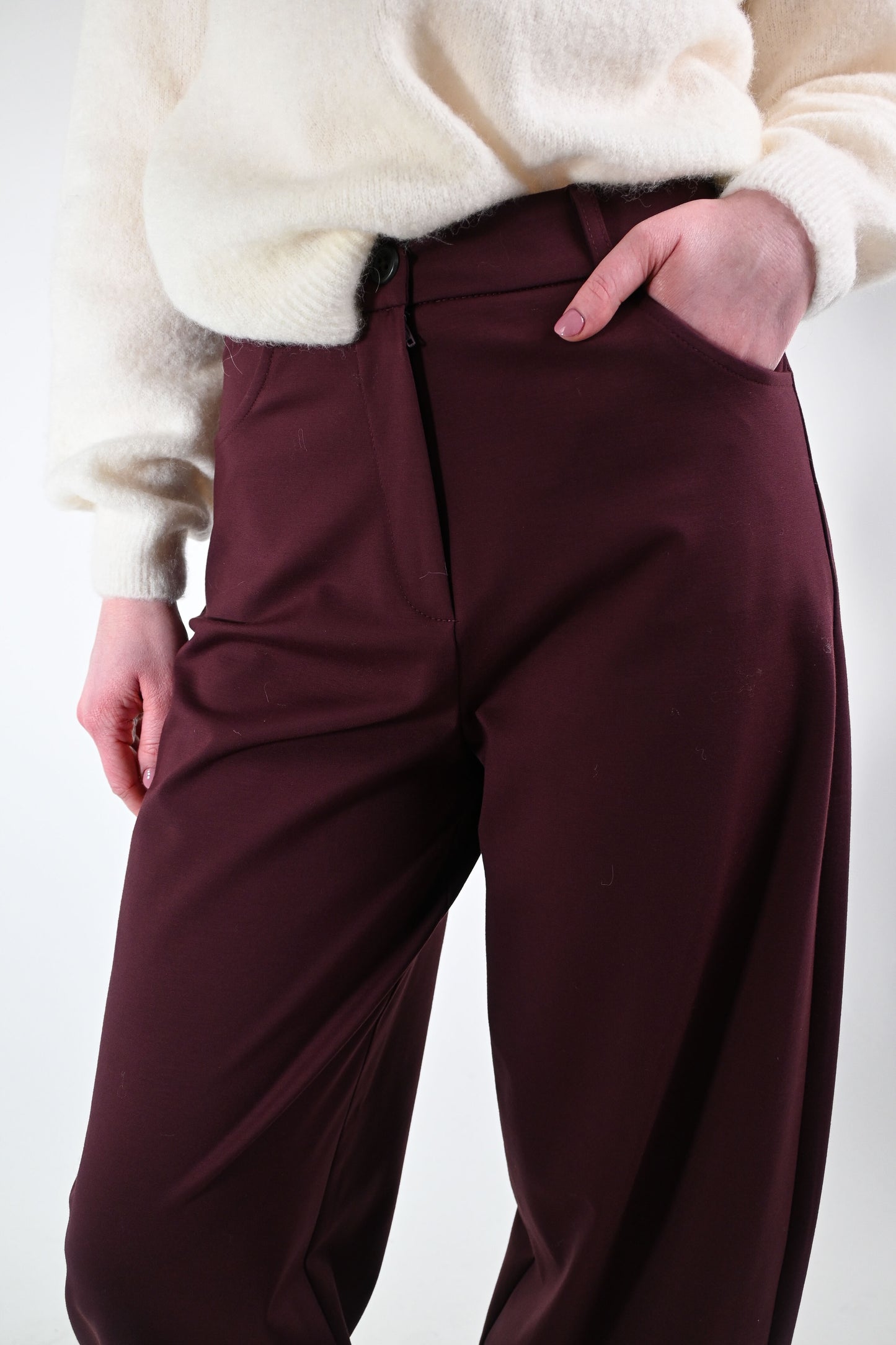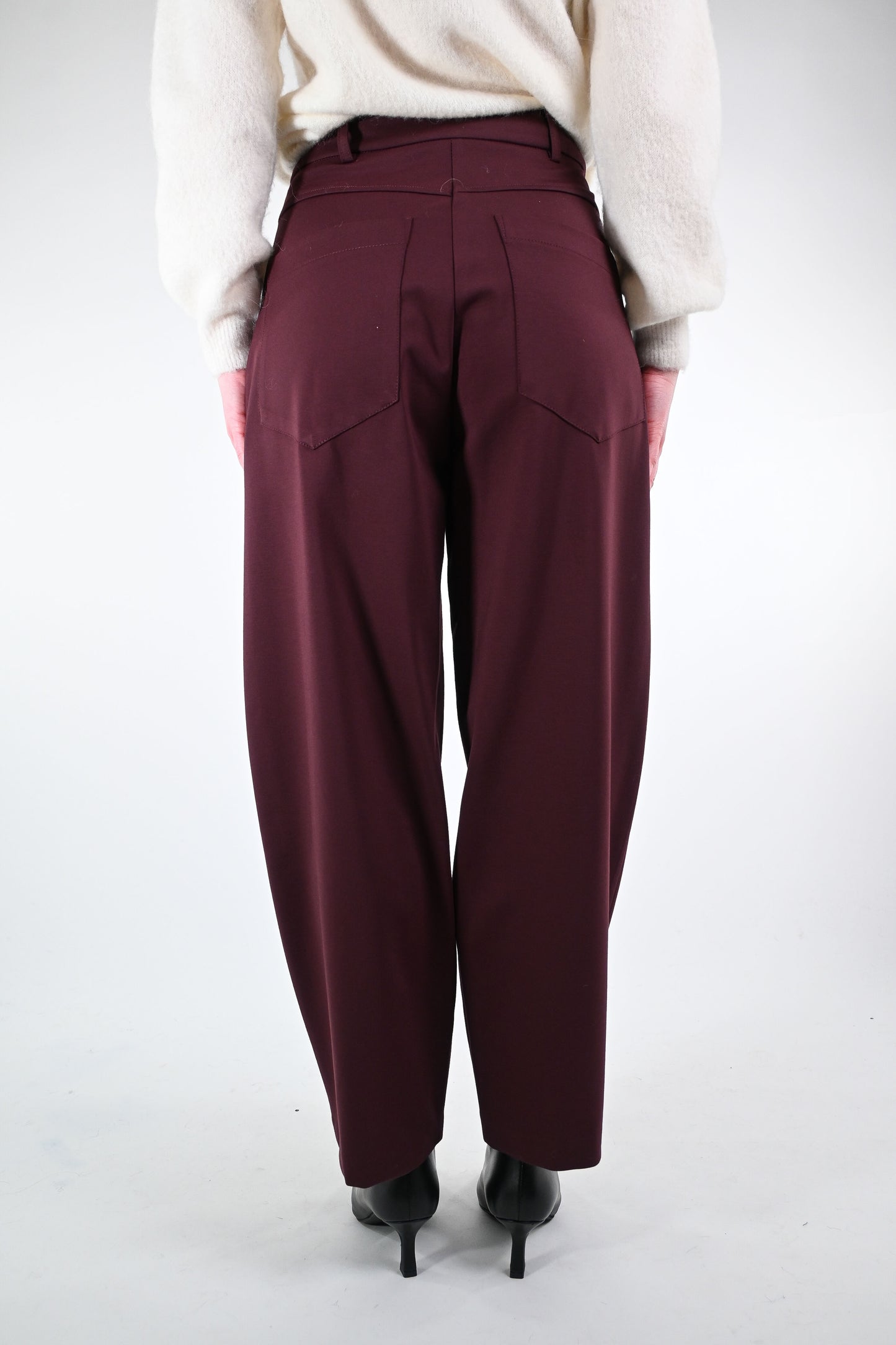 Prezzo normale €33,00Pantalone balloon in punto milano, con tasca grande dietro, colore vino
