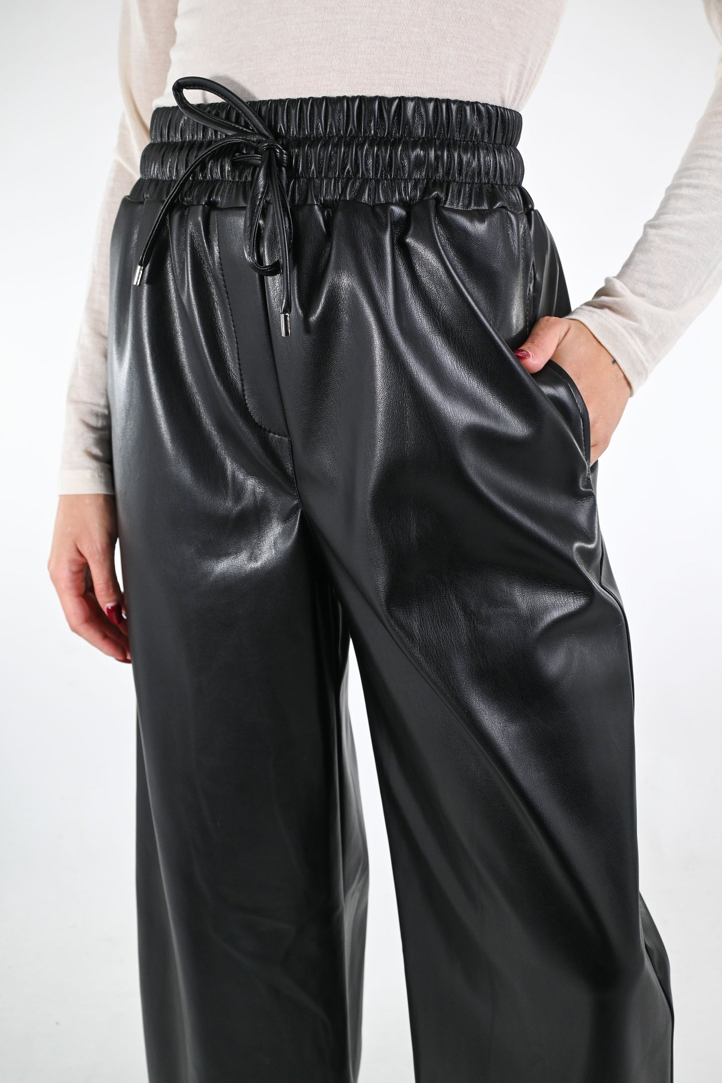 TENSIONE IN - PANTALONE PALAZZO ECOPELLE ART.26P1429 - NERO
