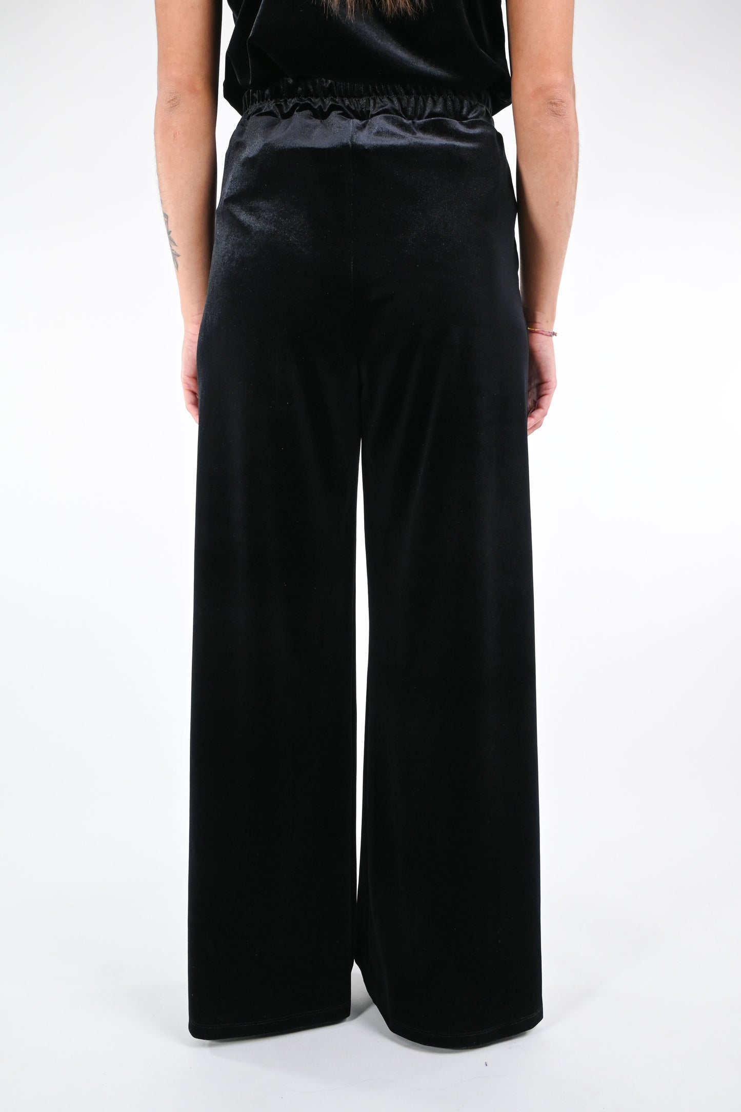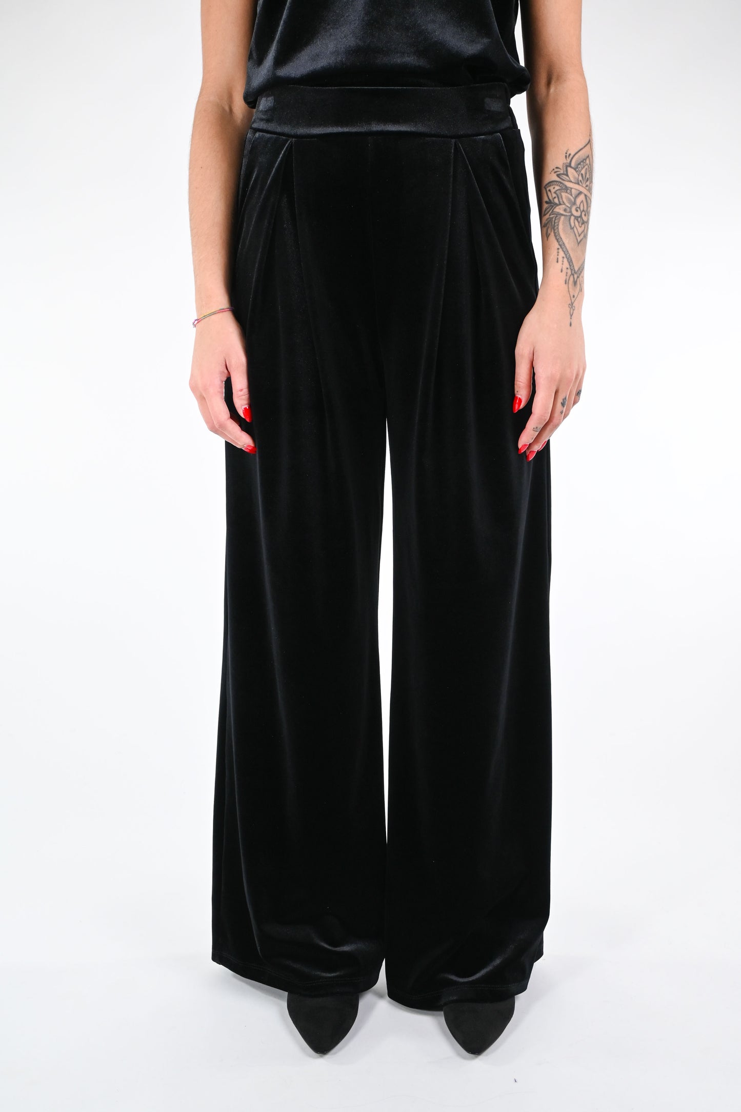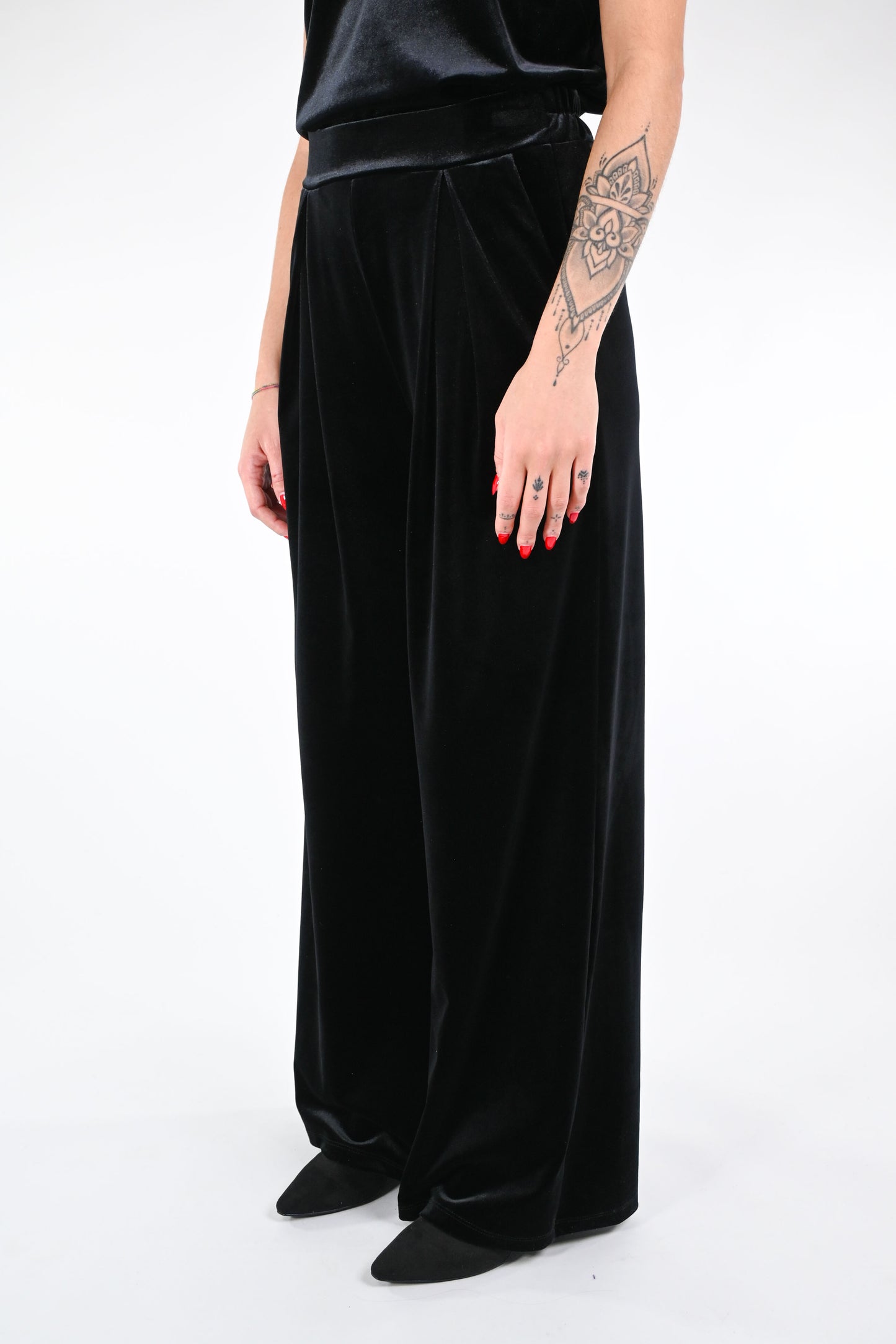 TENSIONE IN - PANTALONE PALAZZO VELLUTO LISCIO ART.50ATAI - NERO
