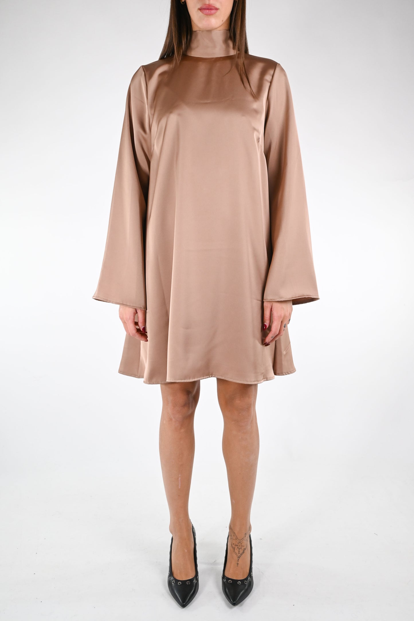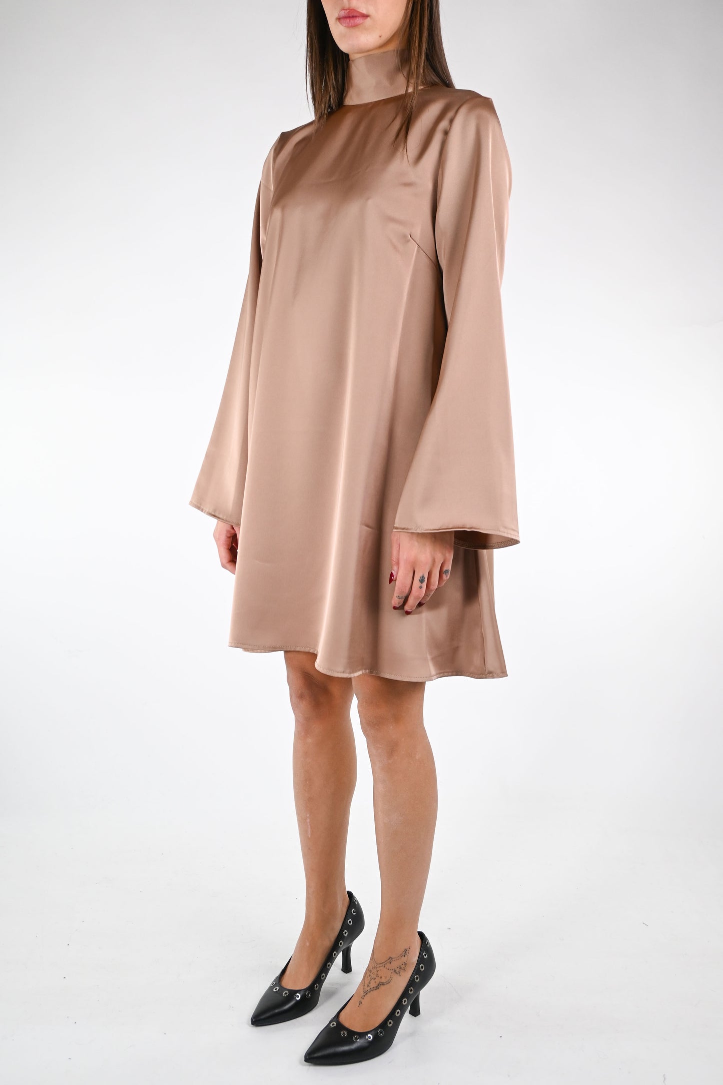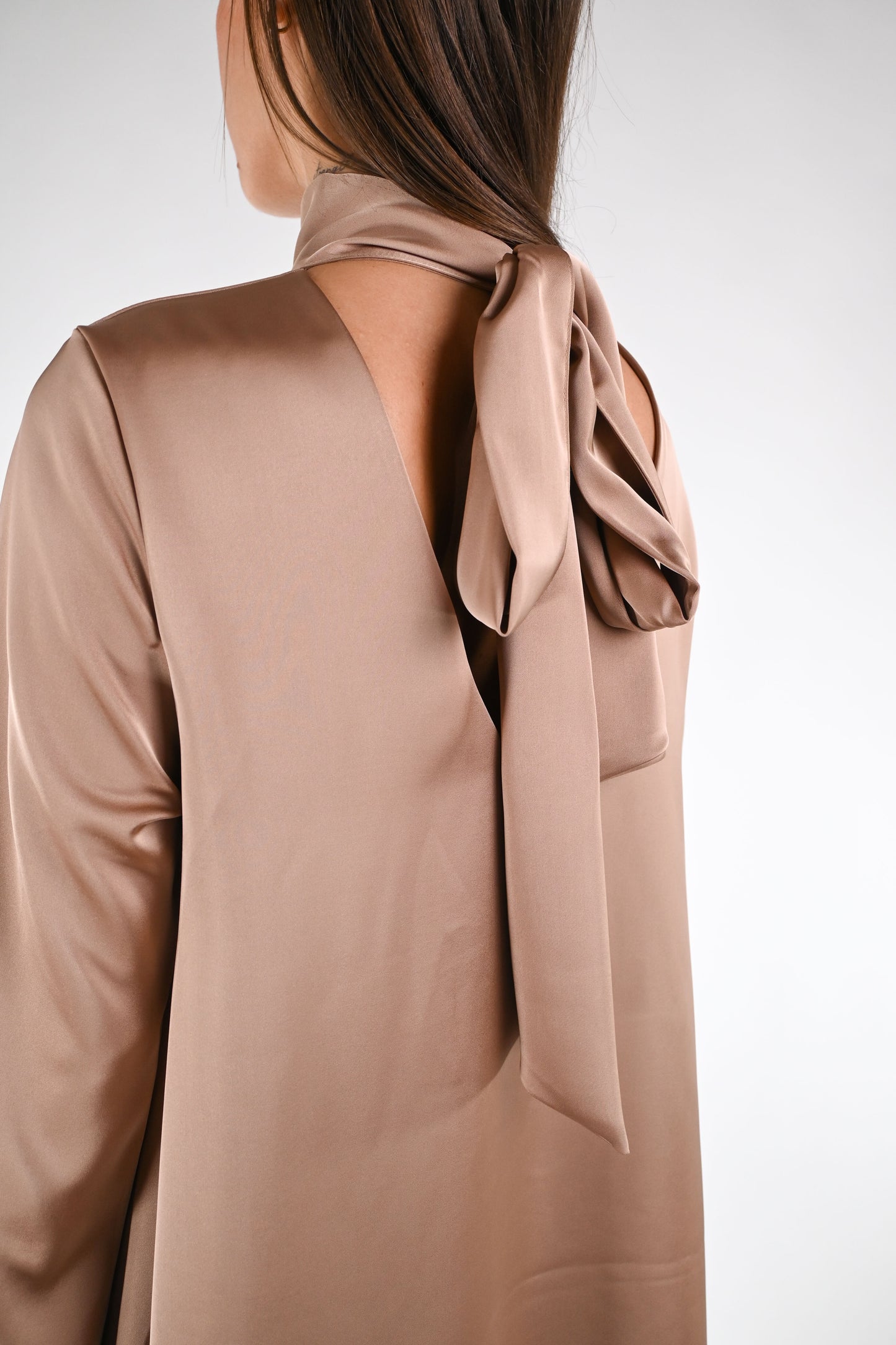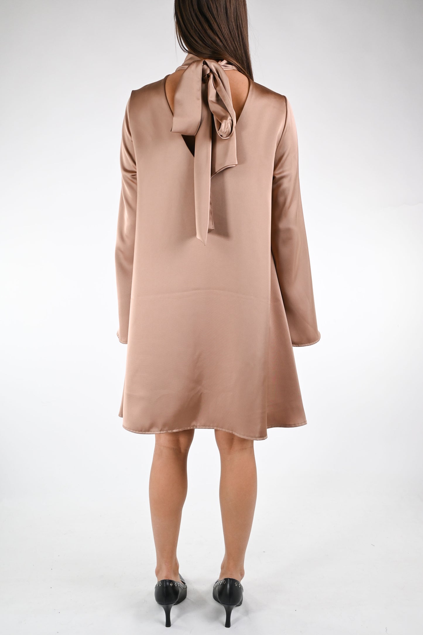 Abito svasato con fiocco e scollo a V dietro, manica larga, colore Skin.
