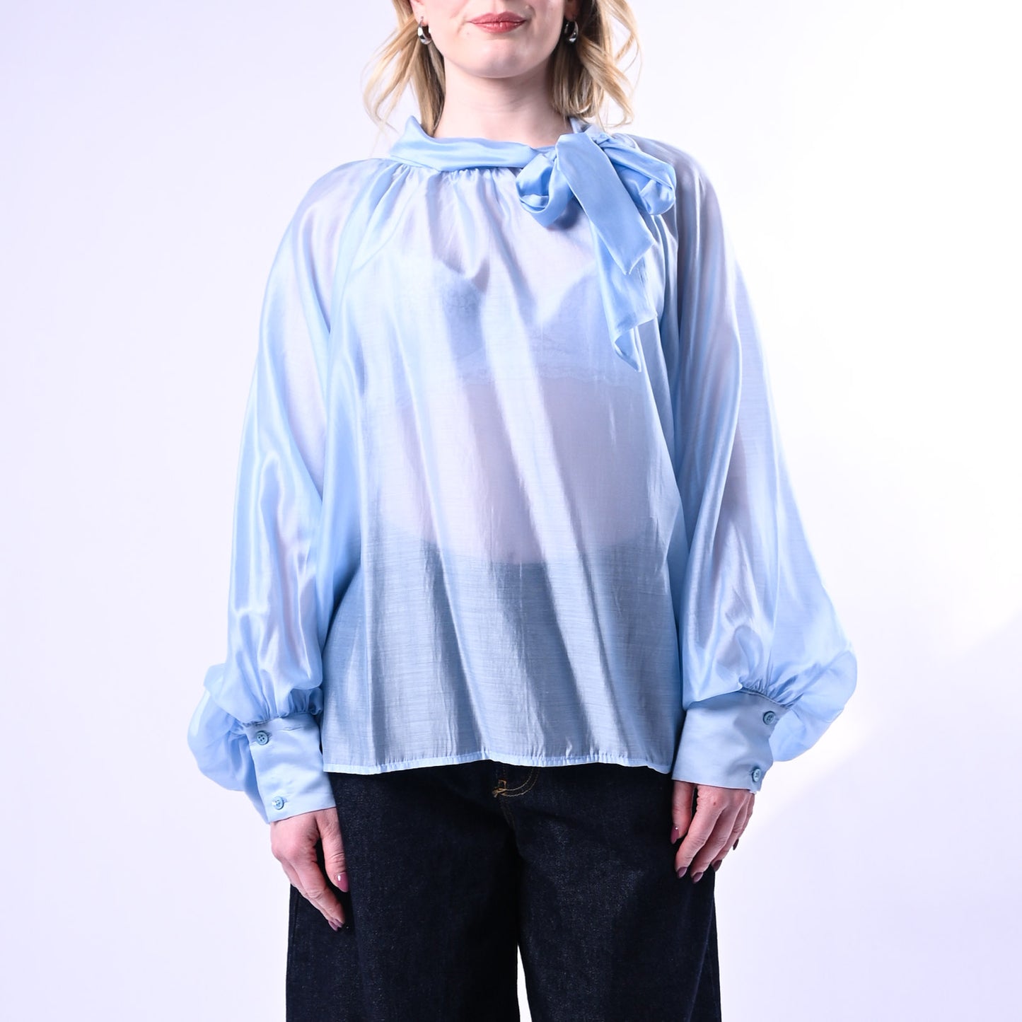 VICOLO - CAMICIA CON FIOCCO E MANICA SBUFFO ART.TAB0210 - CELESTE