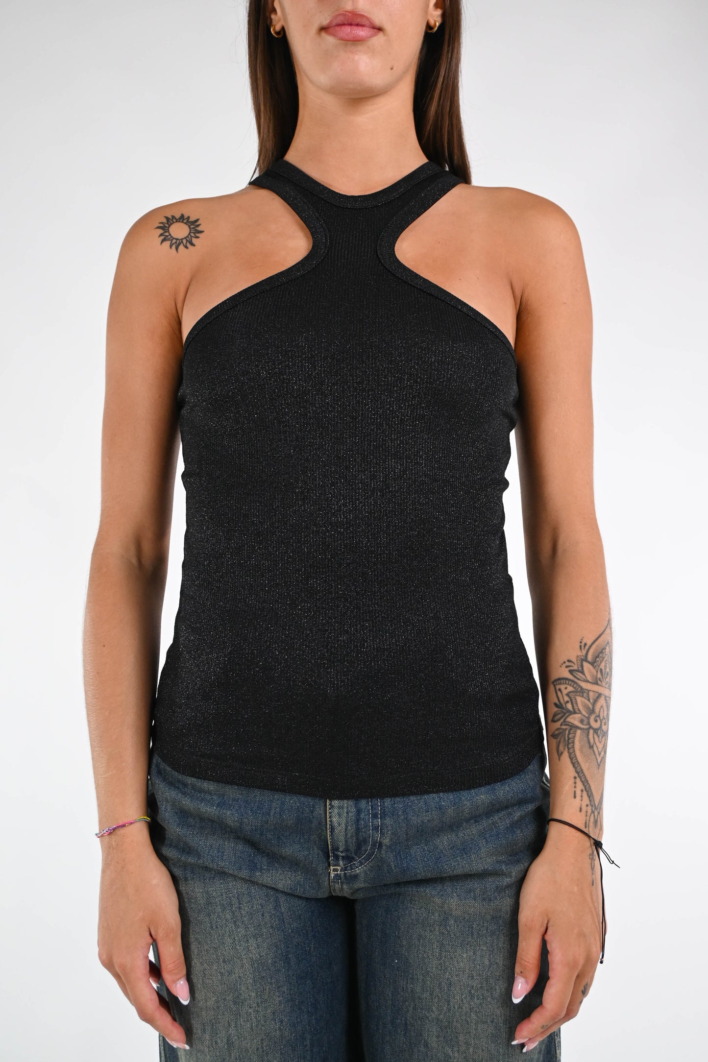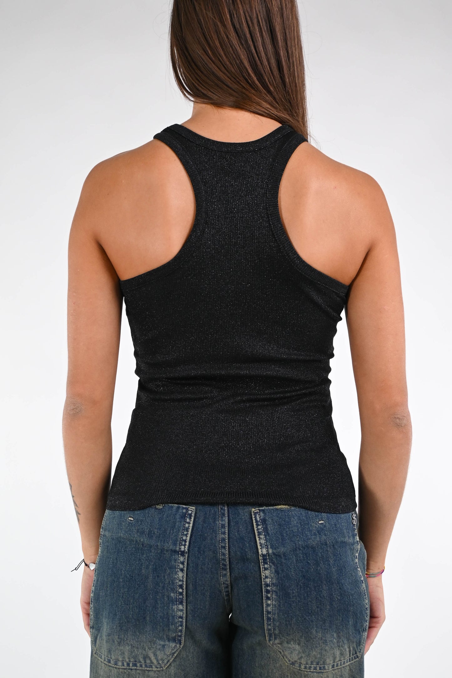 Canotta lurex scollo americana a costine, vestibilità slim, colore nero