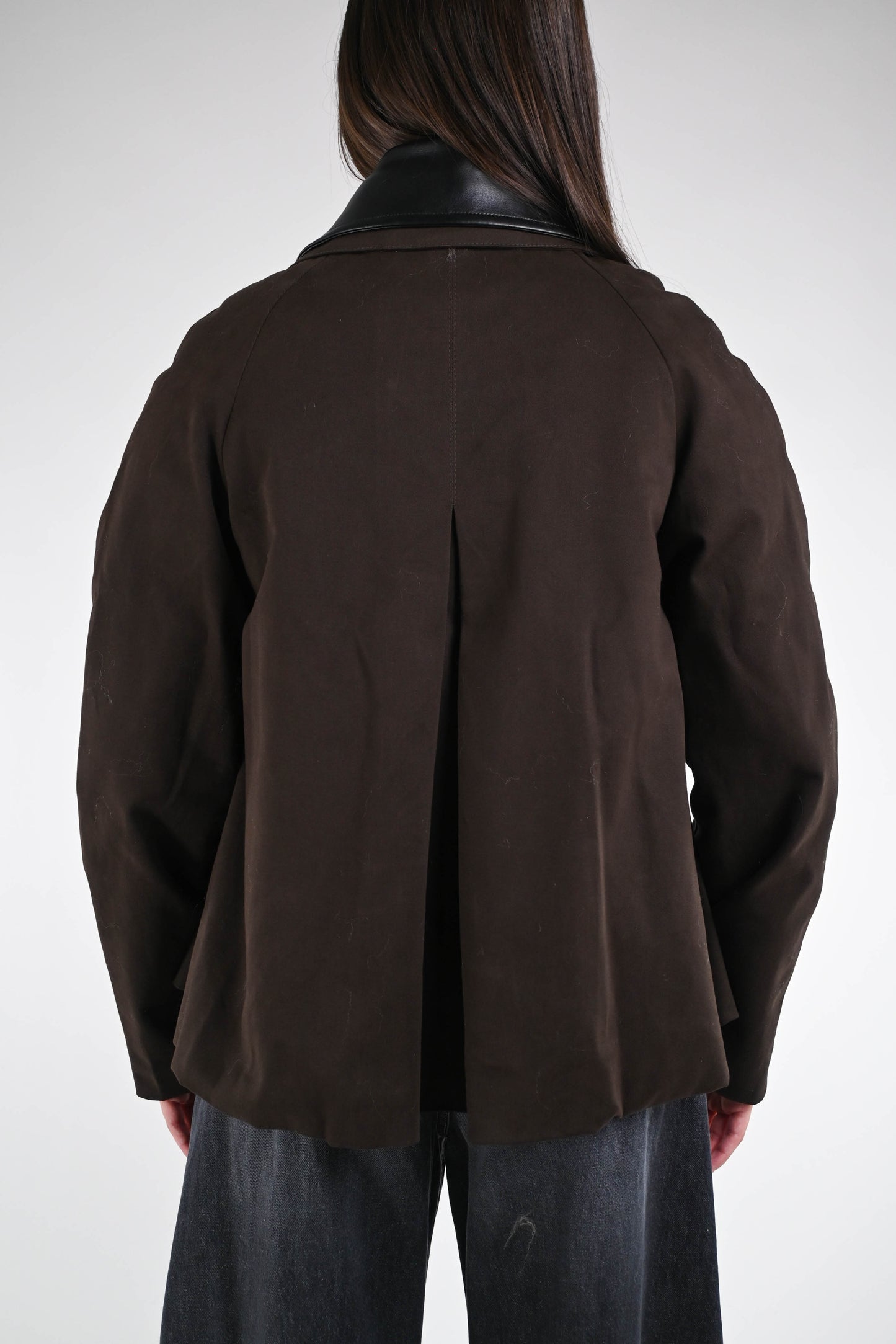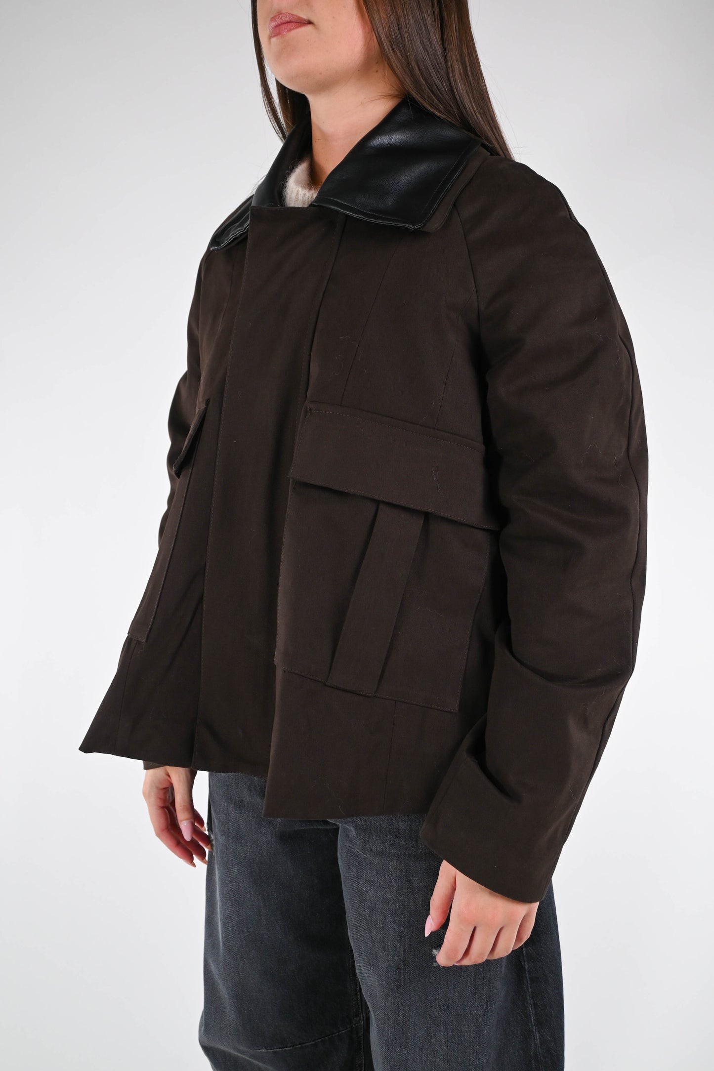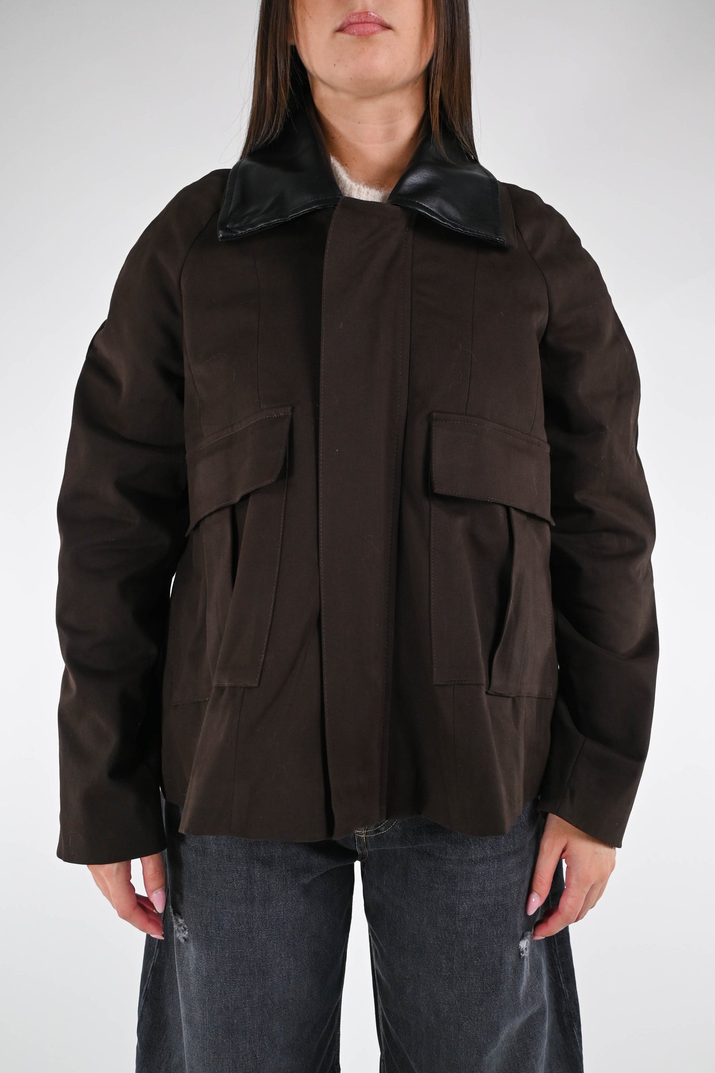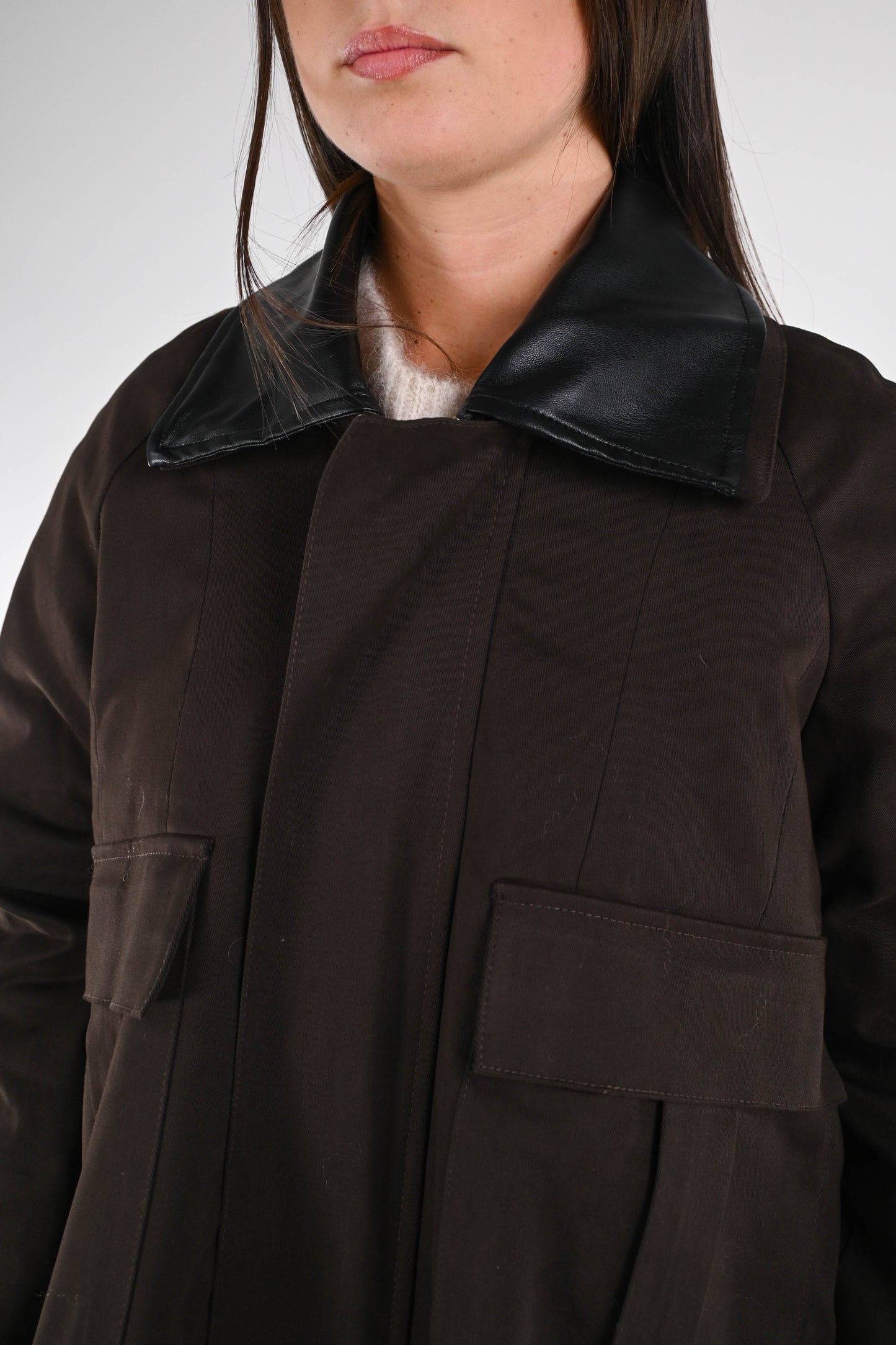 Giubbotto in fustagno a mantella, con colletto ecopelle staccabile, con tasche a toppa applicate, foderato, color moro
