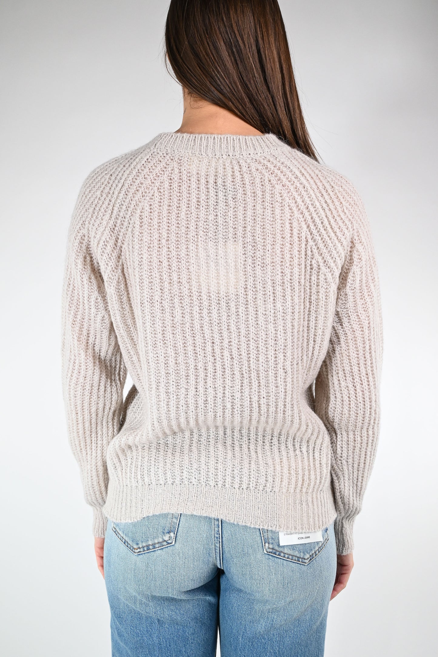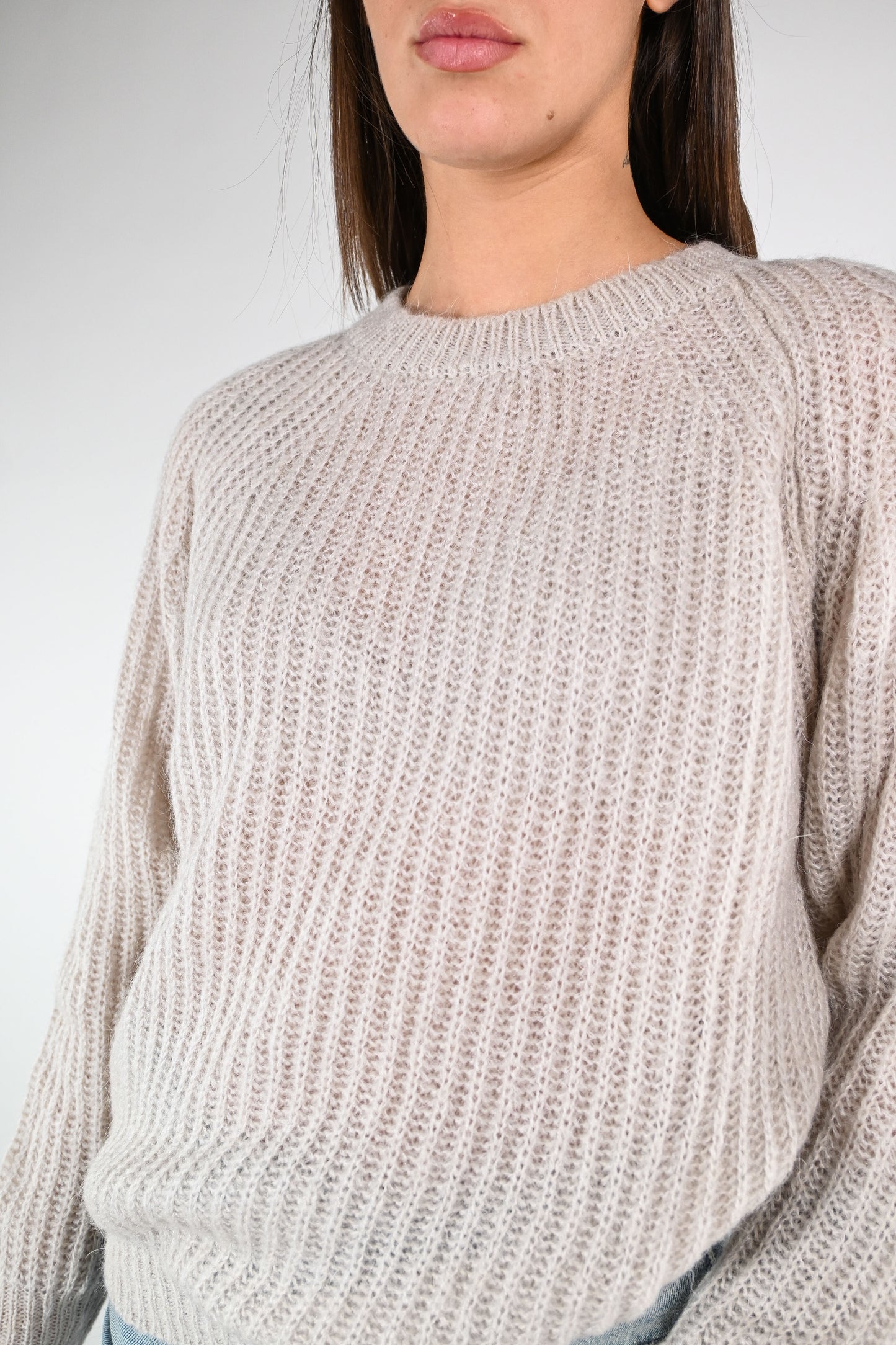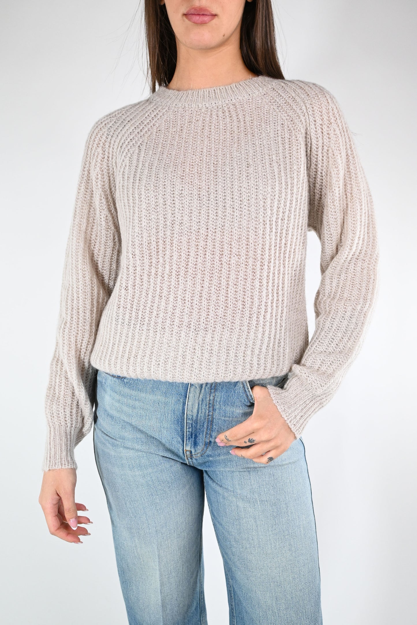 VICOLO - MAGLIA MOHAIR GIROCOLLO A COSTE ART.55086F - BEIGE